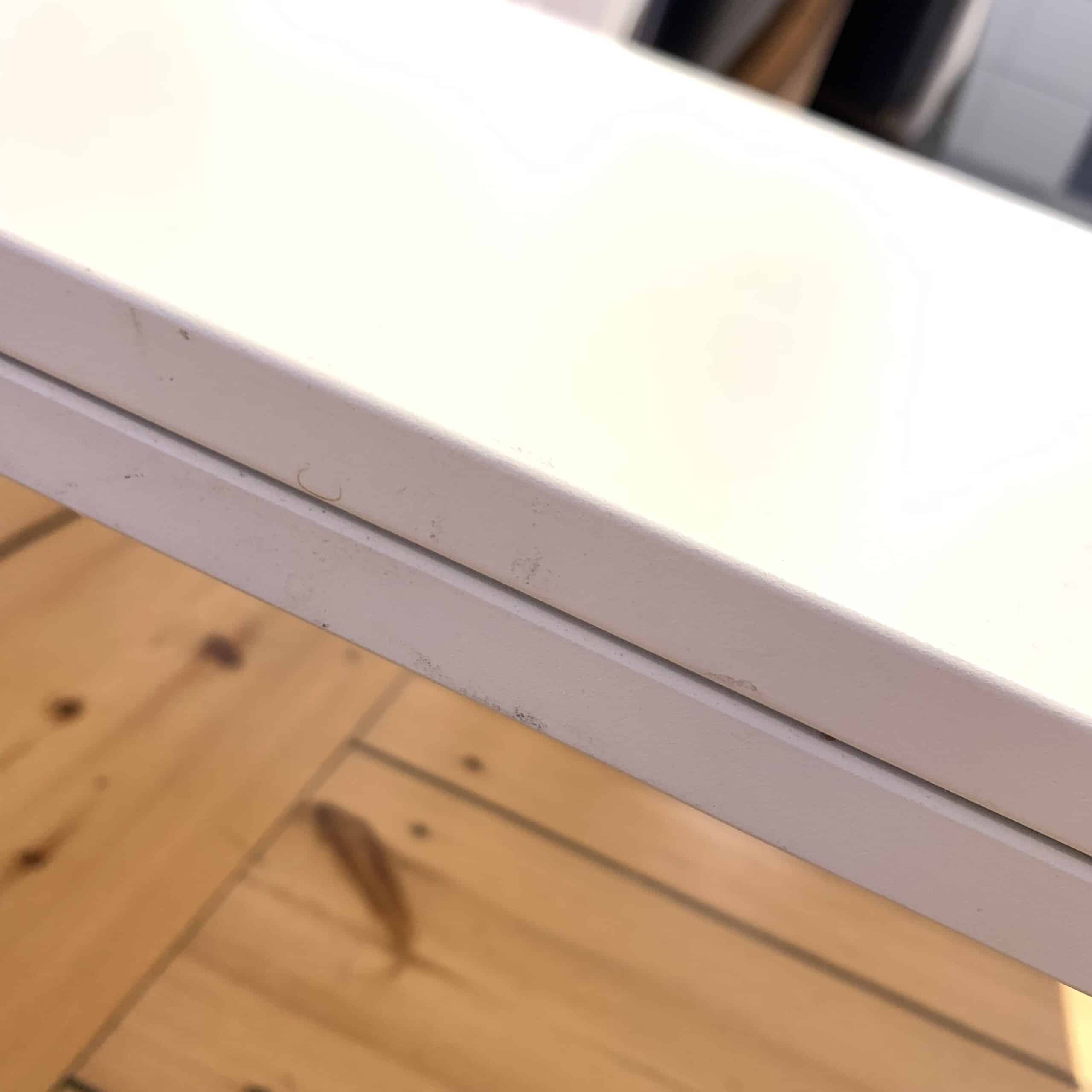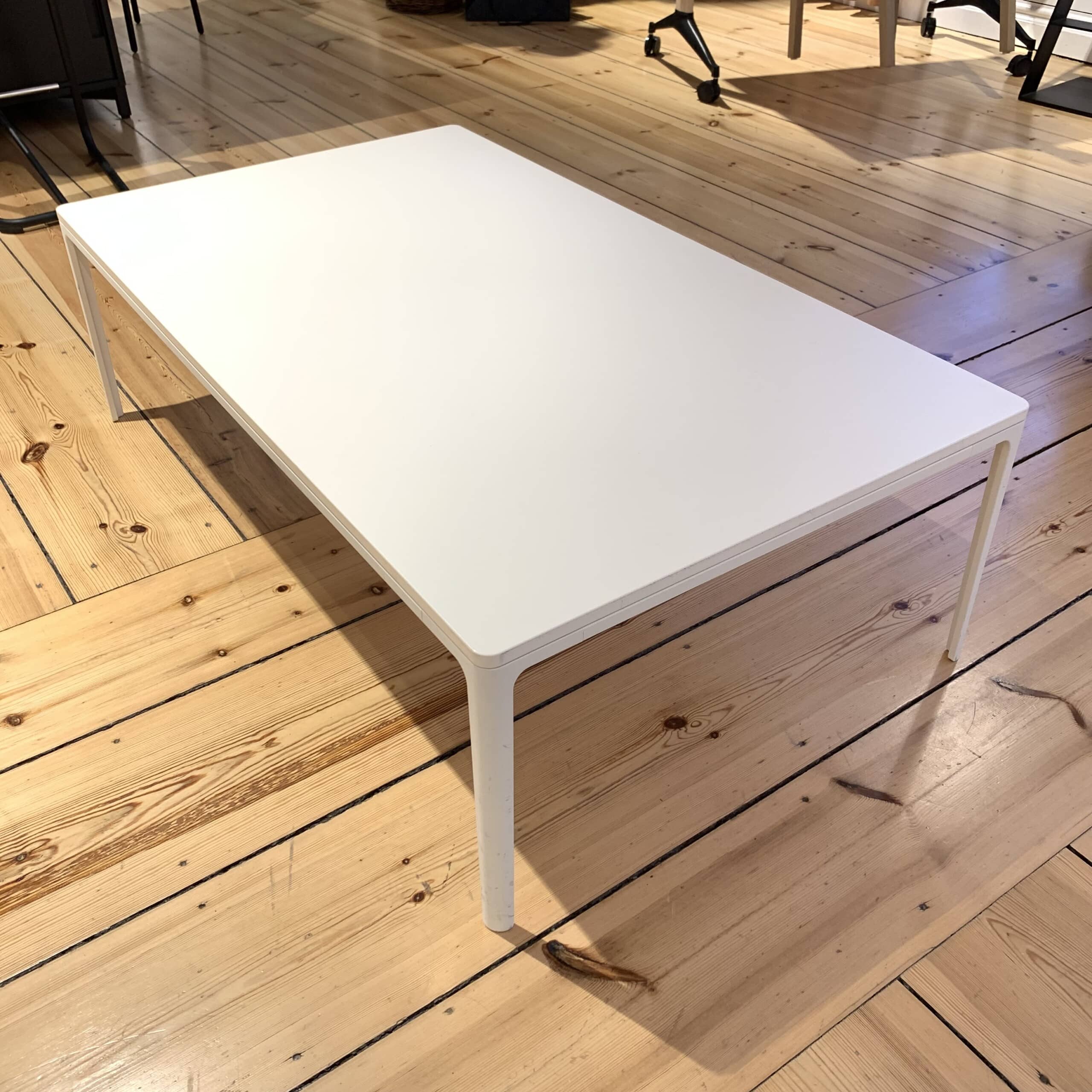 Bordplate i tre (hvit). Understell i metall (hvit).