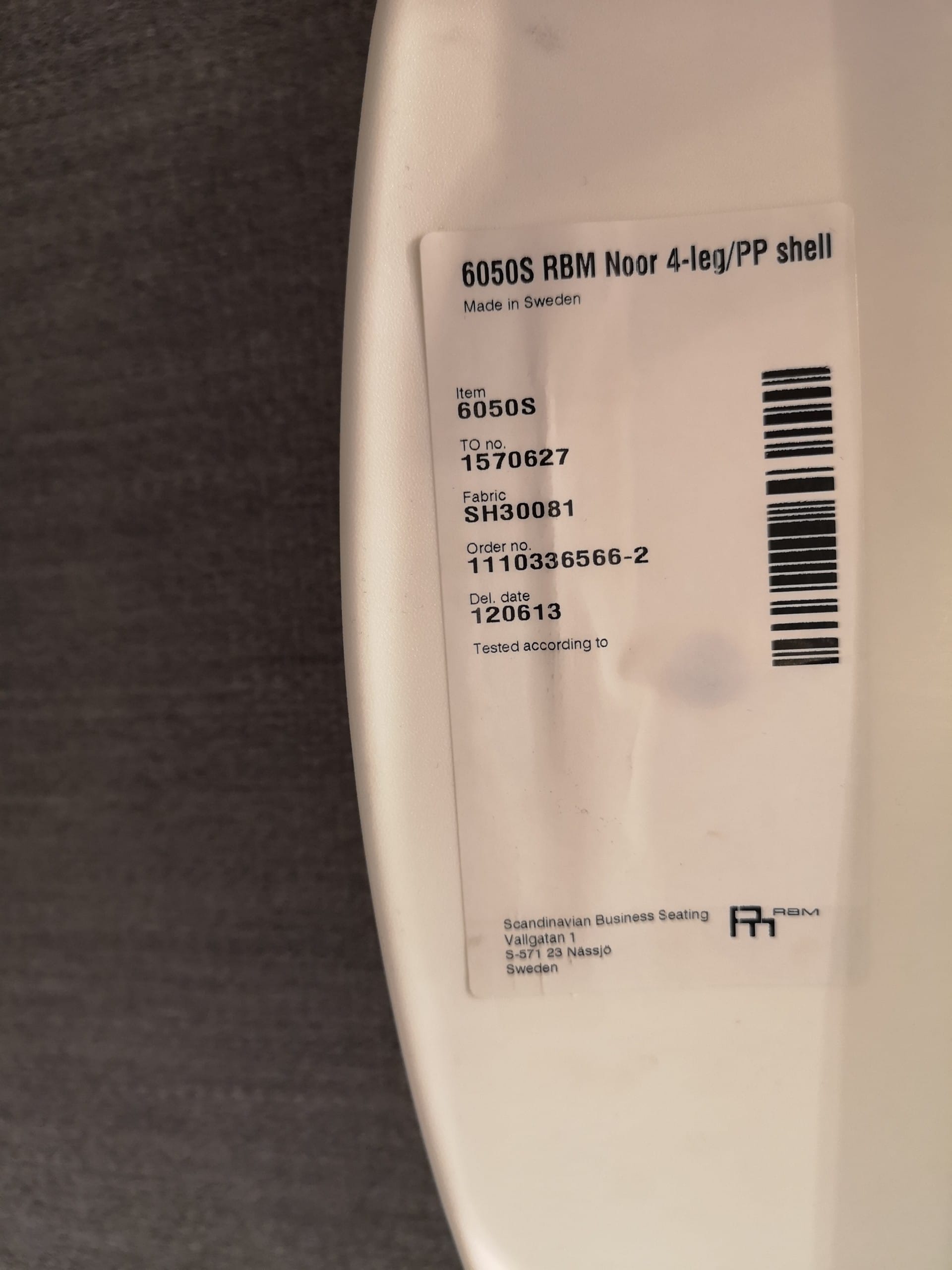 | Materiale sete | Farge | Materiale rygg | Plast | Understell | Materiale understell | Metall |