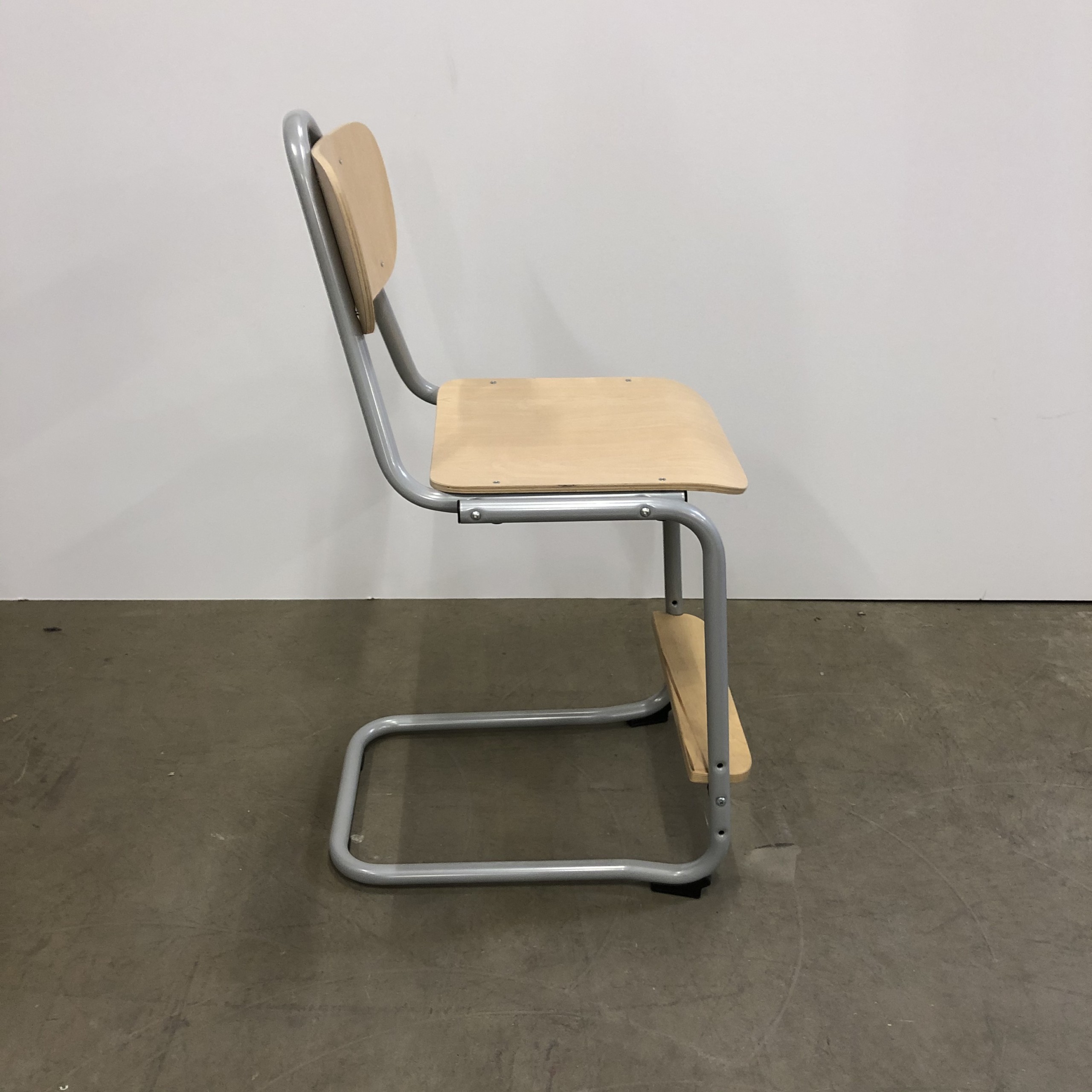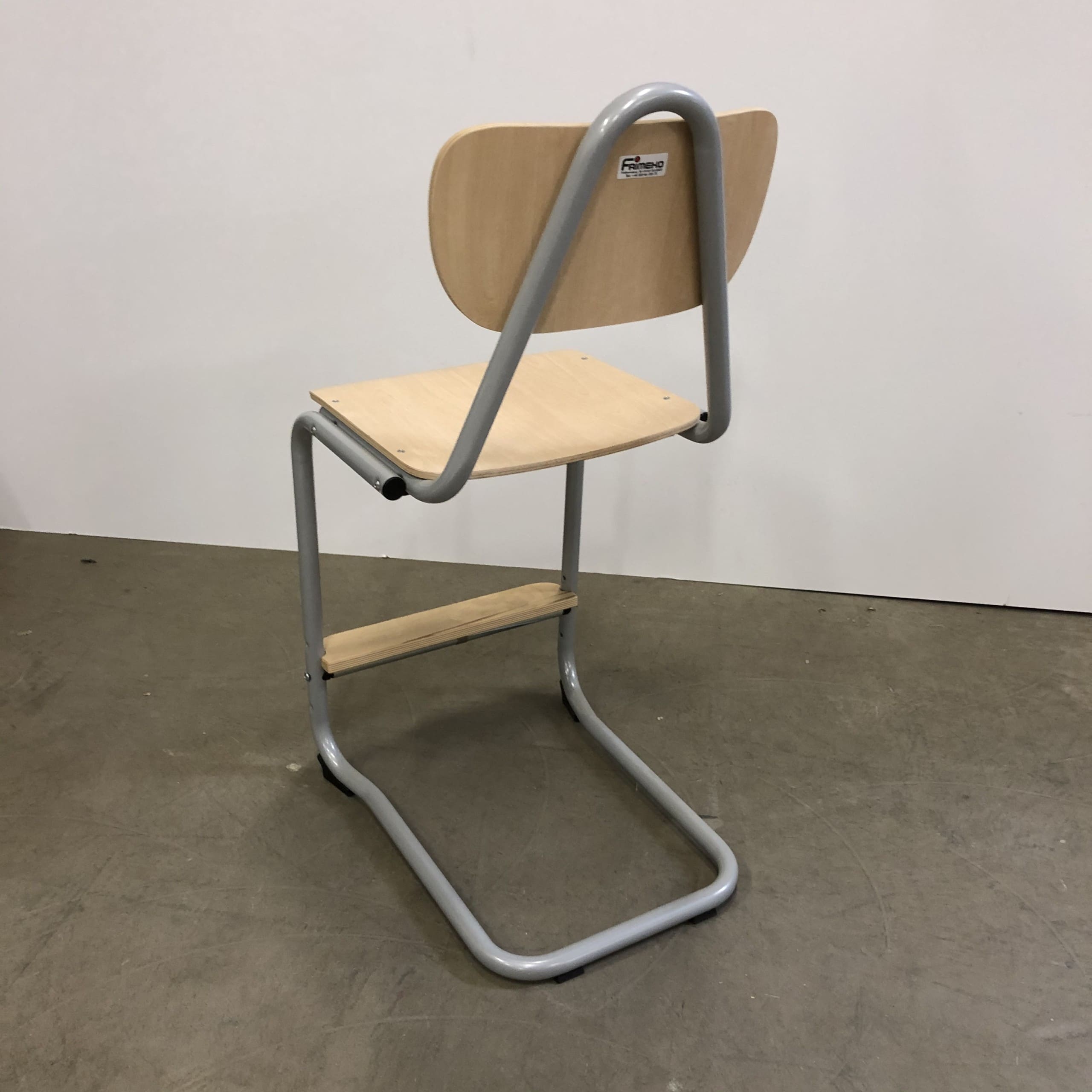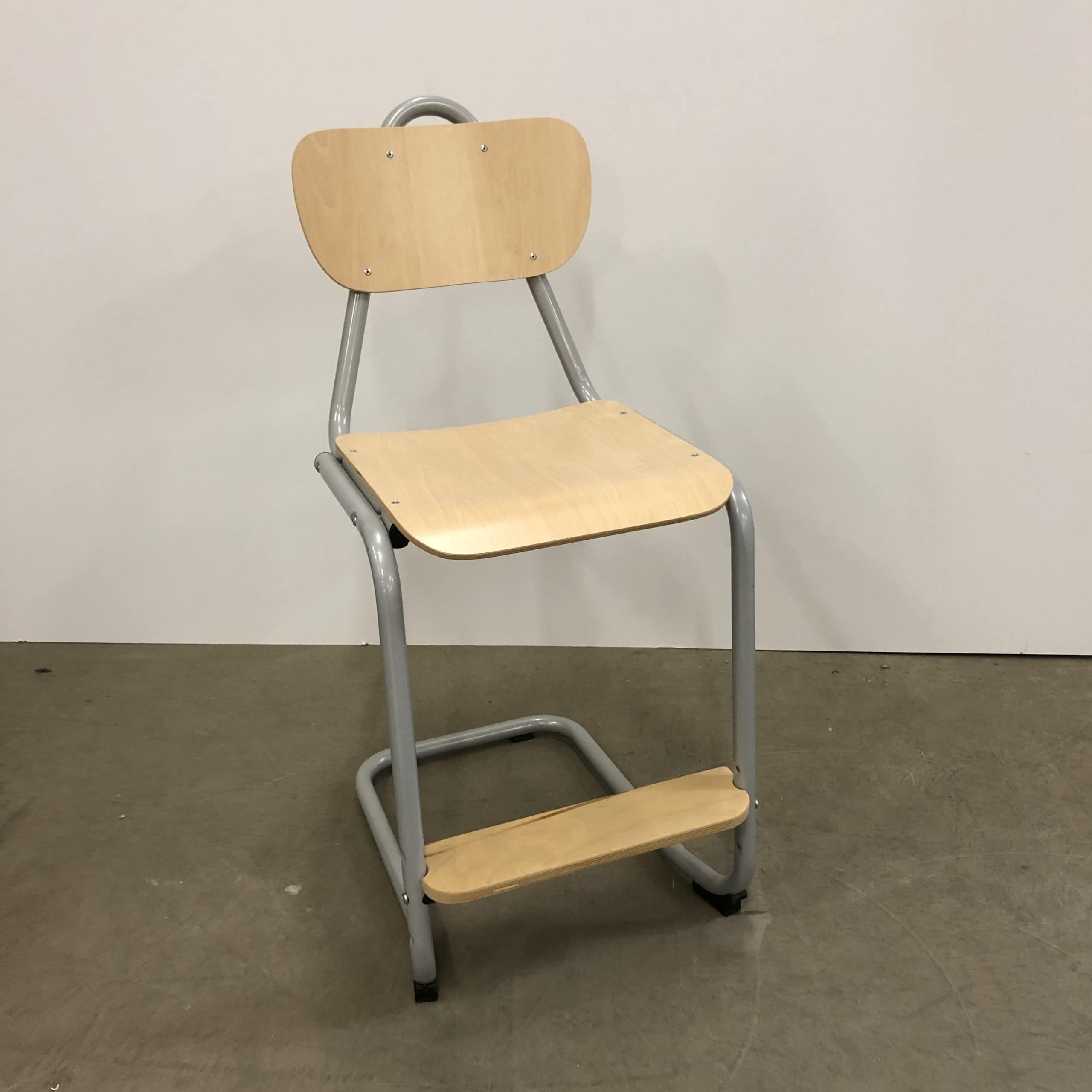 Sete og rygg i tre (bjørk). Meiestativ i metall (sølv).