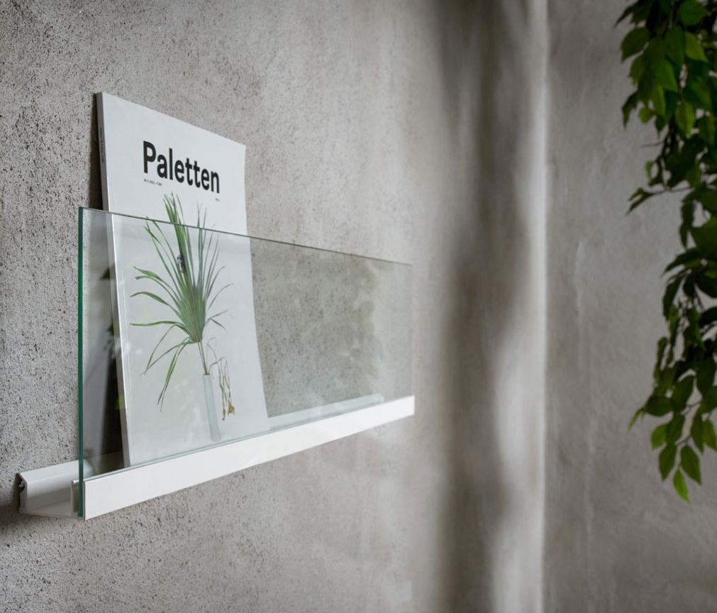 Stamme i metall (hvit). Front i glas (transparent).