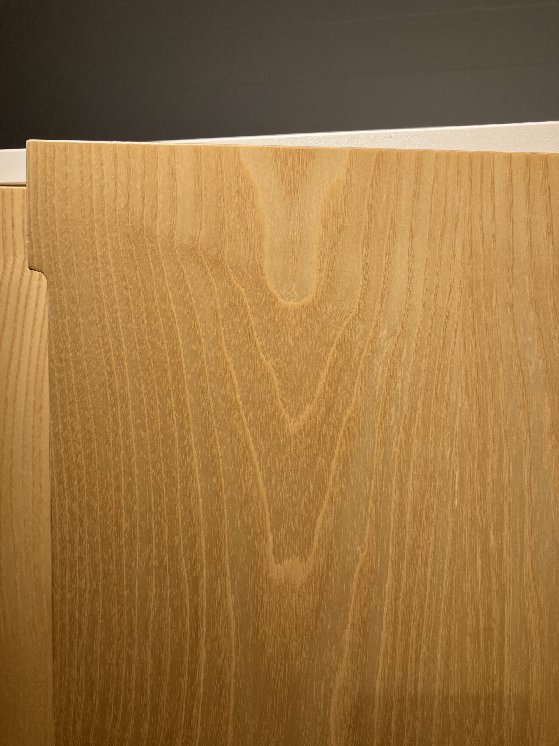Stamme i laminat (hvit). Front i trä (bjørk).