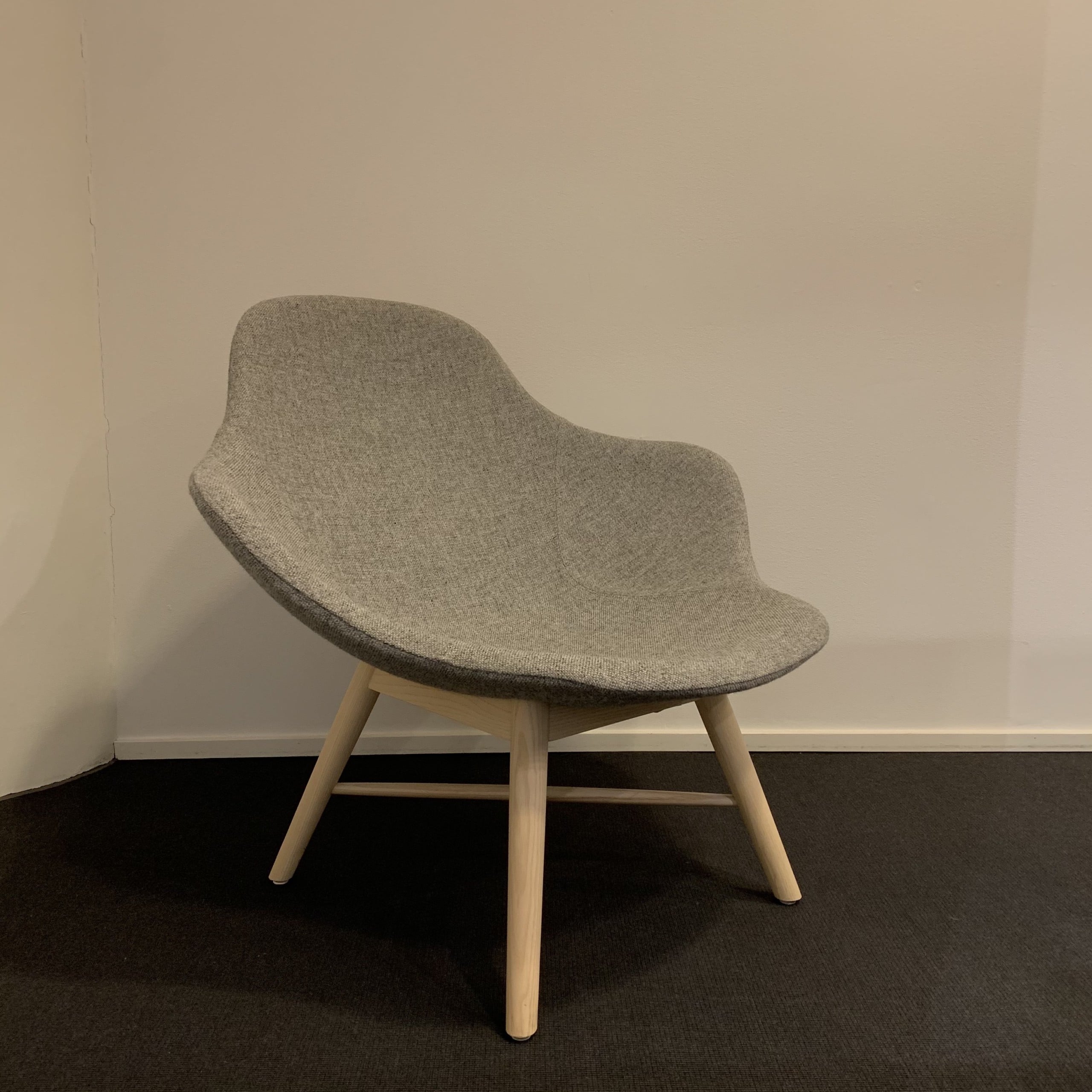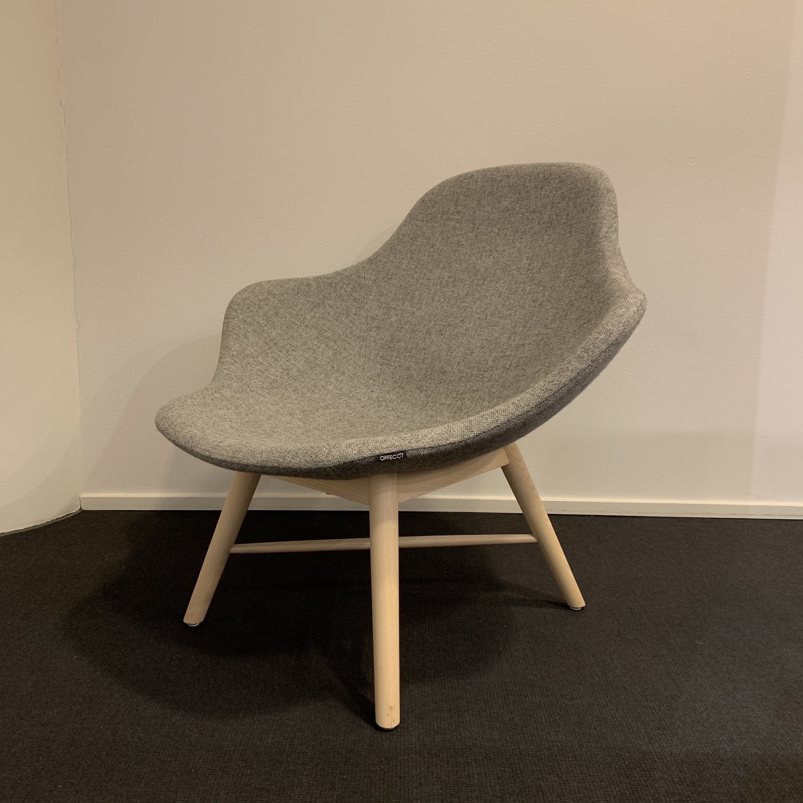 Sete og rygg i stoff (grå). Ben i tre (ask).
