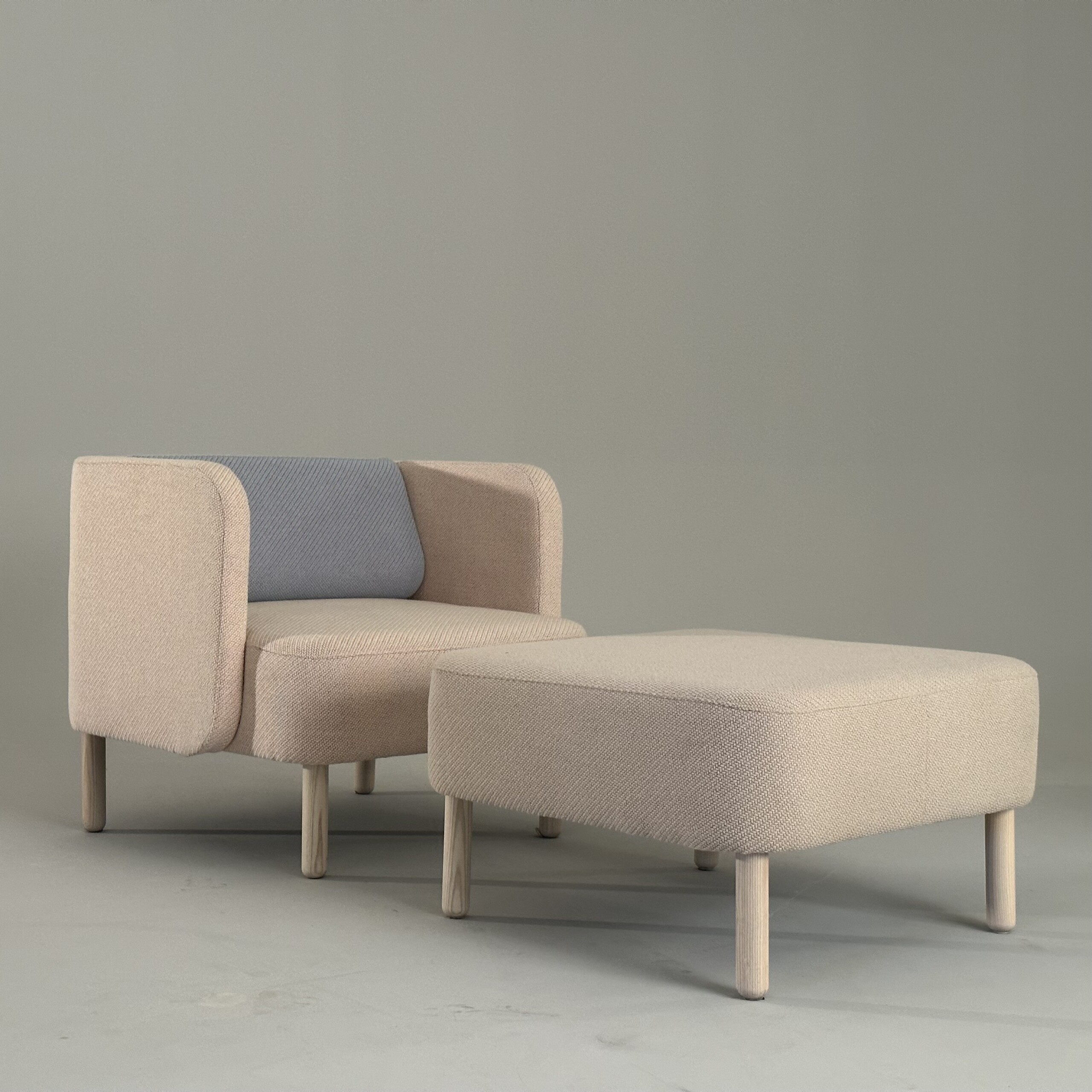 | Tyg | annat | Kvadrat, Coda, Pink. Back: Kvadrat, Coda, Blue. | 1 | Tyg | grå | Ben | Trä | ask |