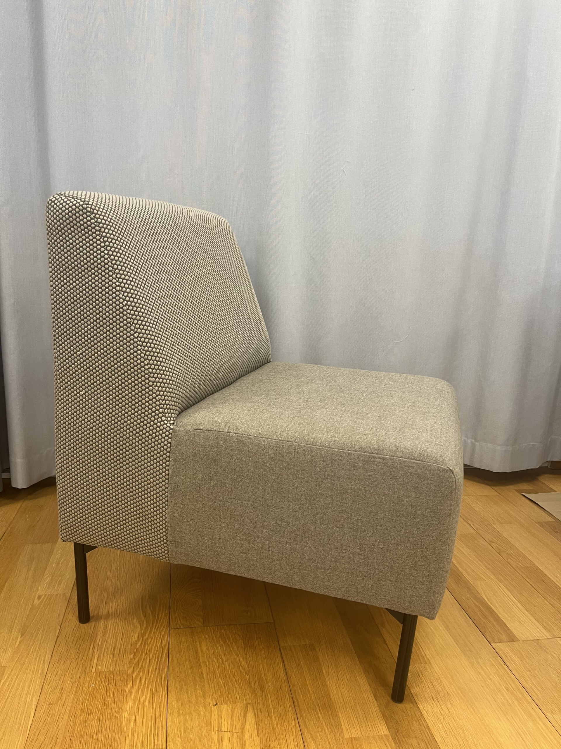 | Materiale sete | Farge | Møbeltrekk | Materiale rygg | Farge | Understell | Materiale understell | Metall |