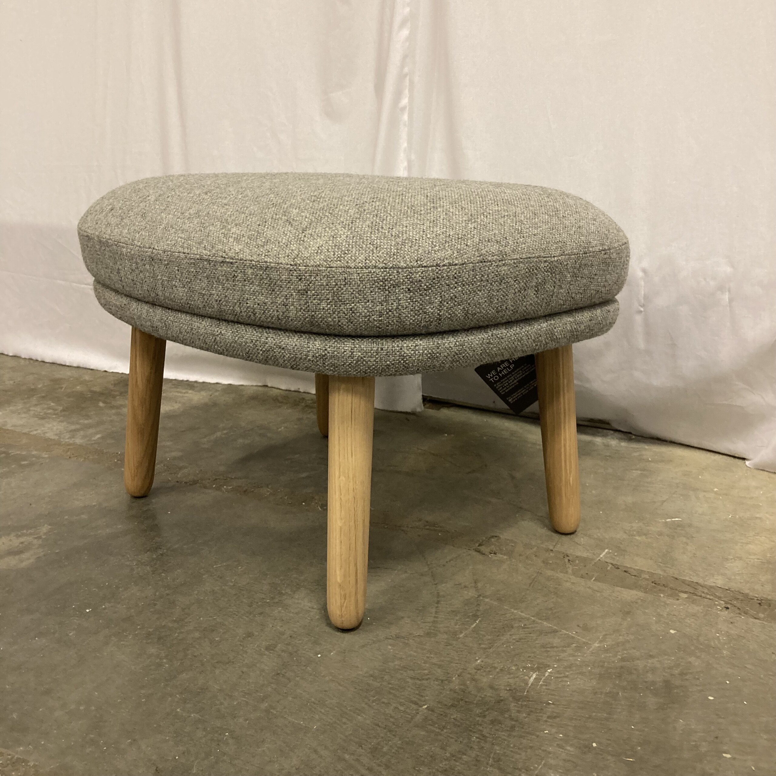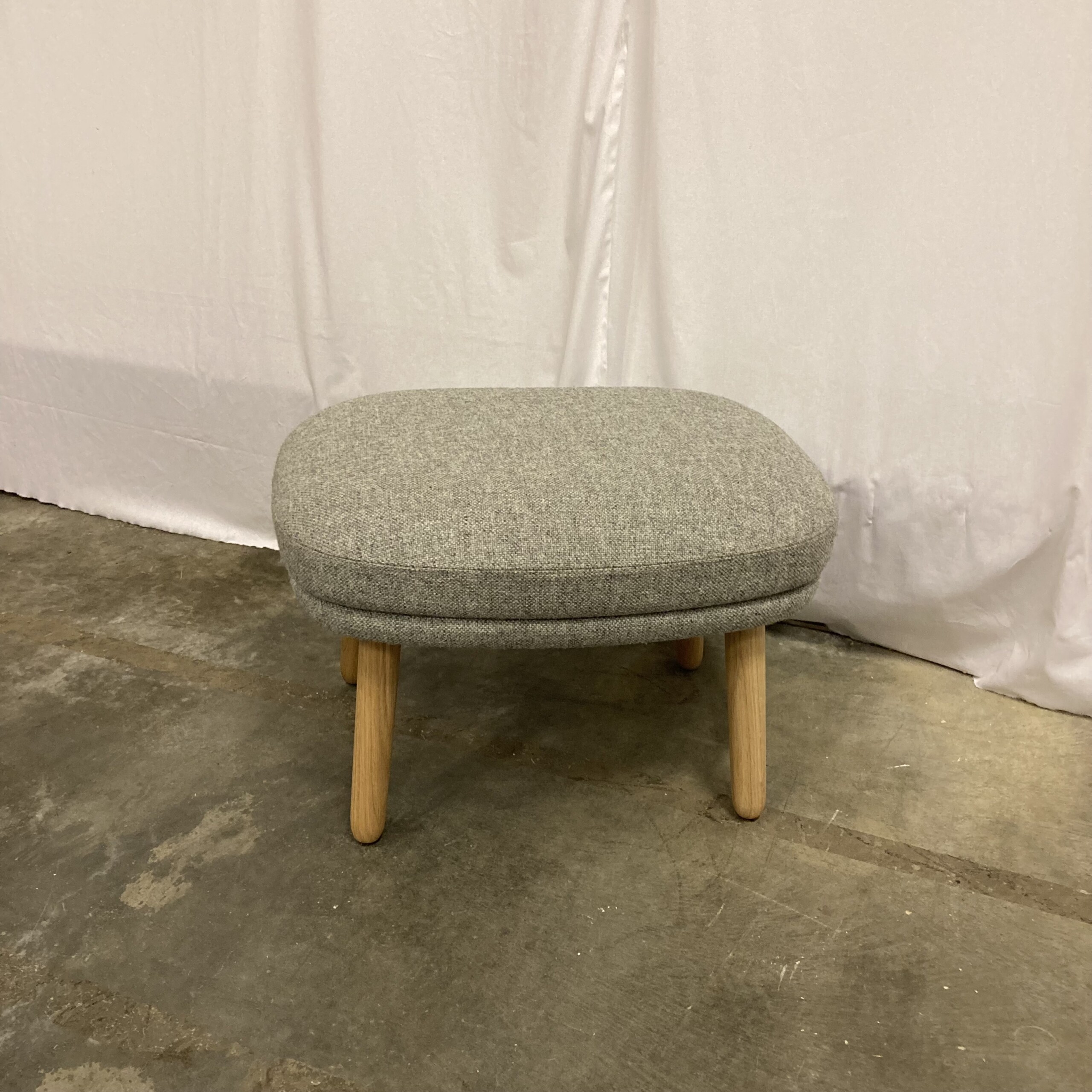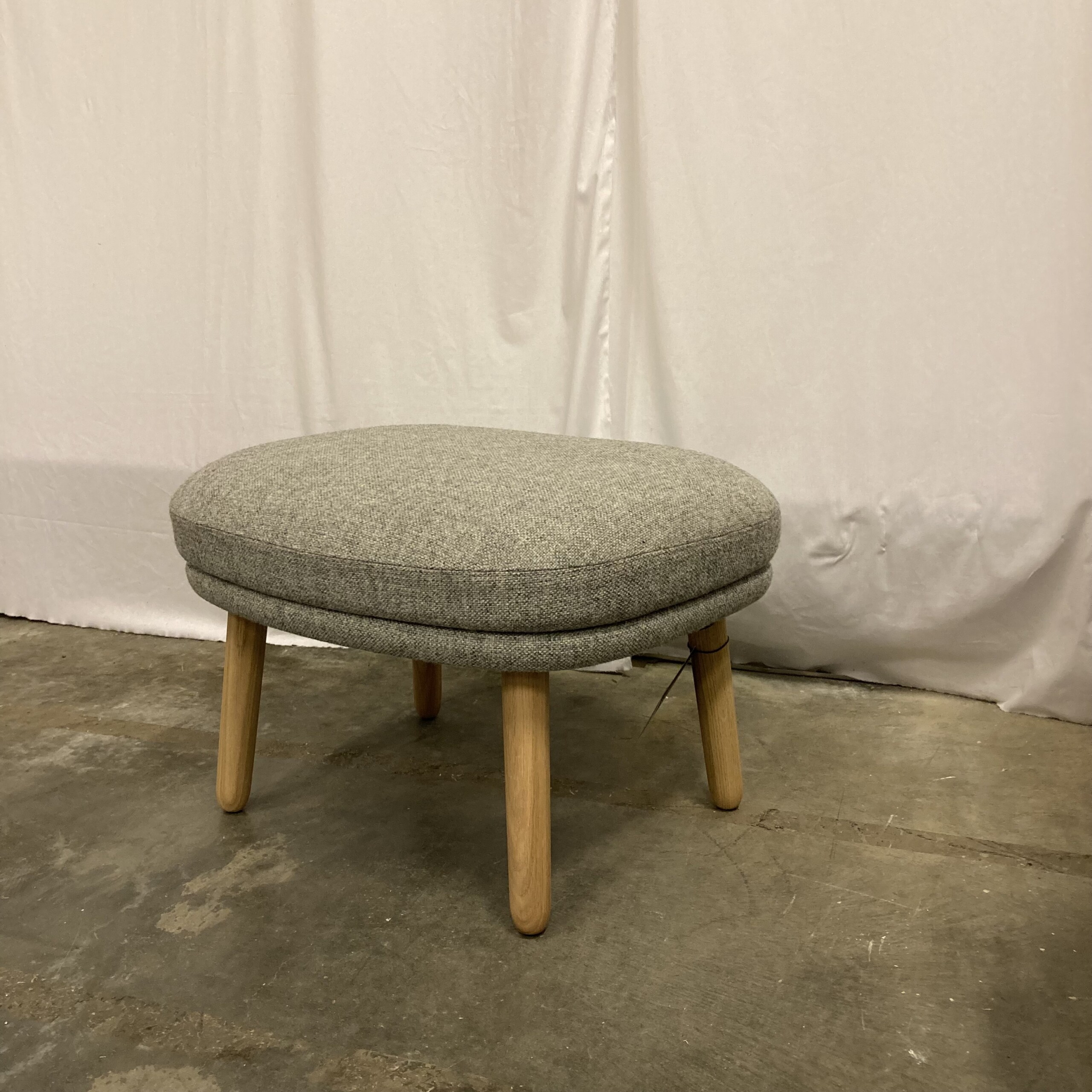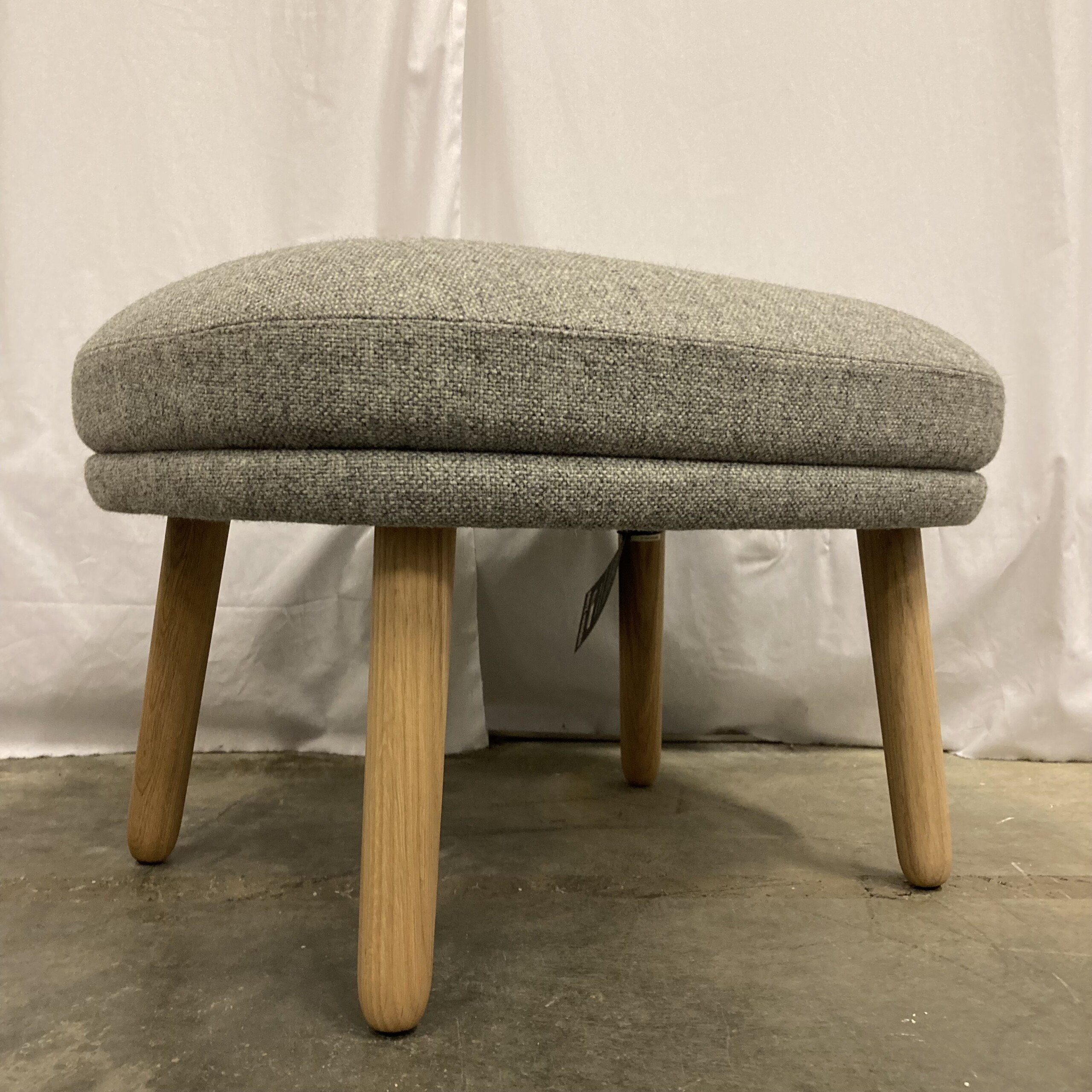 Sete i stoff (grå). Ben i tre (eik).