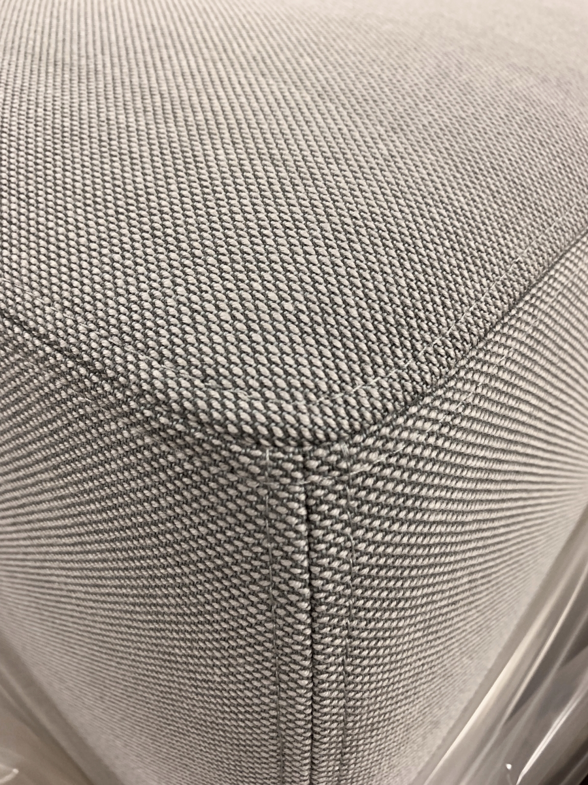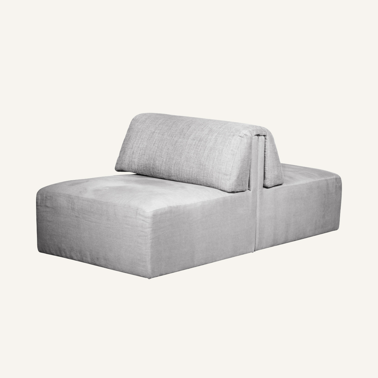 Sete og rygg i stoff (grå). Ben i plast.