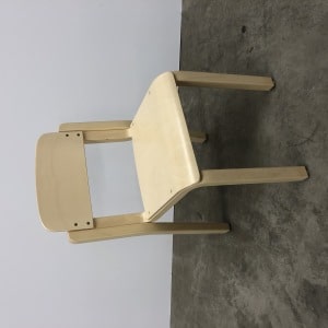 Sete og rygg i tre (bok). Meiestativ i metall (grå).