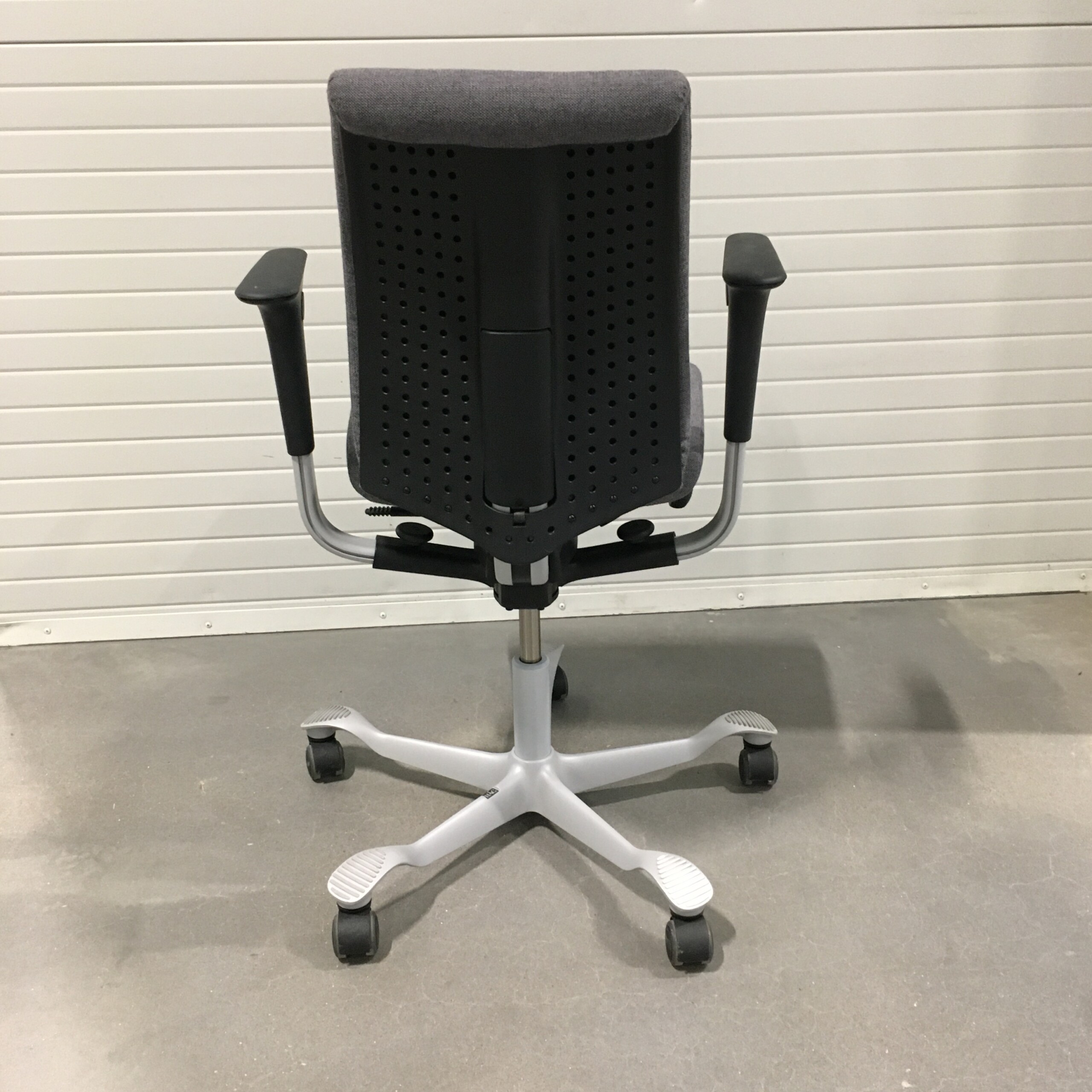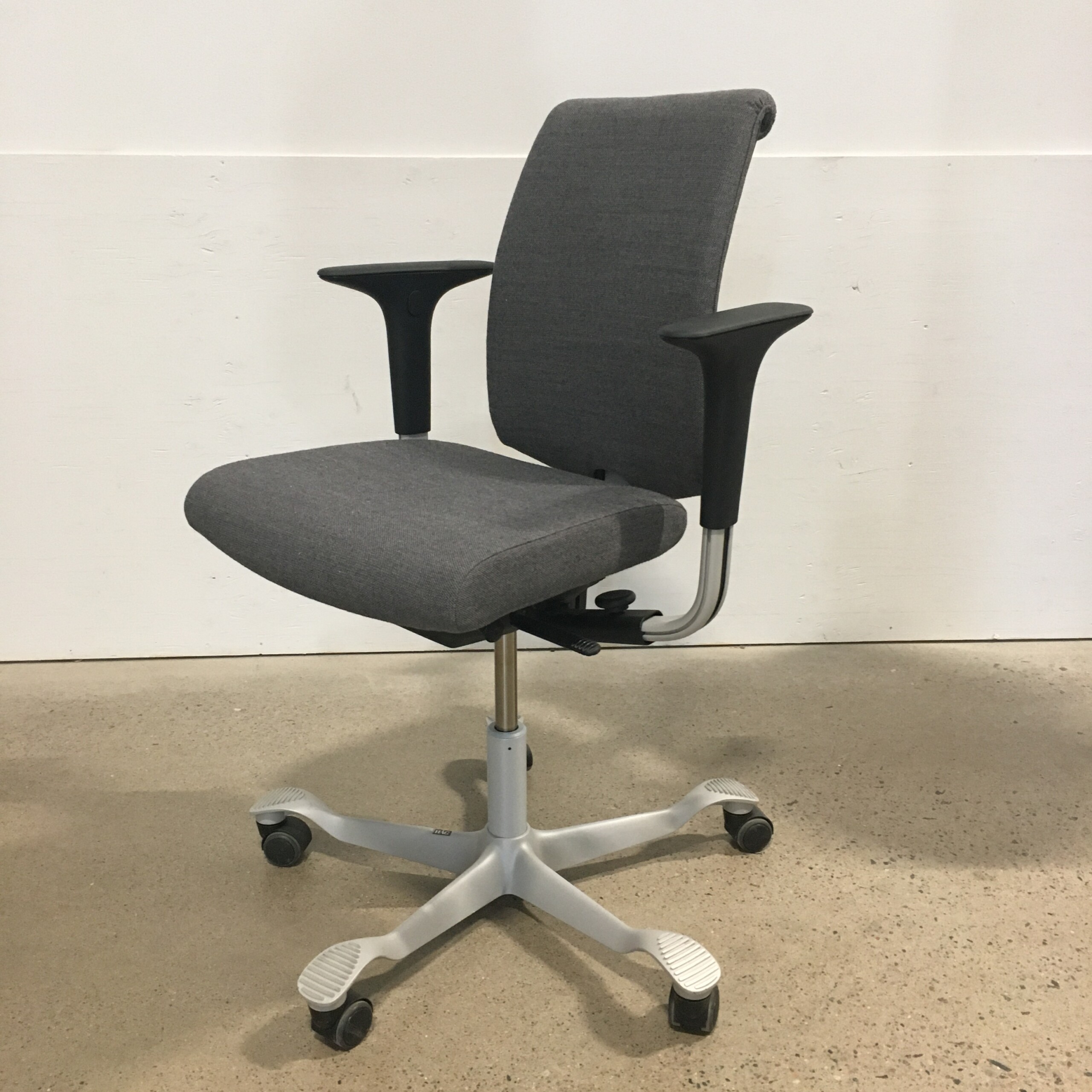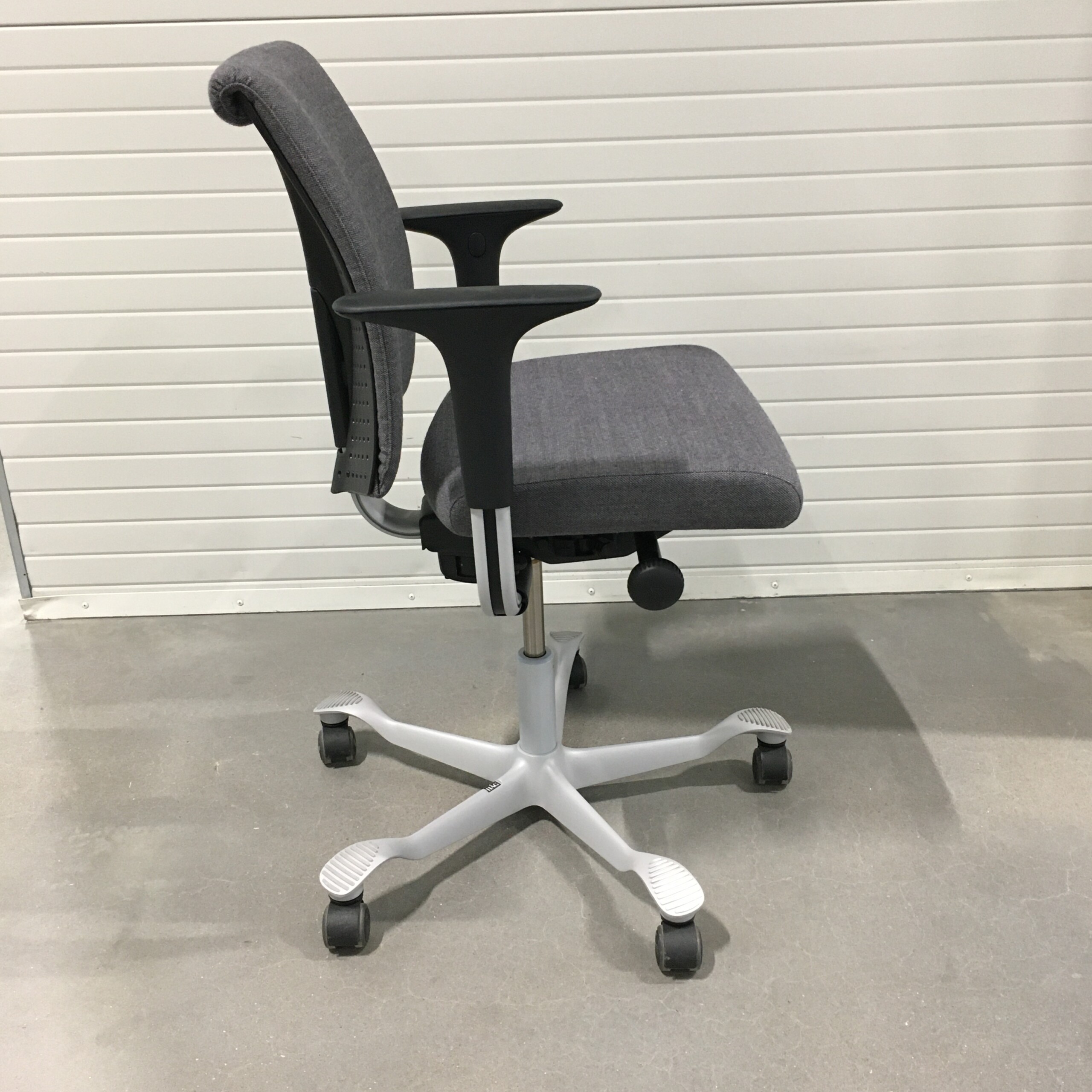 Sete og rygg i stoff (grå). Kryssfot i metall (grå). Høydejusterbar