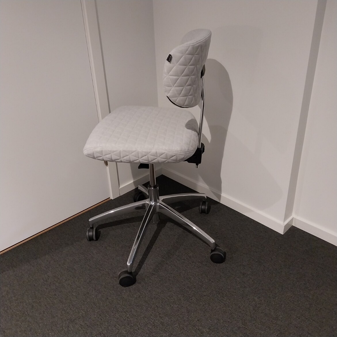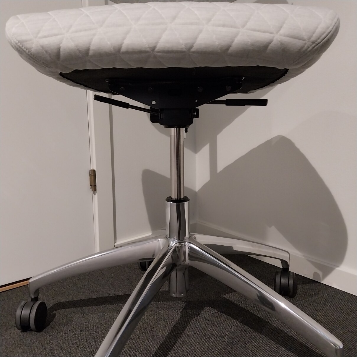 Sete og rygg i stoff (beige). Kryssfot i metall (aluminium). Høydejusterbar