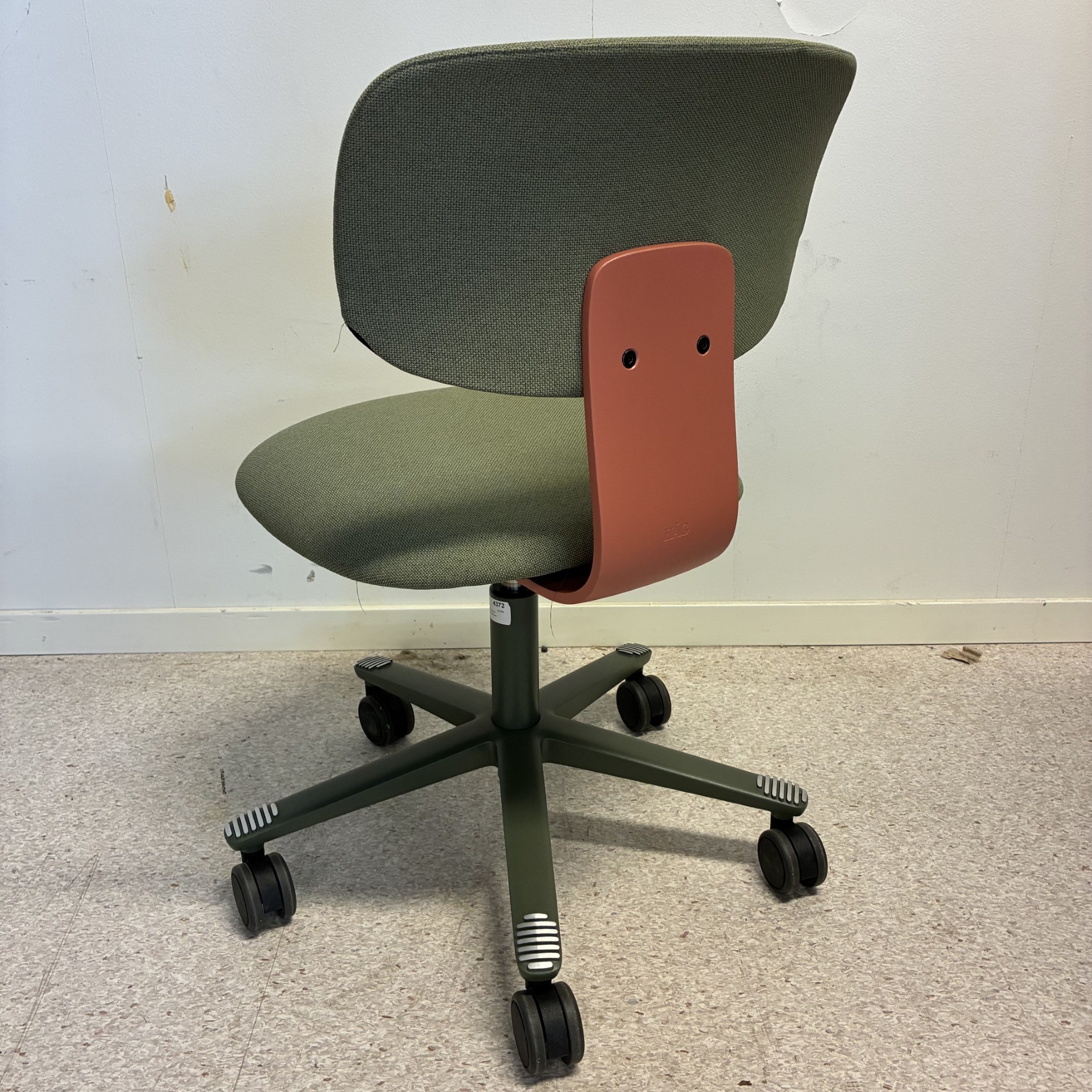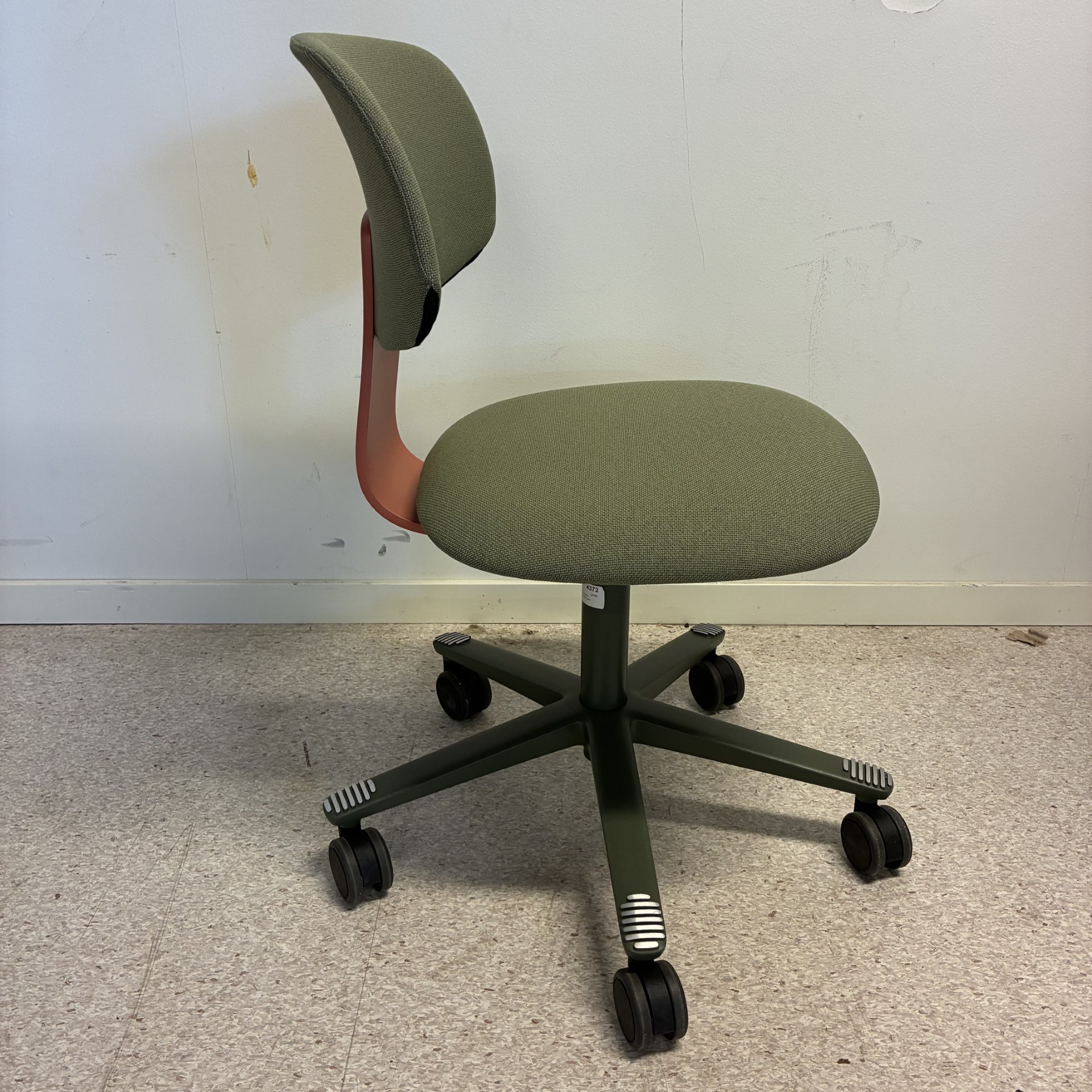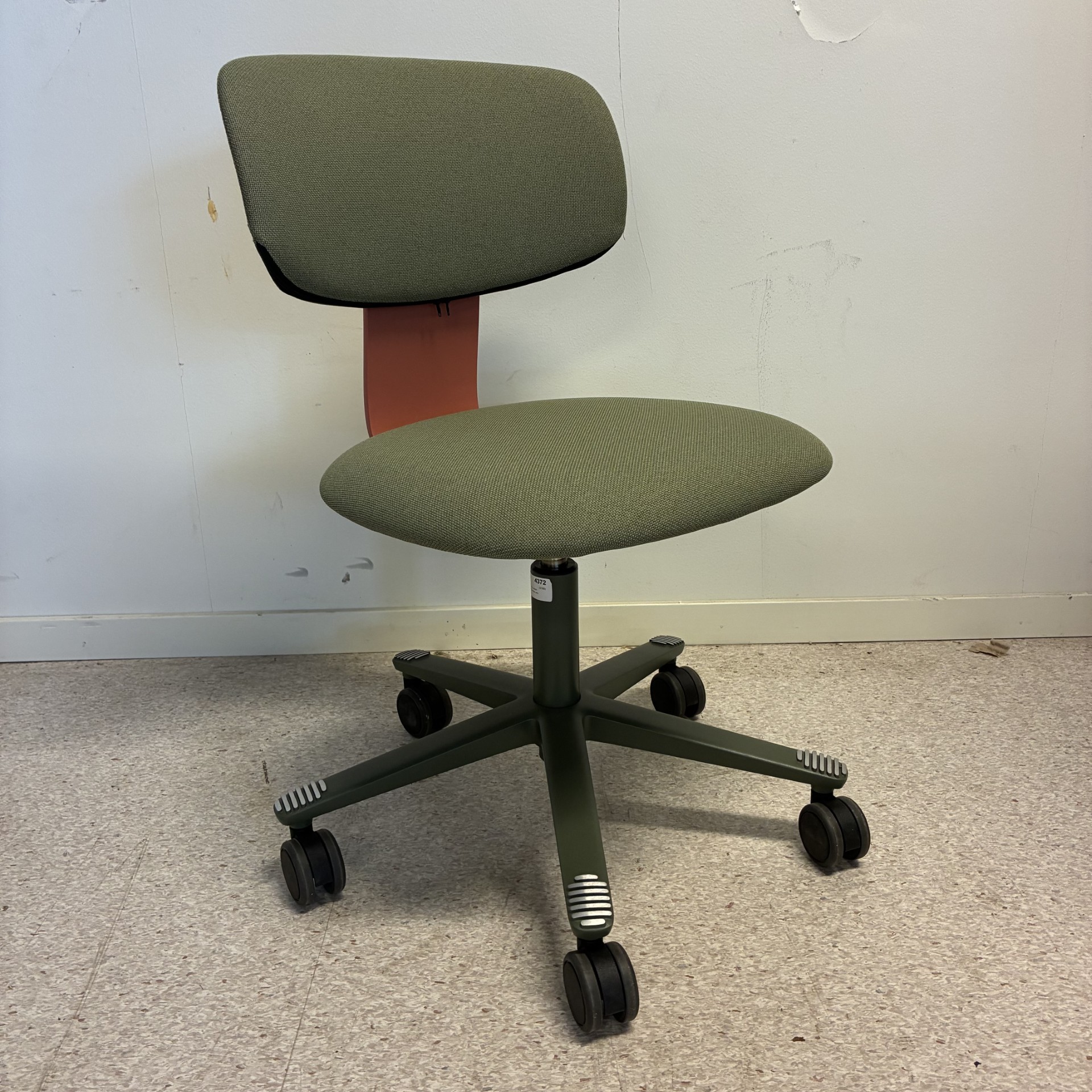 Sete og rygg i stoff (grønn). Kryssfot i metall (grønn). Høydejusterbar