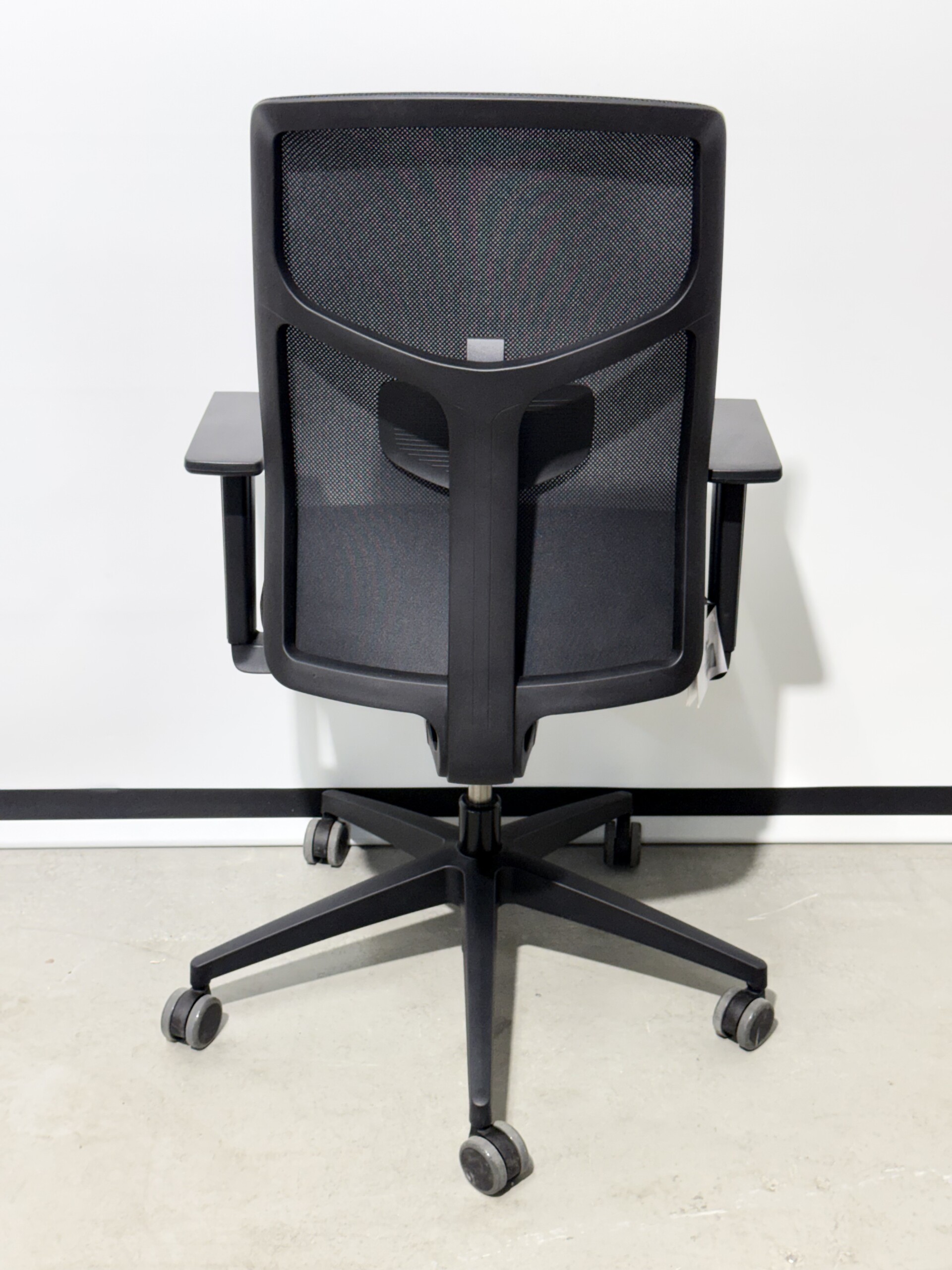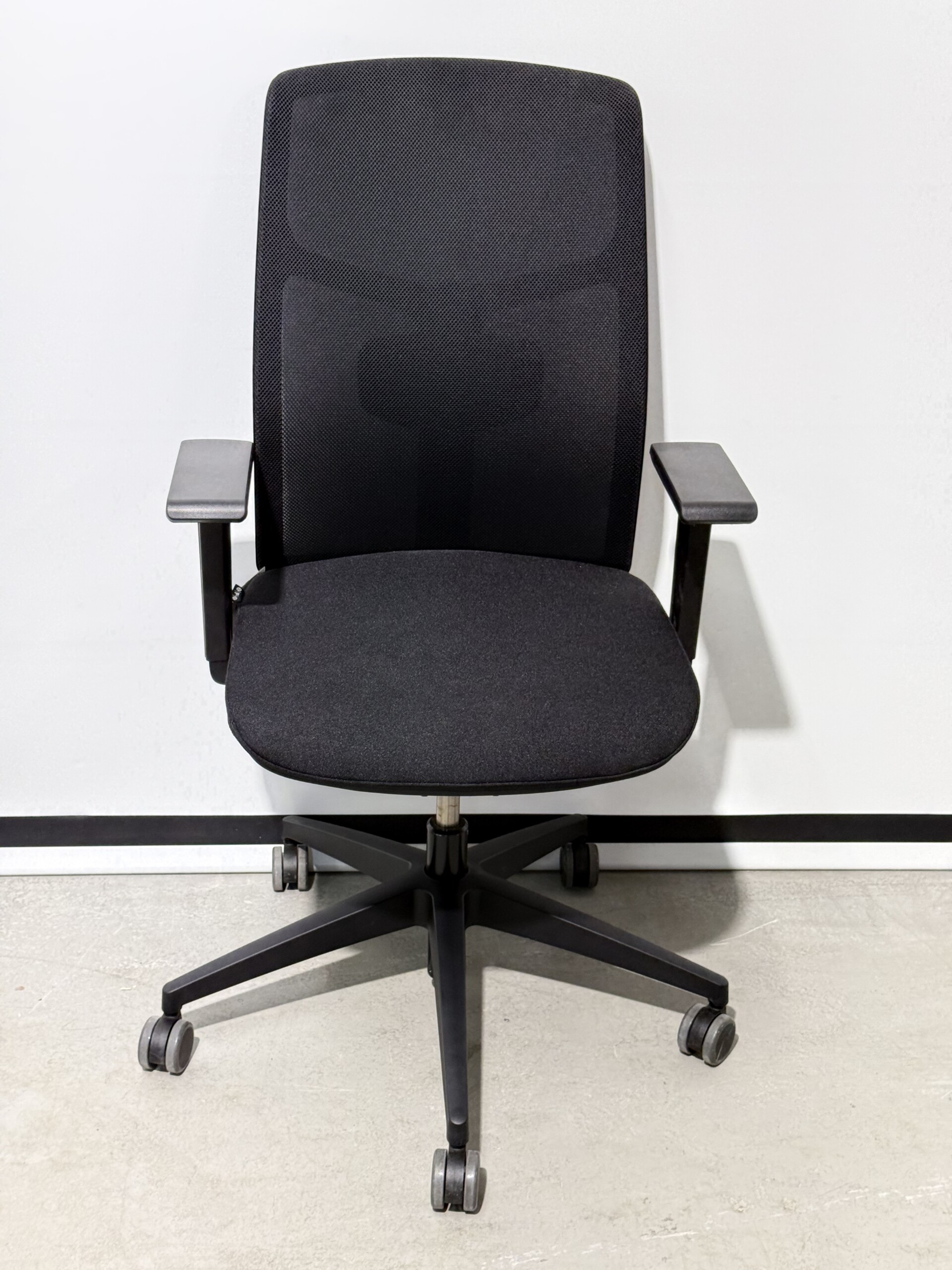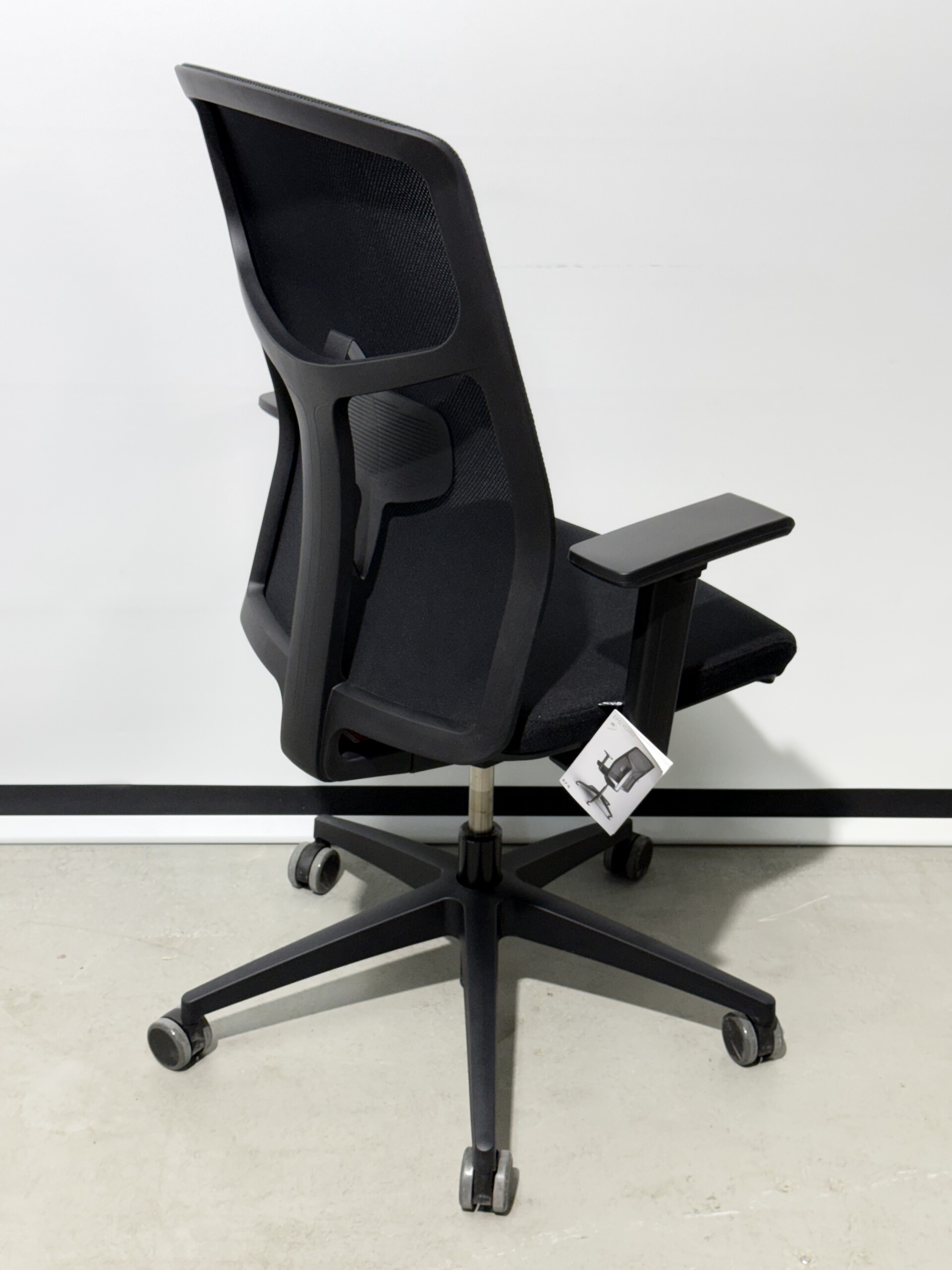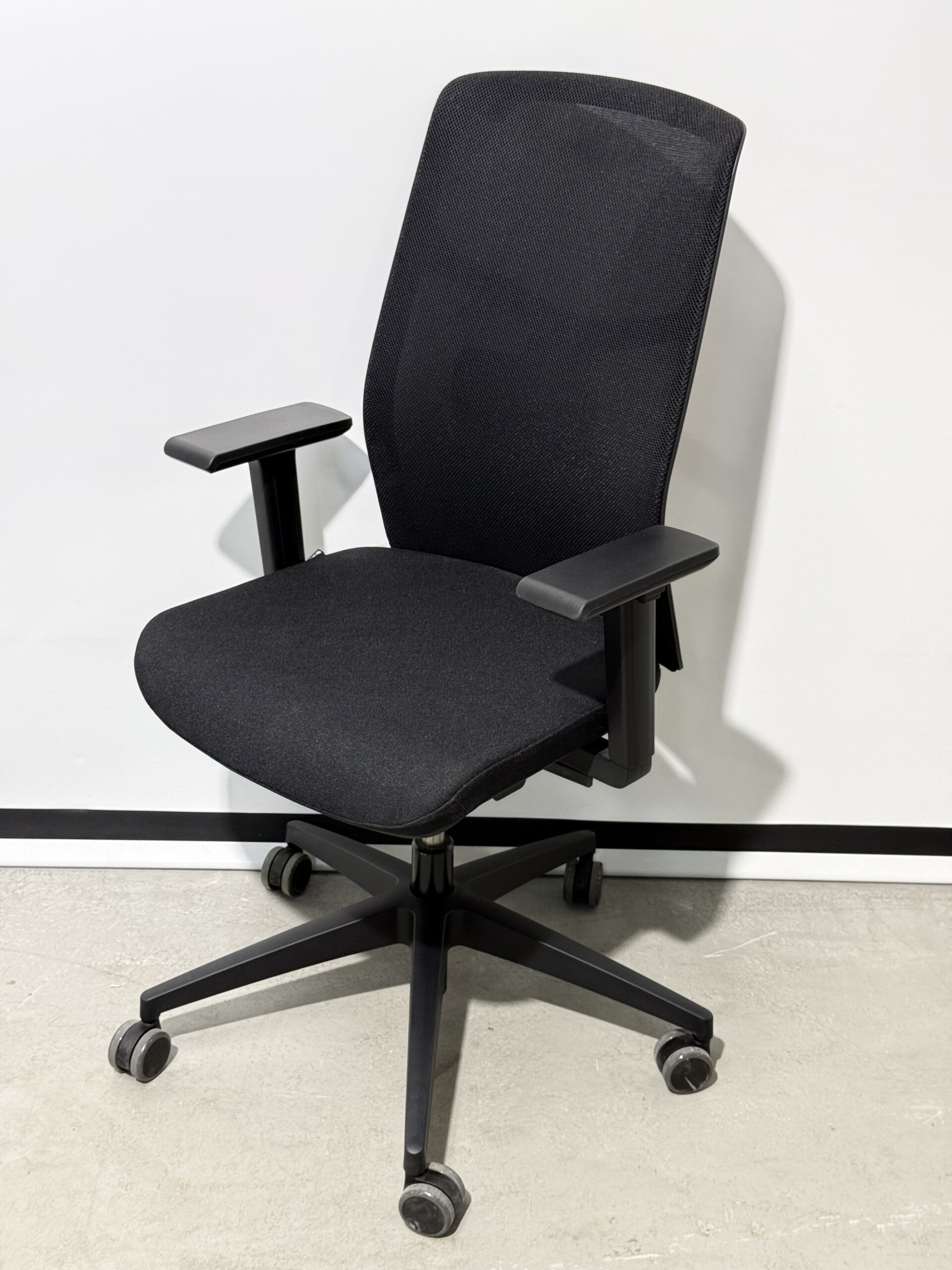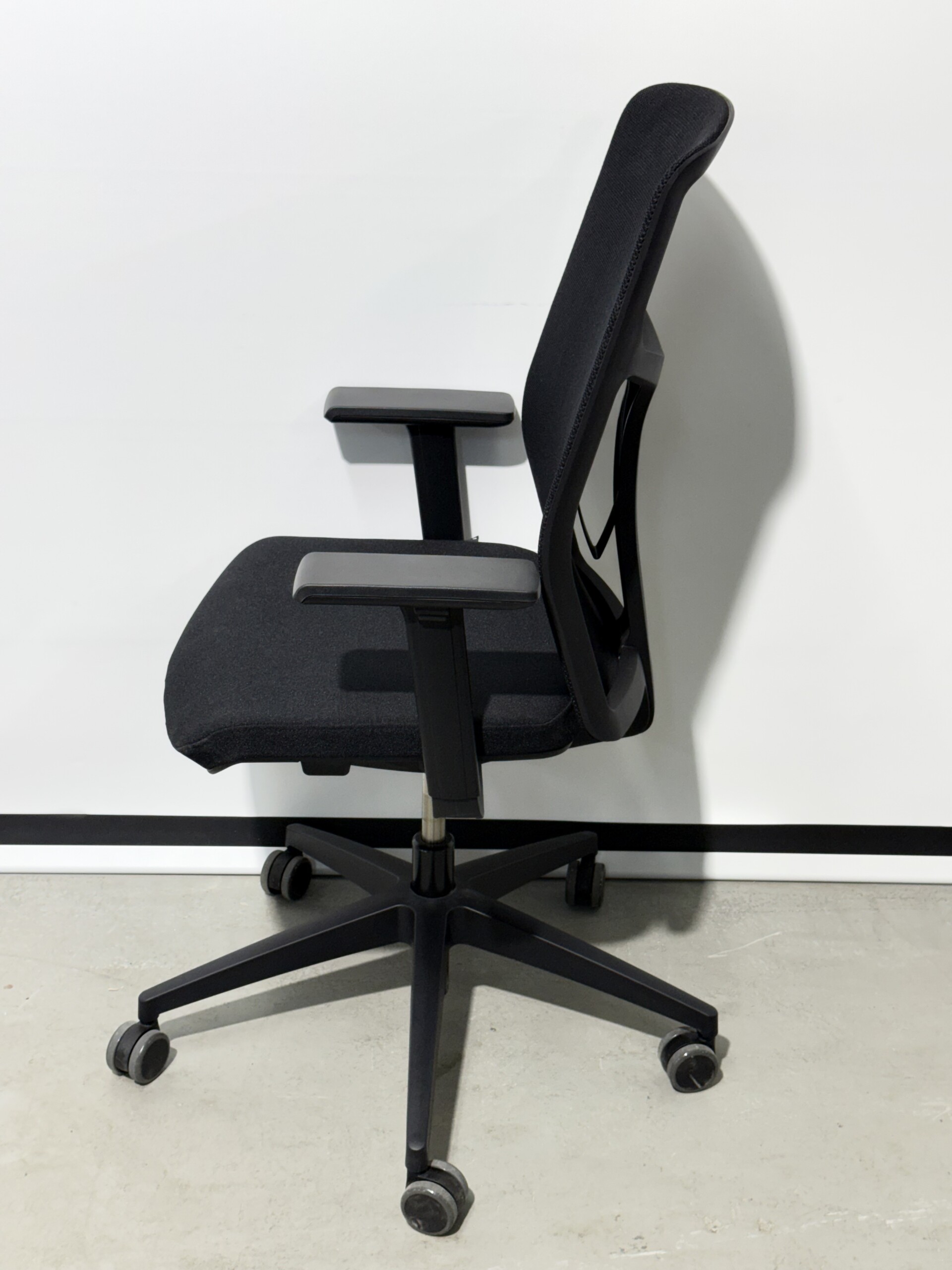 Sete i stoff (svart). Rygg i mesh (svart). Kryssfot i plast (svart). Høydejusterbar