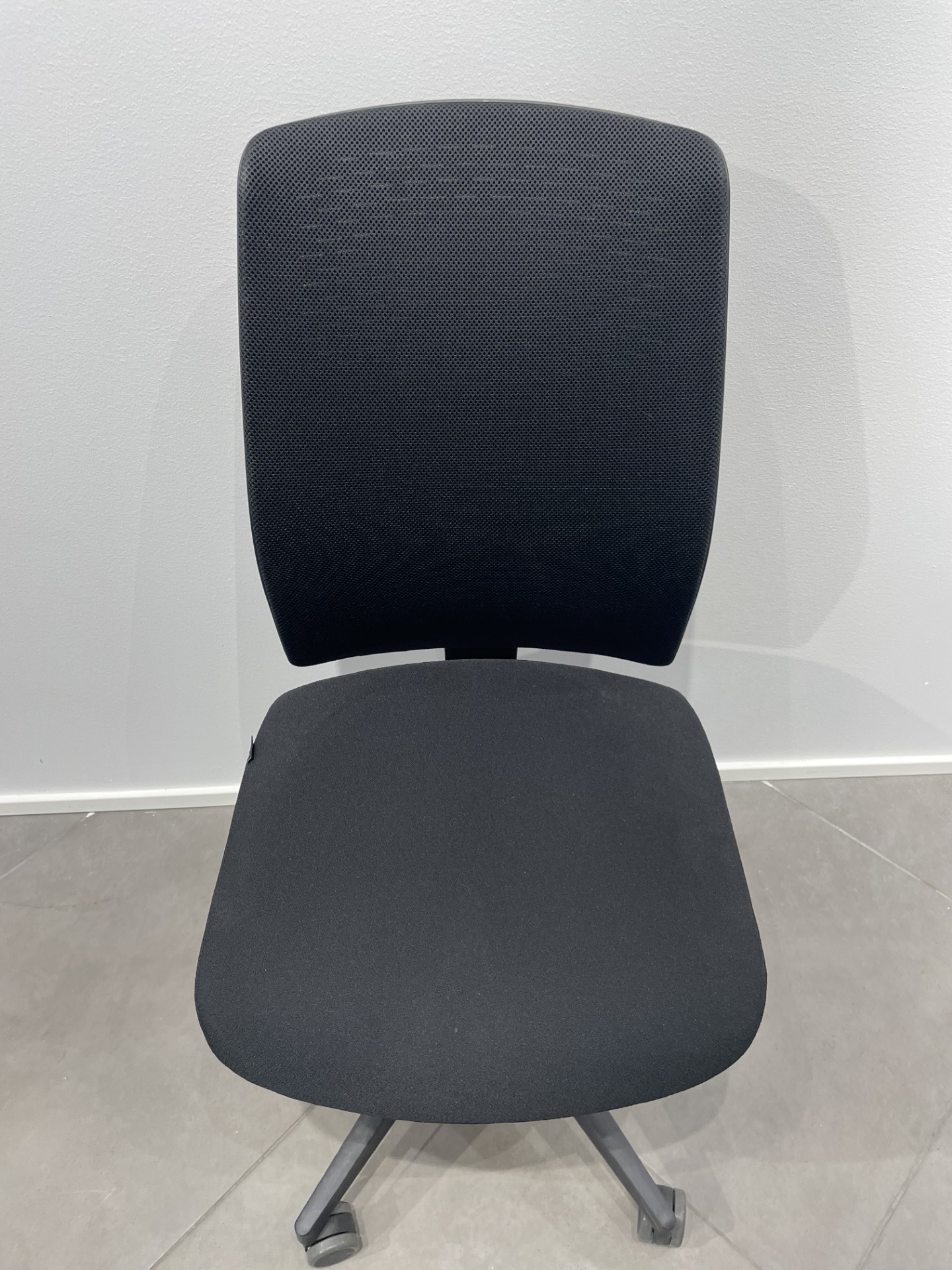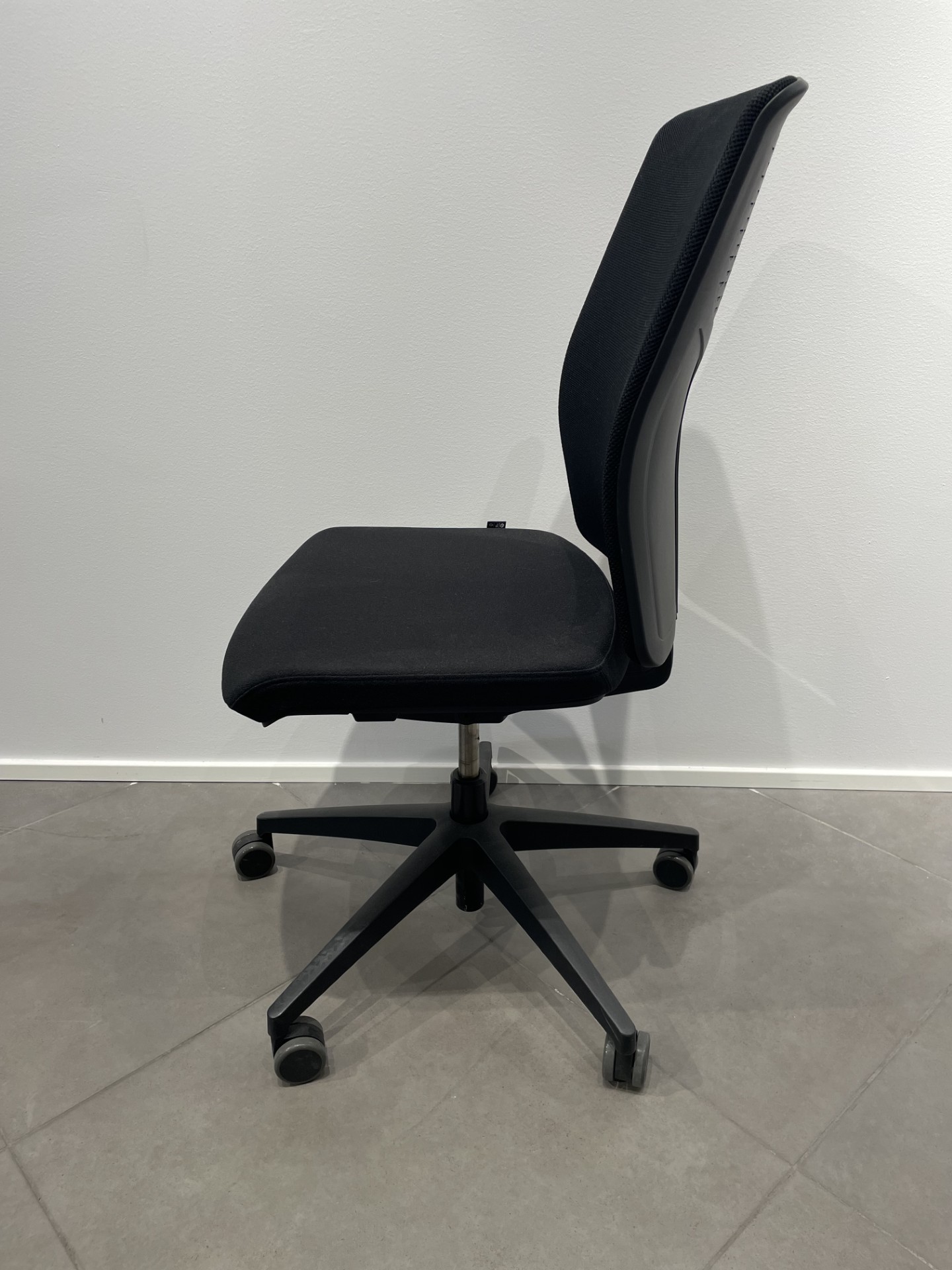 Sete i stoff (svart). Rygg i mesh (svart). Kryssfot i metall (svart). Høydejusterbar