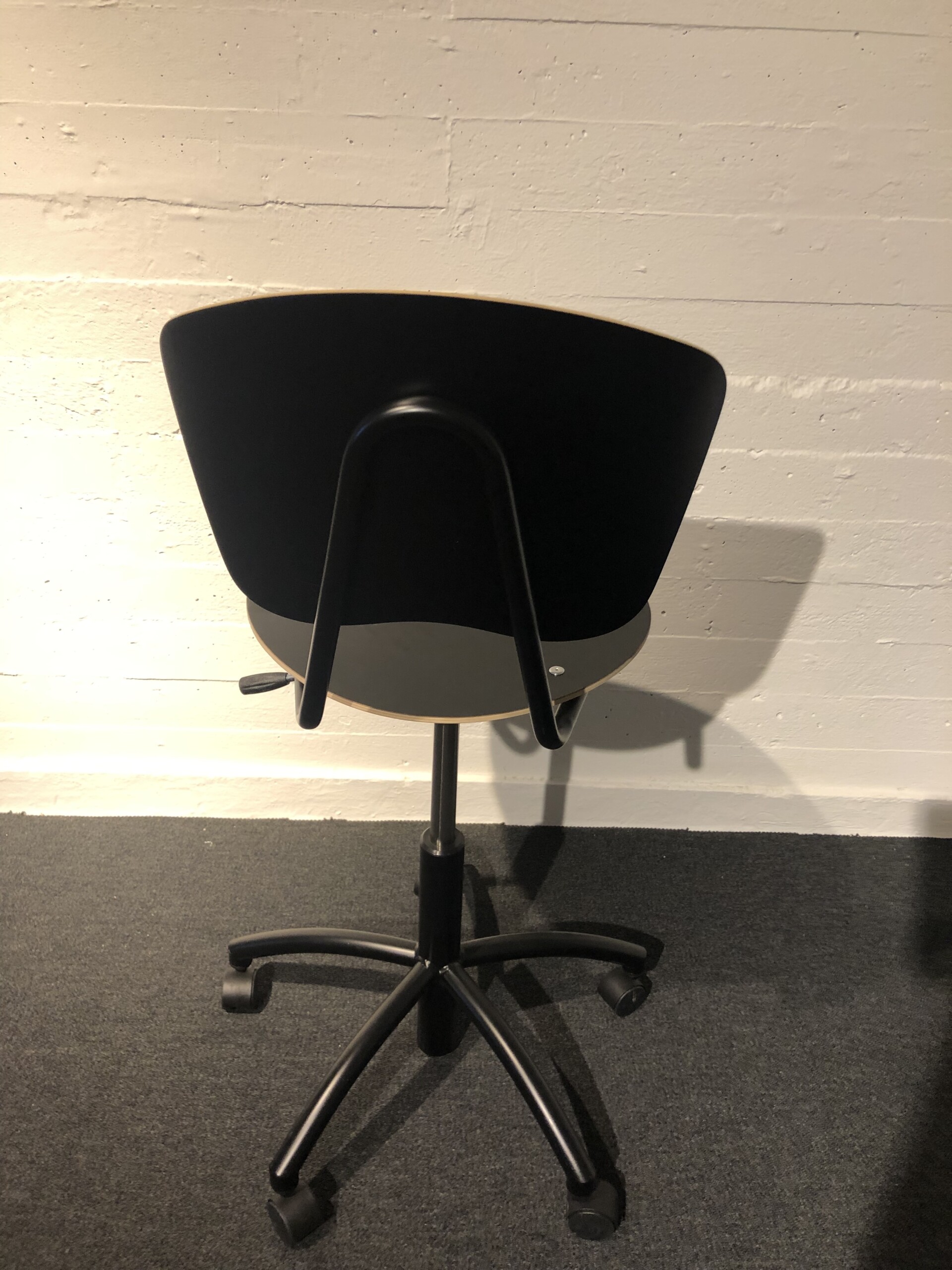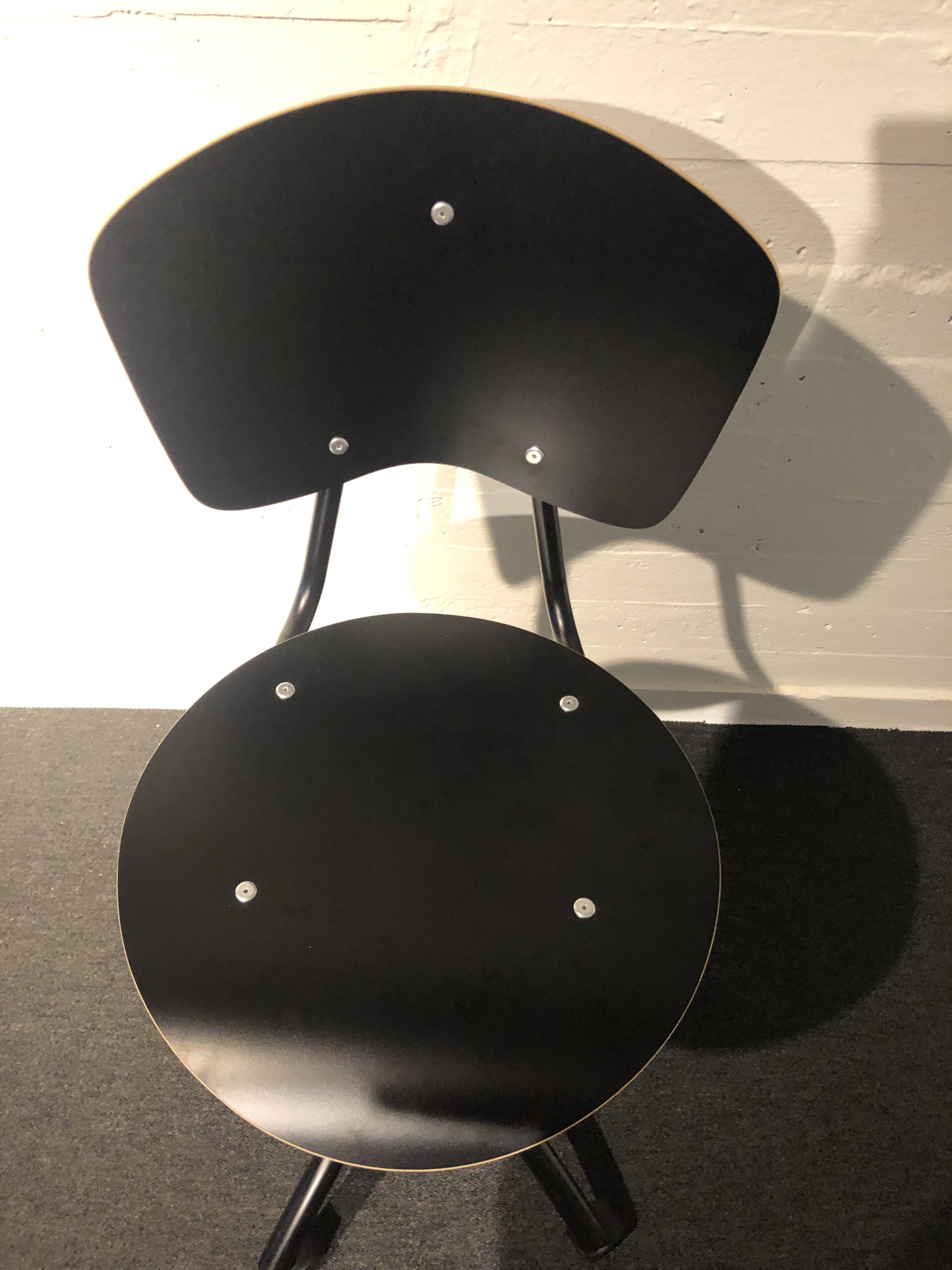 Sete og rygg i laminat (svart). Kryssfot i metall (svart).