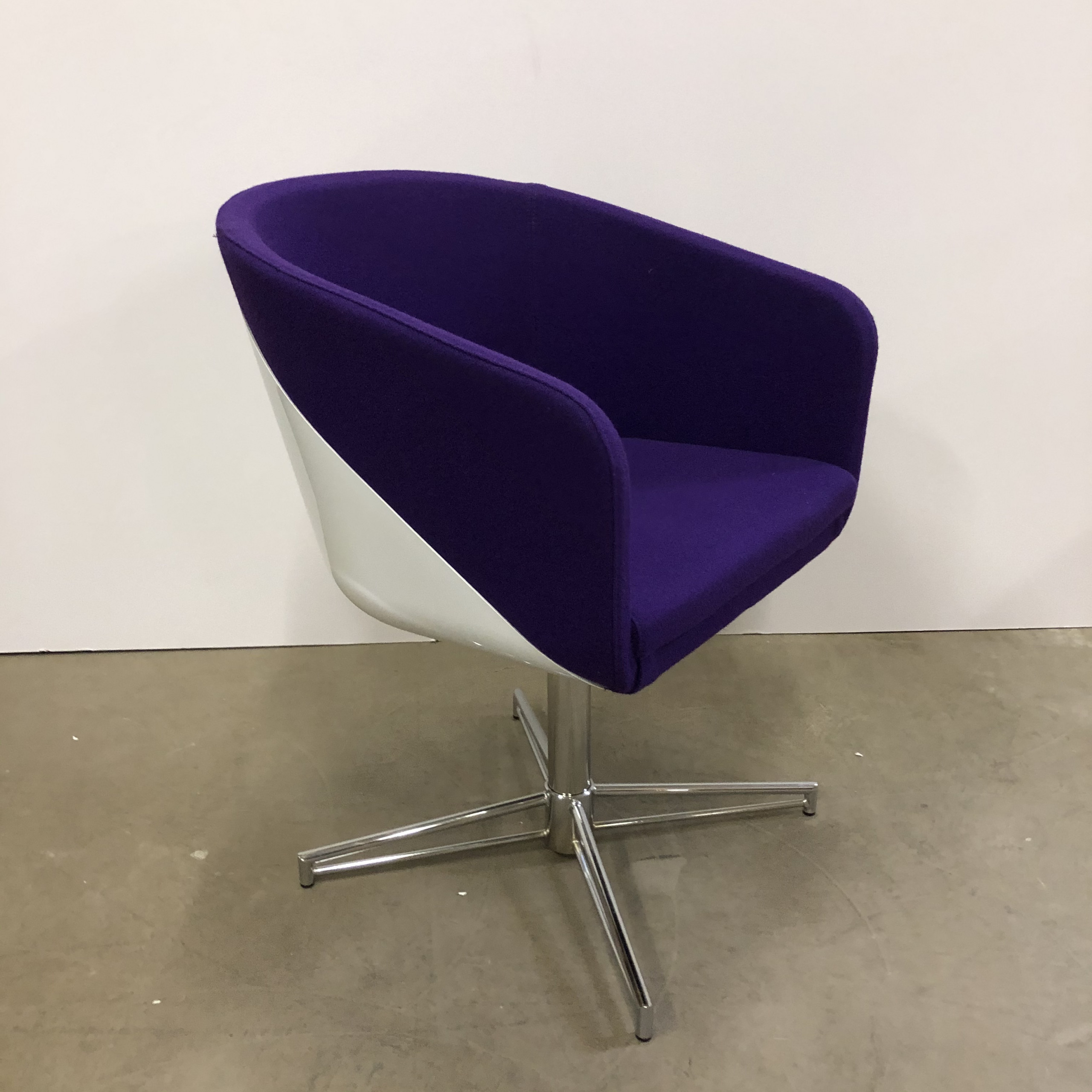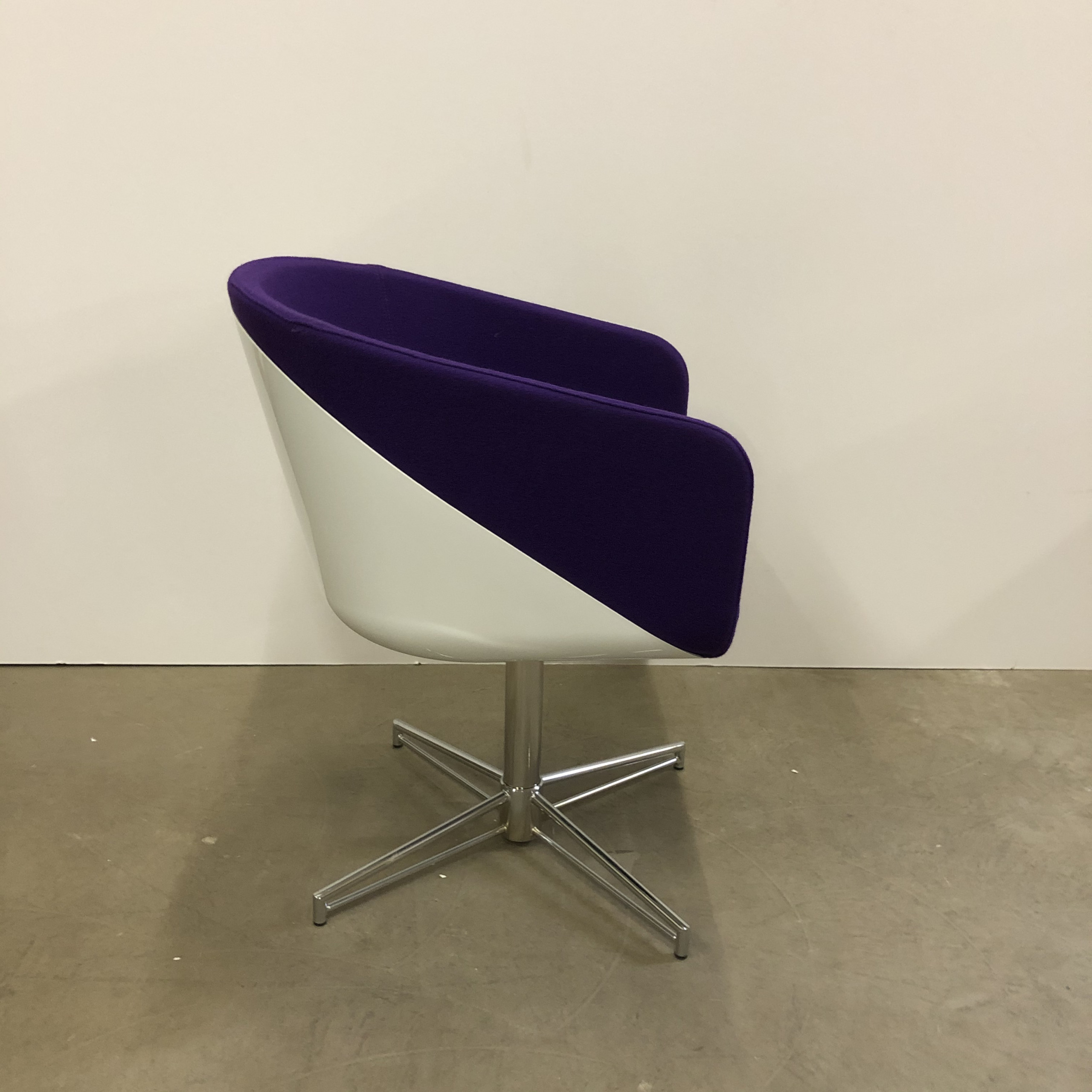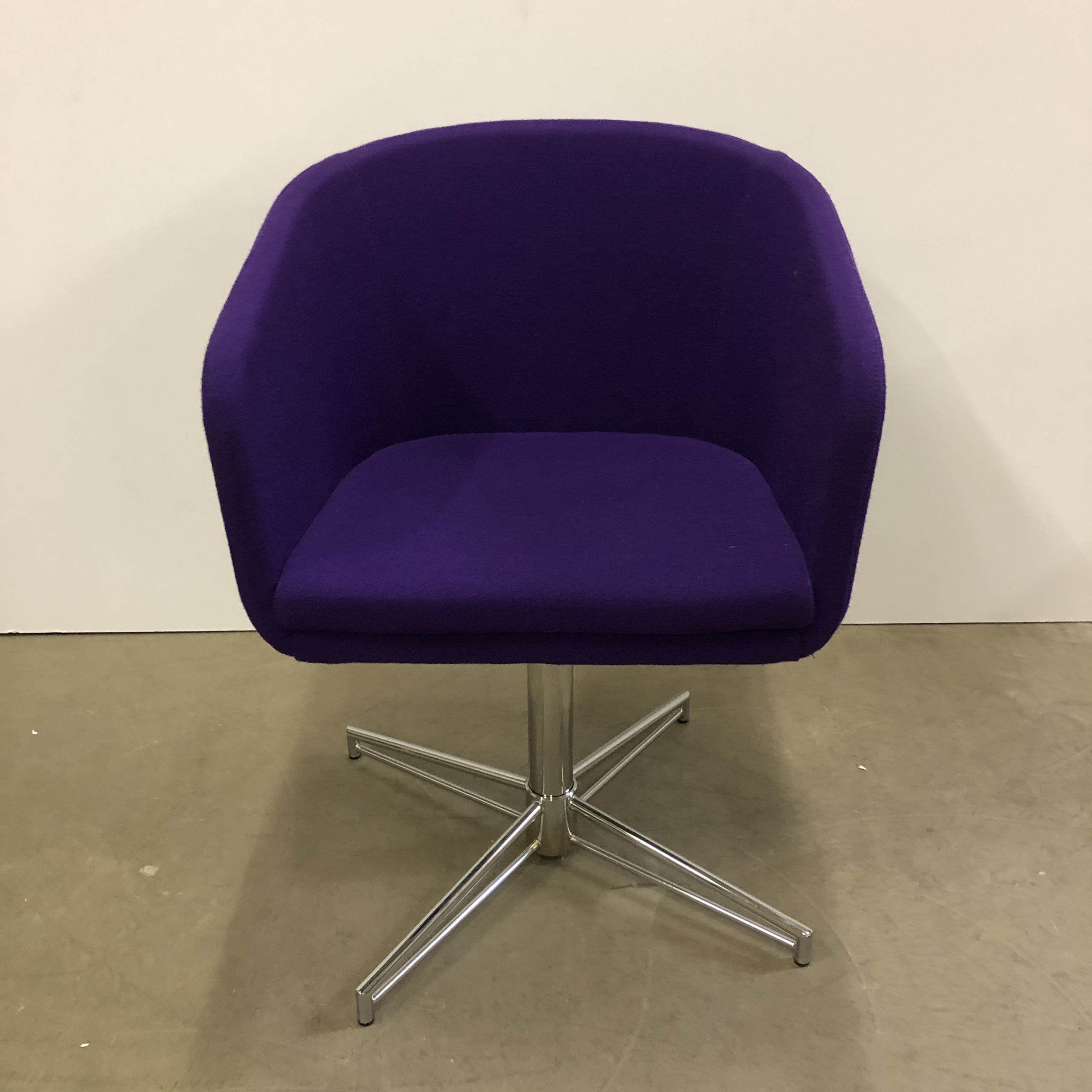 Sete og rygg i stoff (lilla). Kryssfot i metall (krom).