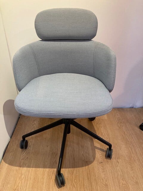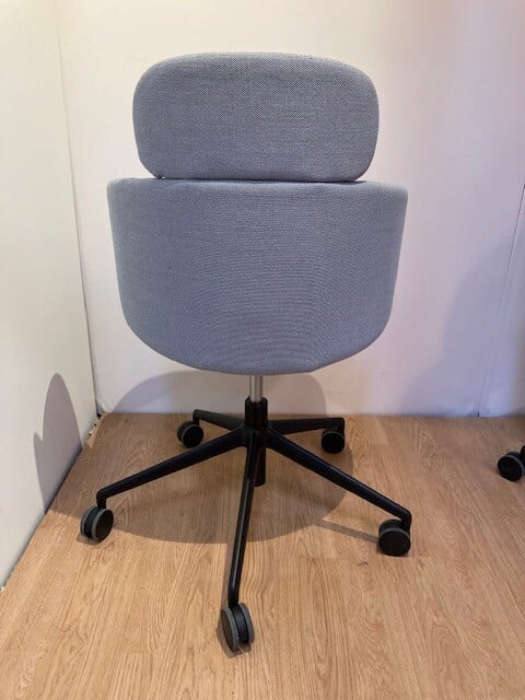 Sete og rygg i stoff (grå). Kryssfot i metall (svart). Høydejusterbar