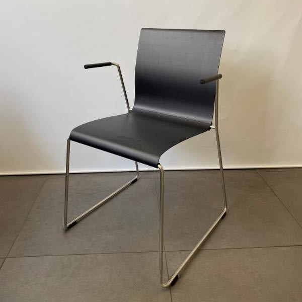 Sete og rygg i metall (svart). Meiestativ i metall (rustfritt).