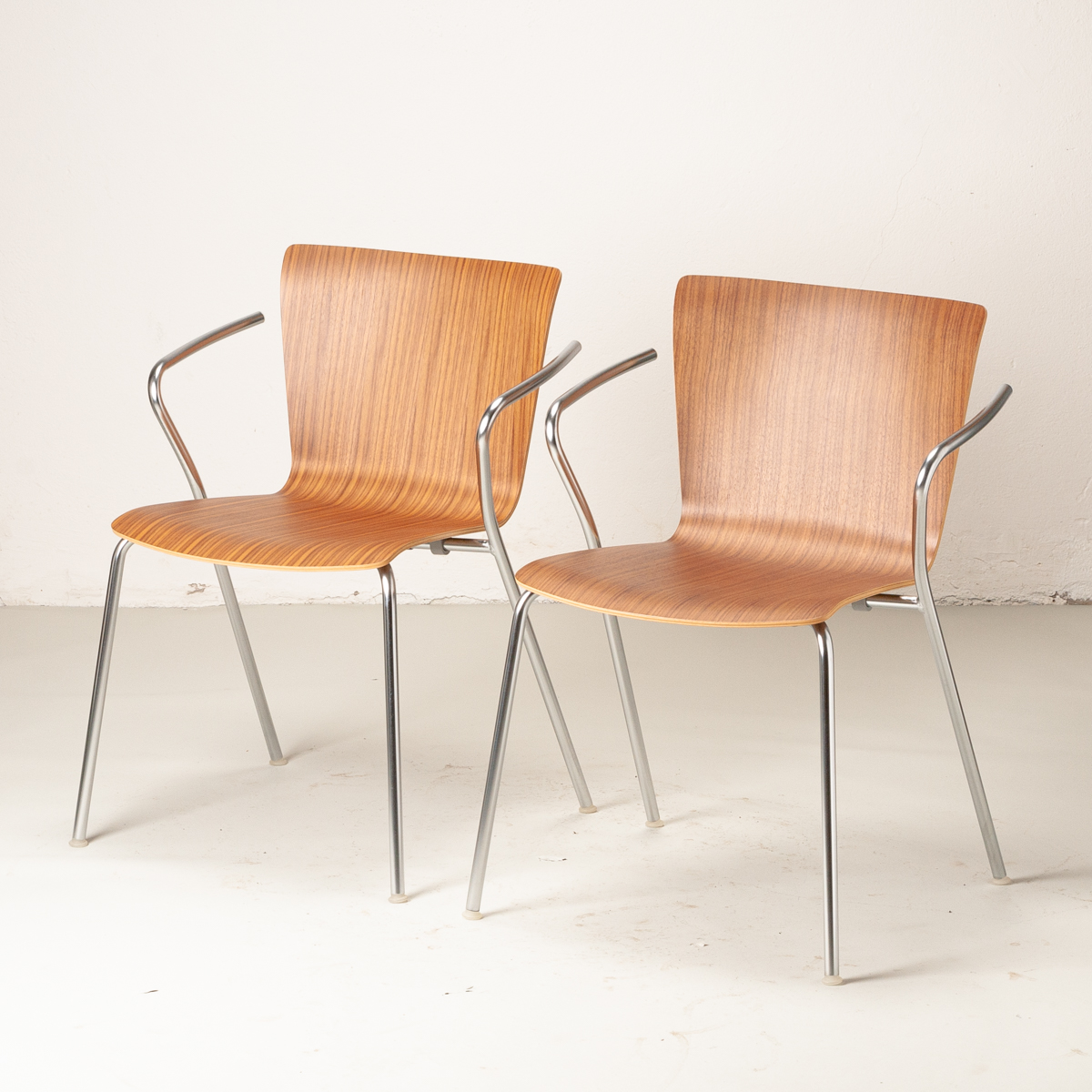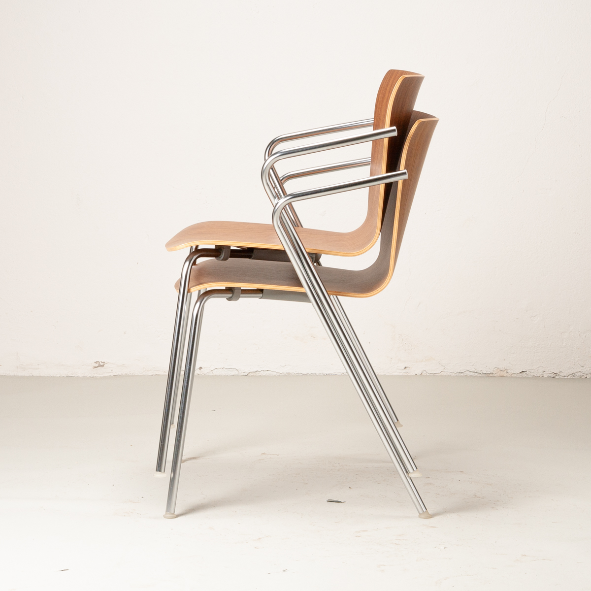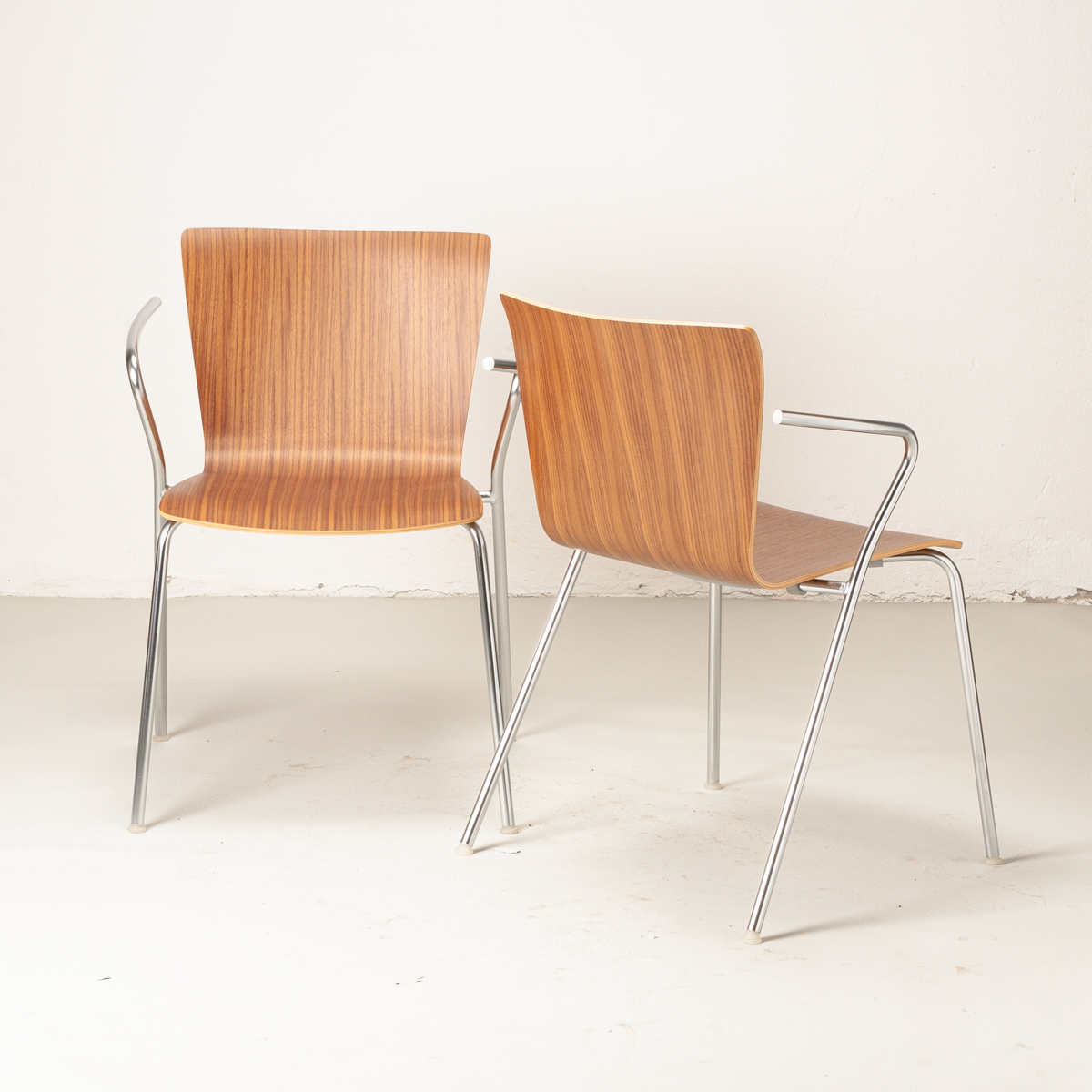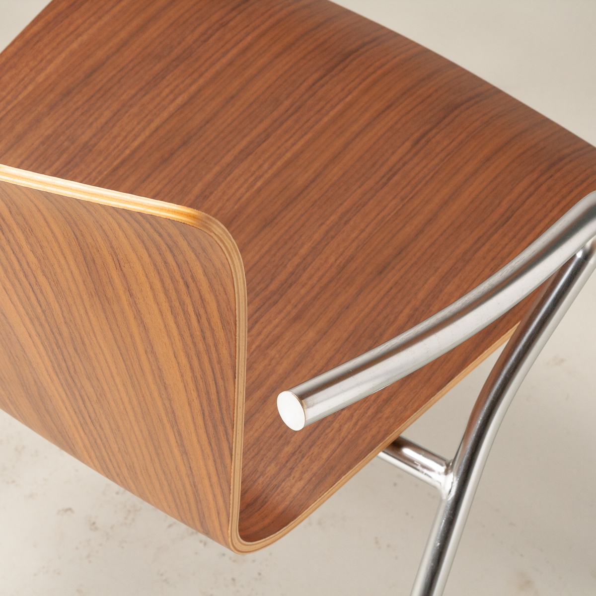 Sete og rygg i tre (valnøtt). Ben i metall (krom).