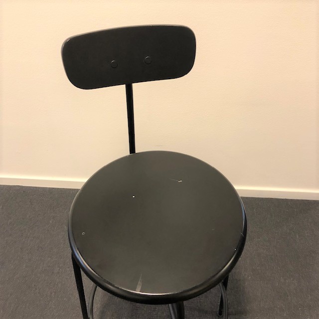 Sete og rygg i tre (svart). Ben i metall (svart).