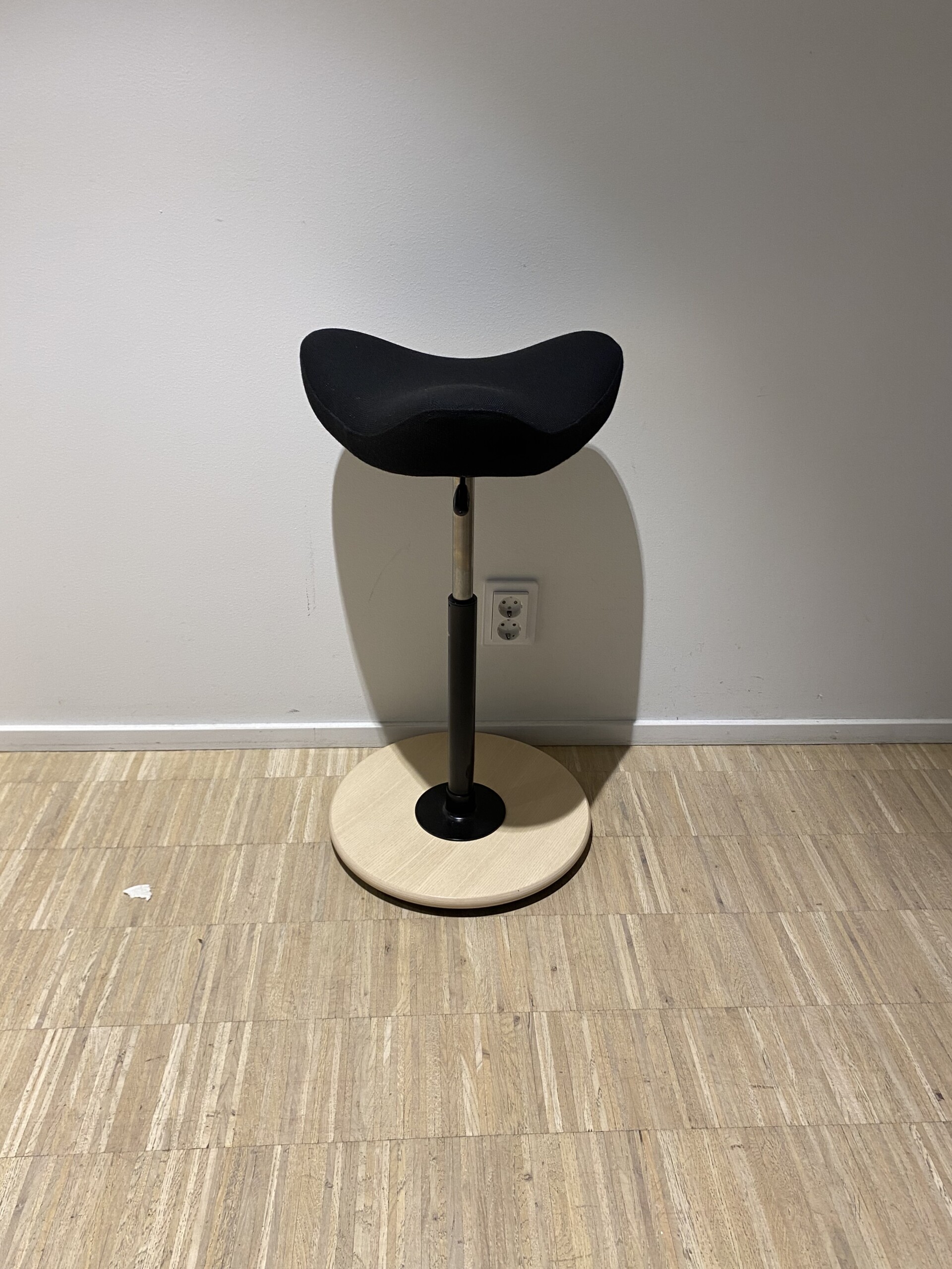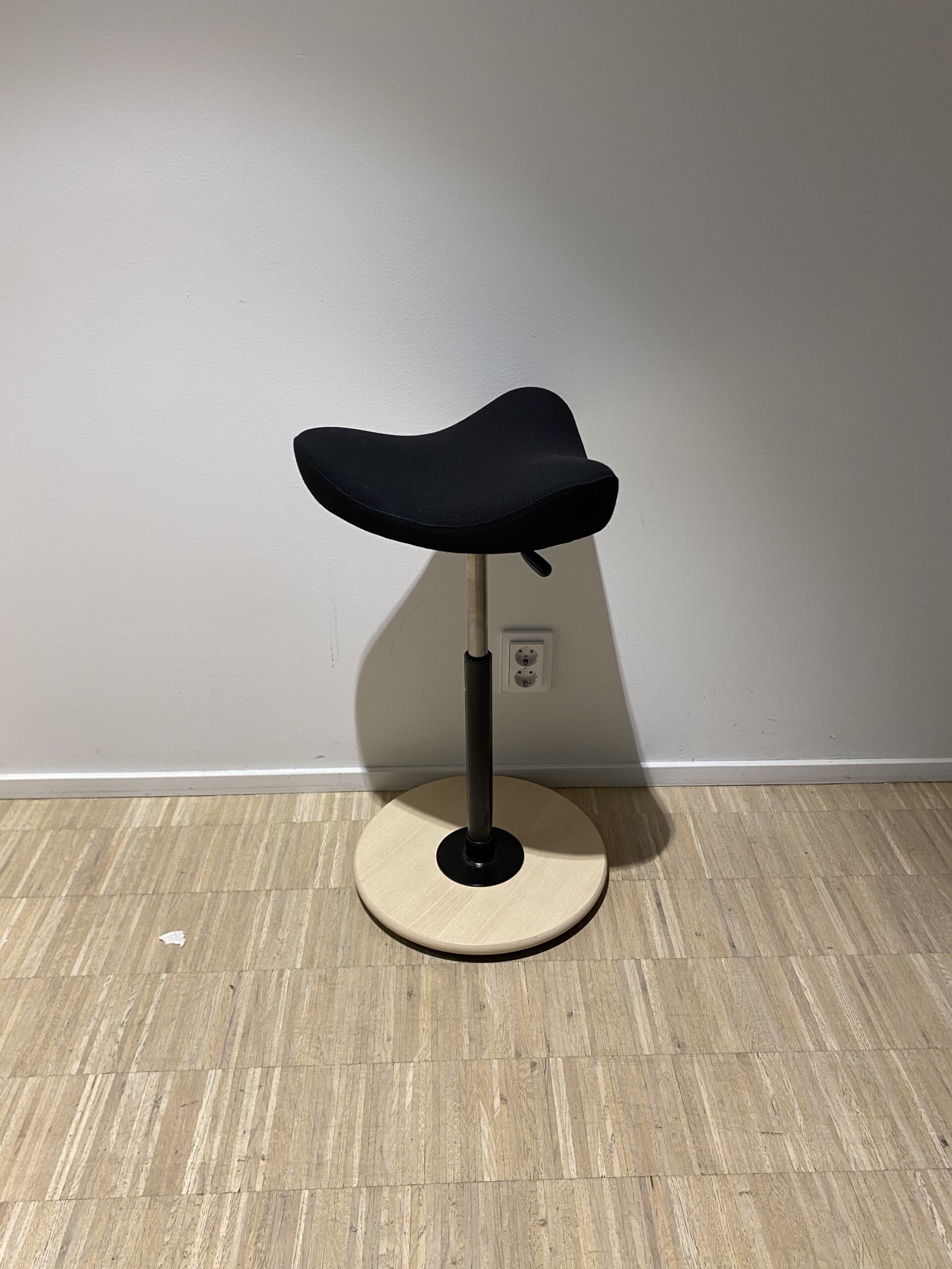 Sete i stoff (svart). Søylefot i tre (ask).