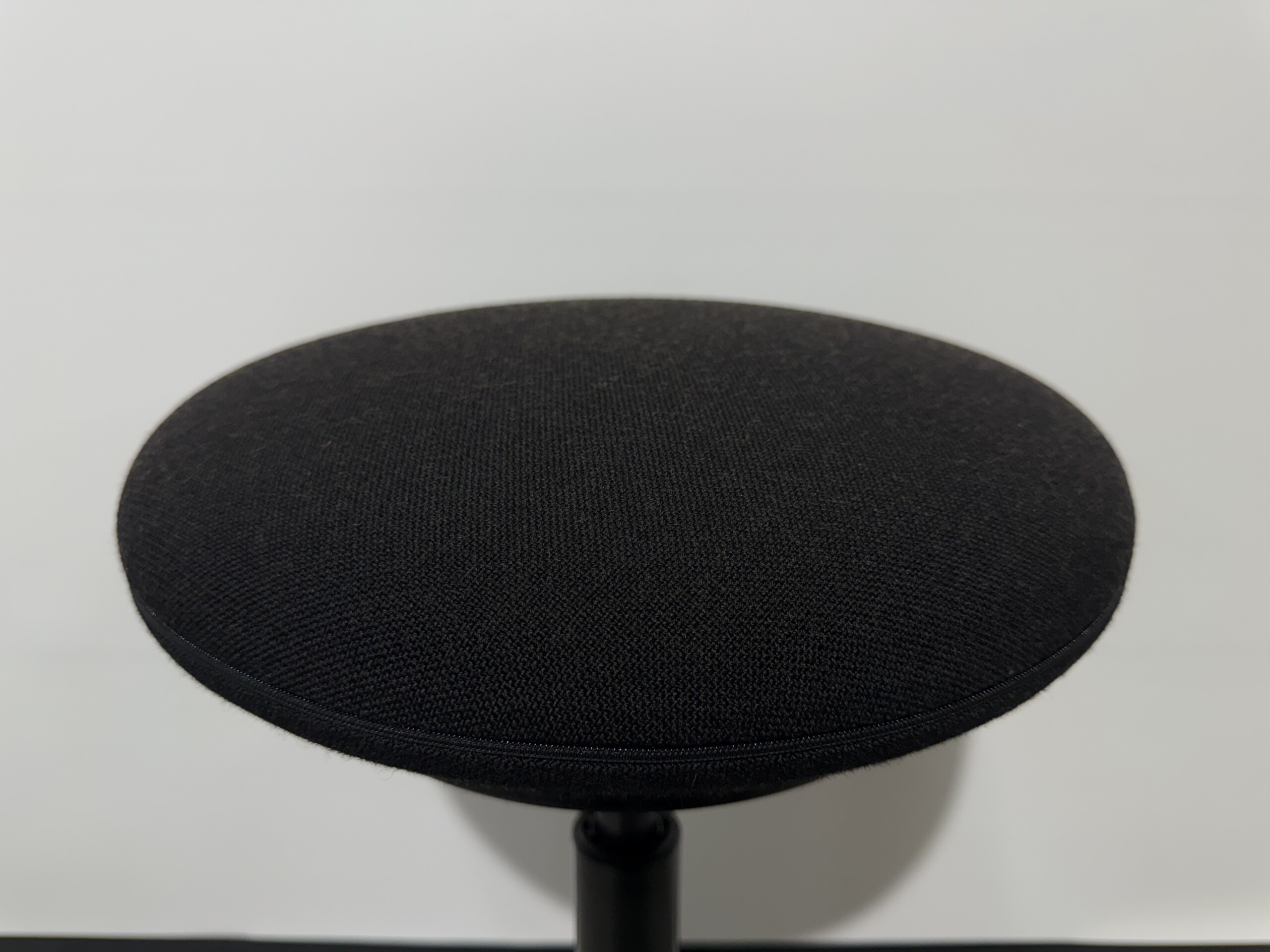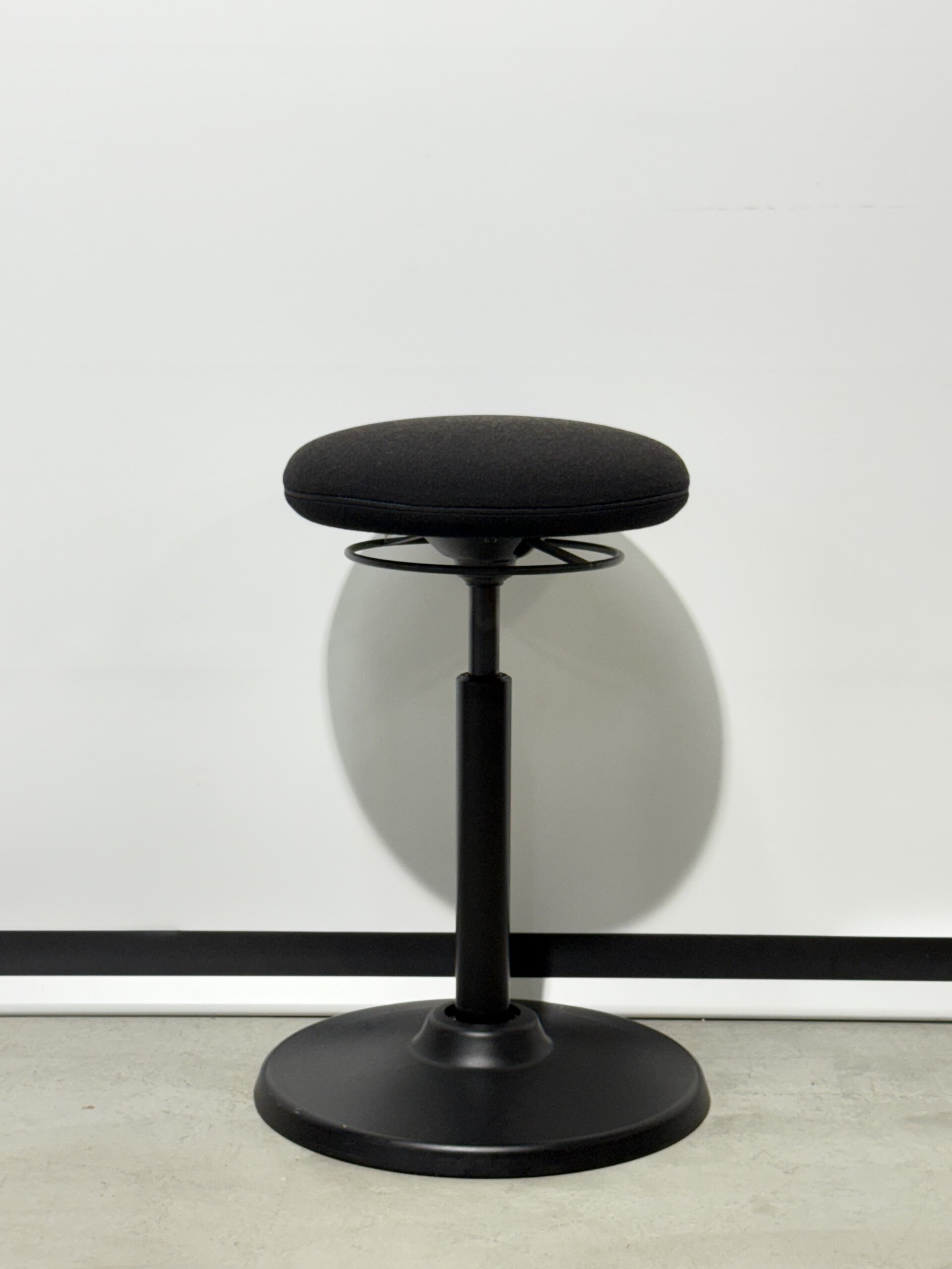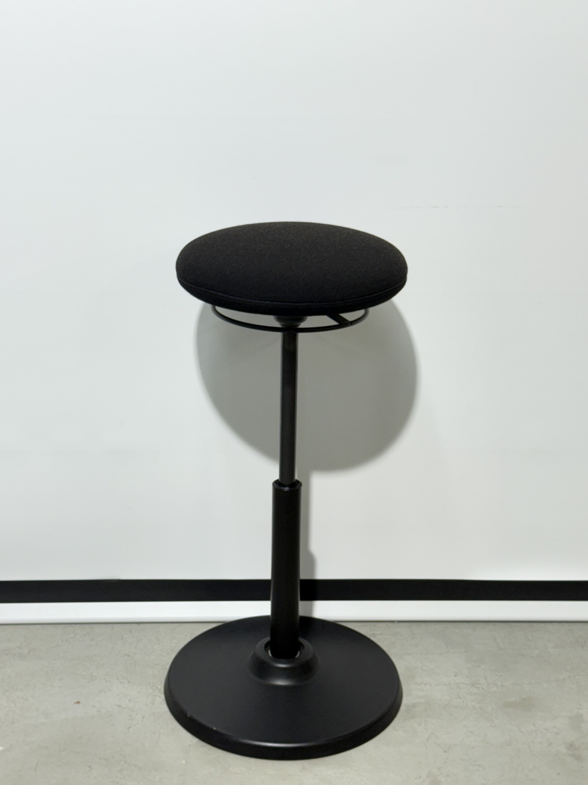 Sete i stoff (svart). Søylefot i metall (svart). Høydejusterbar