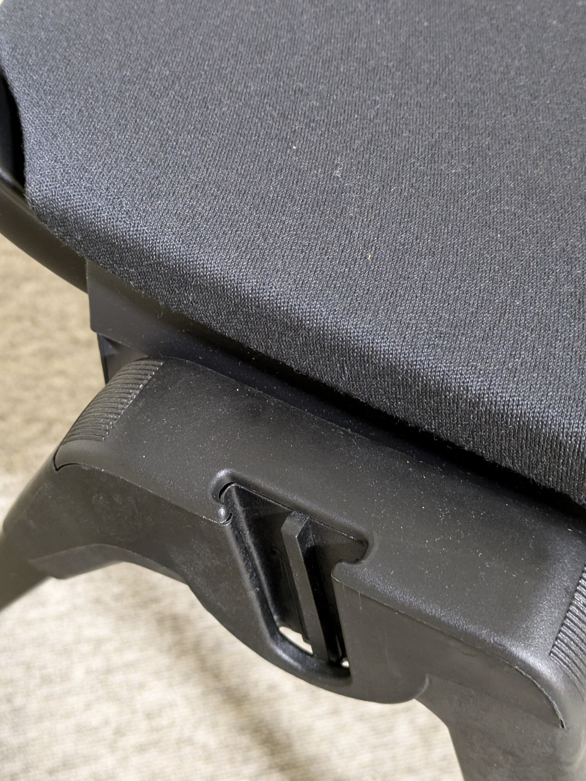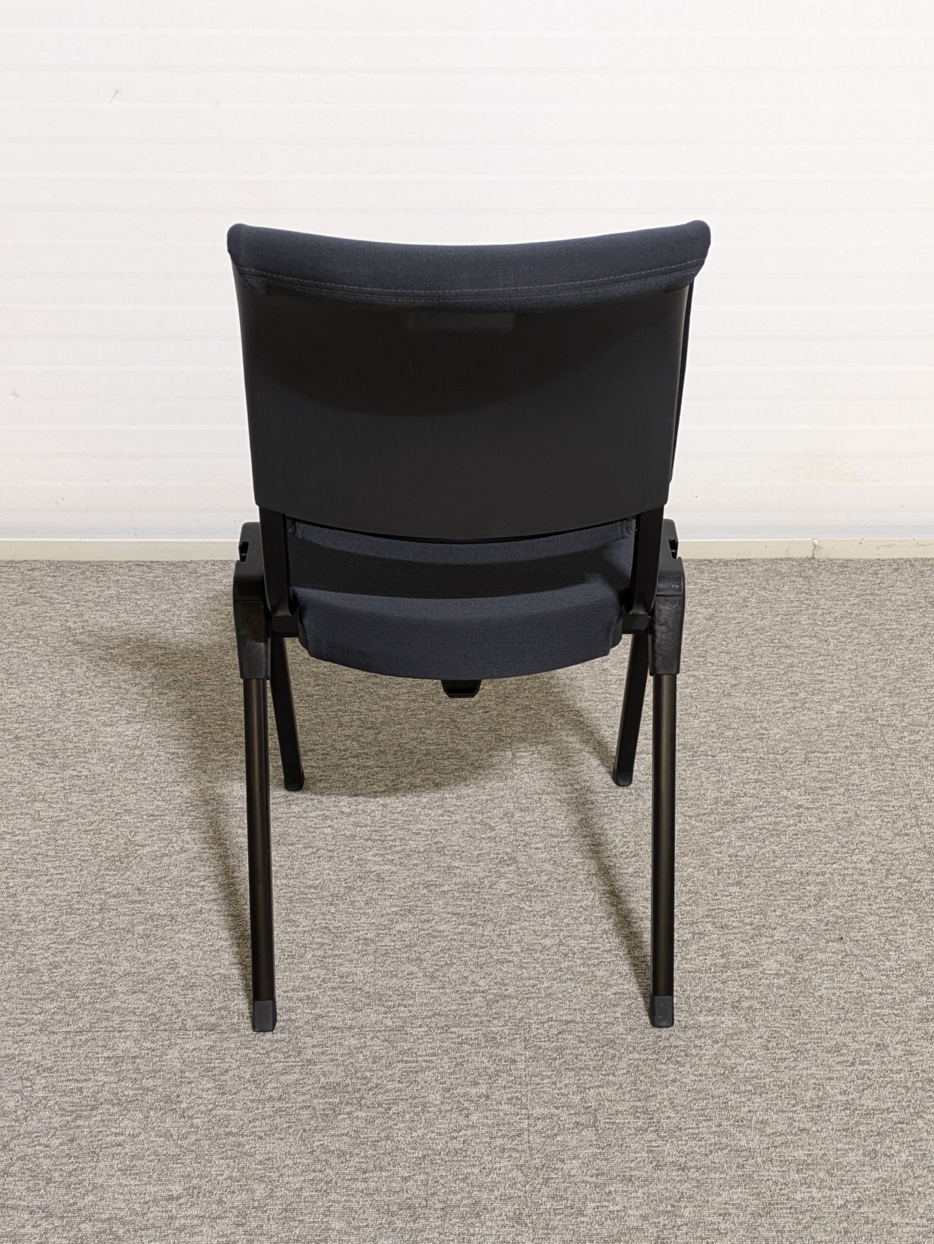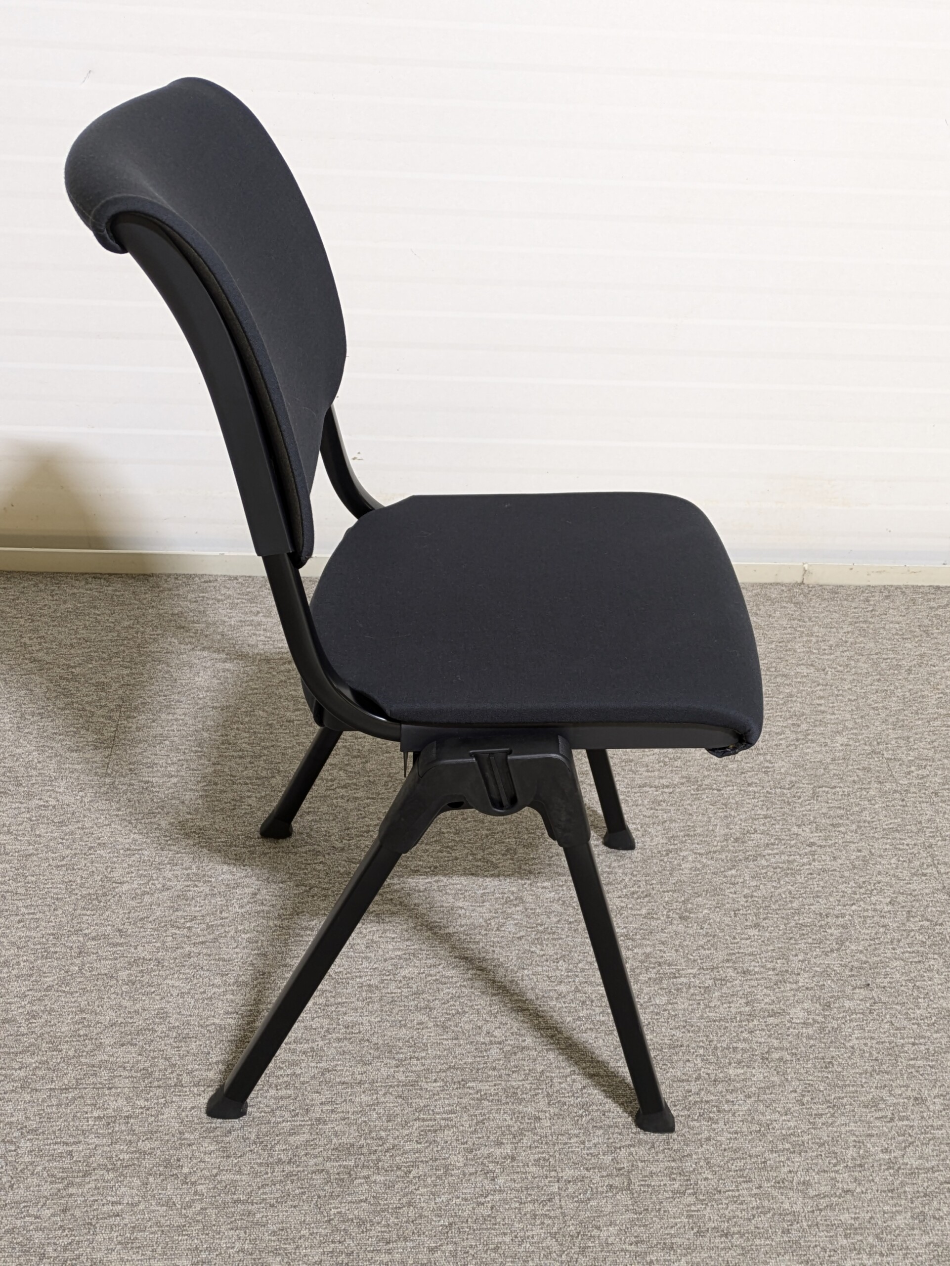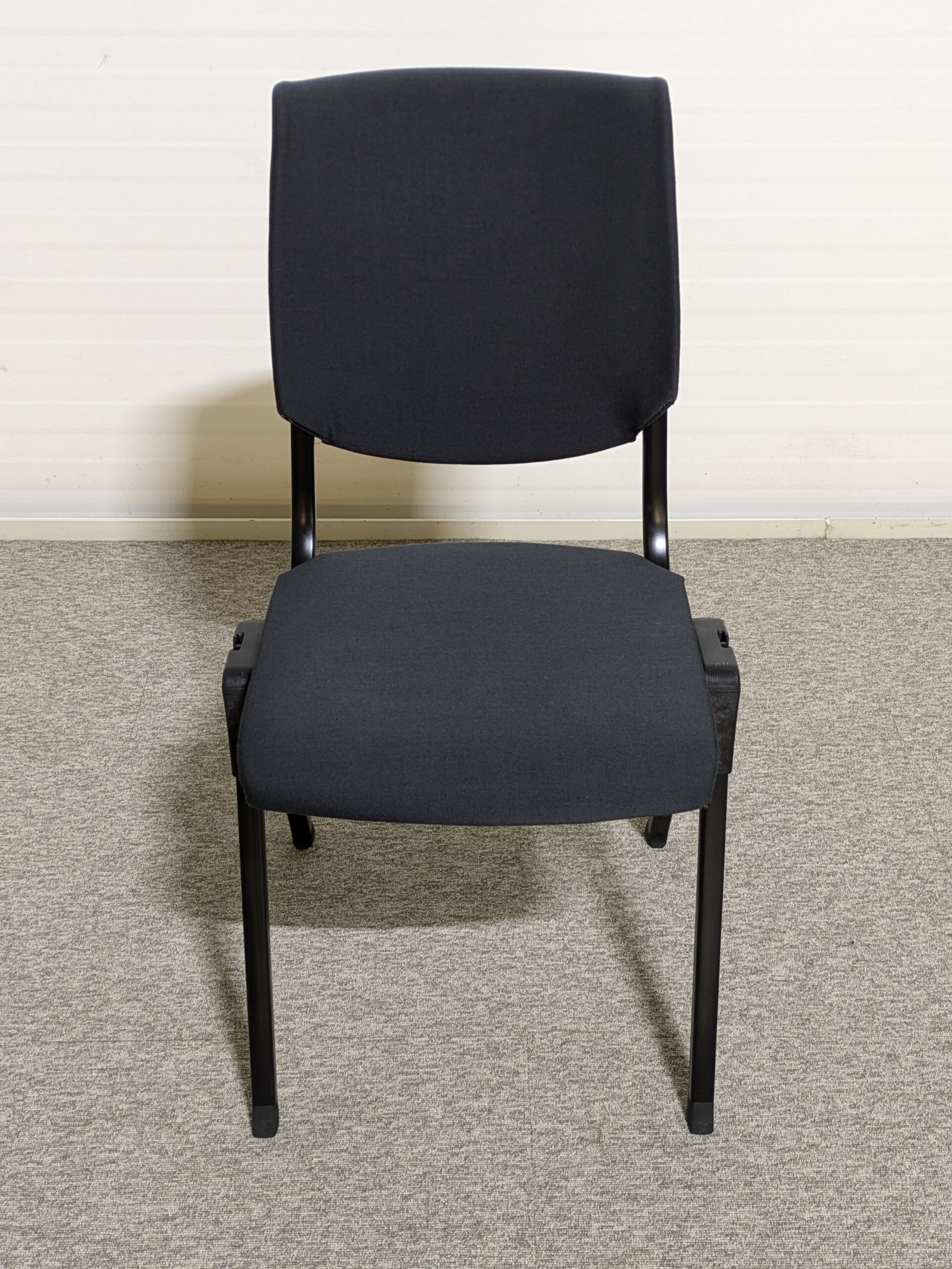 Sete og rygg i stoff (grå). Ben i metall (svart).