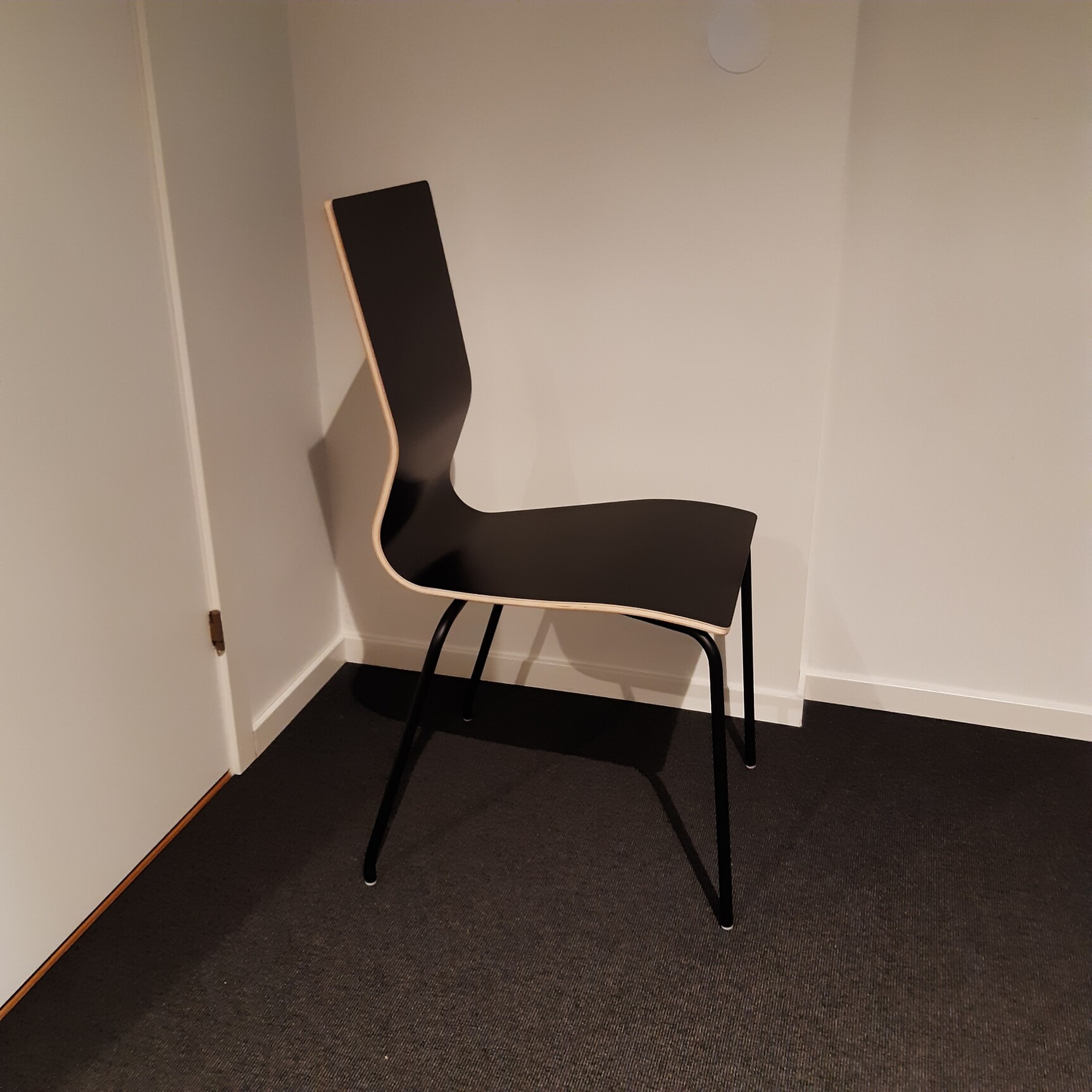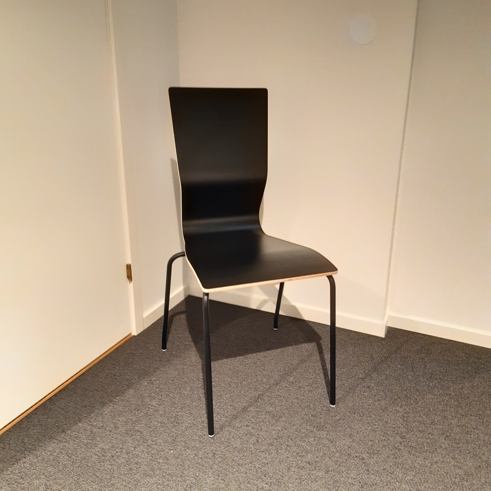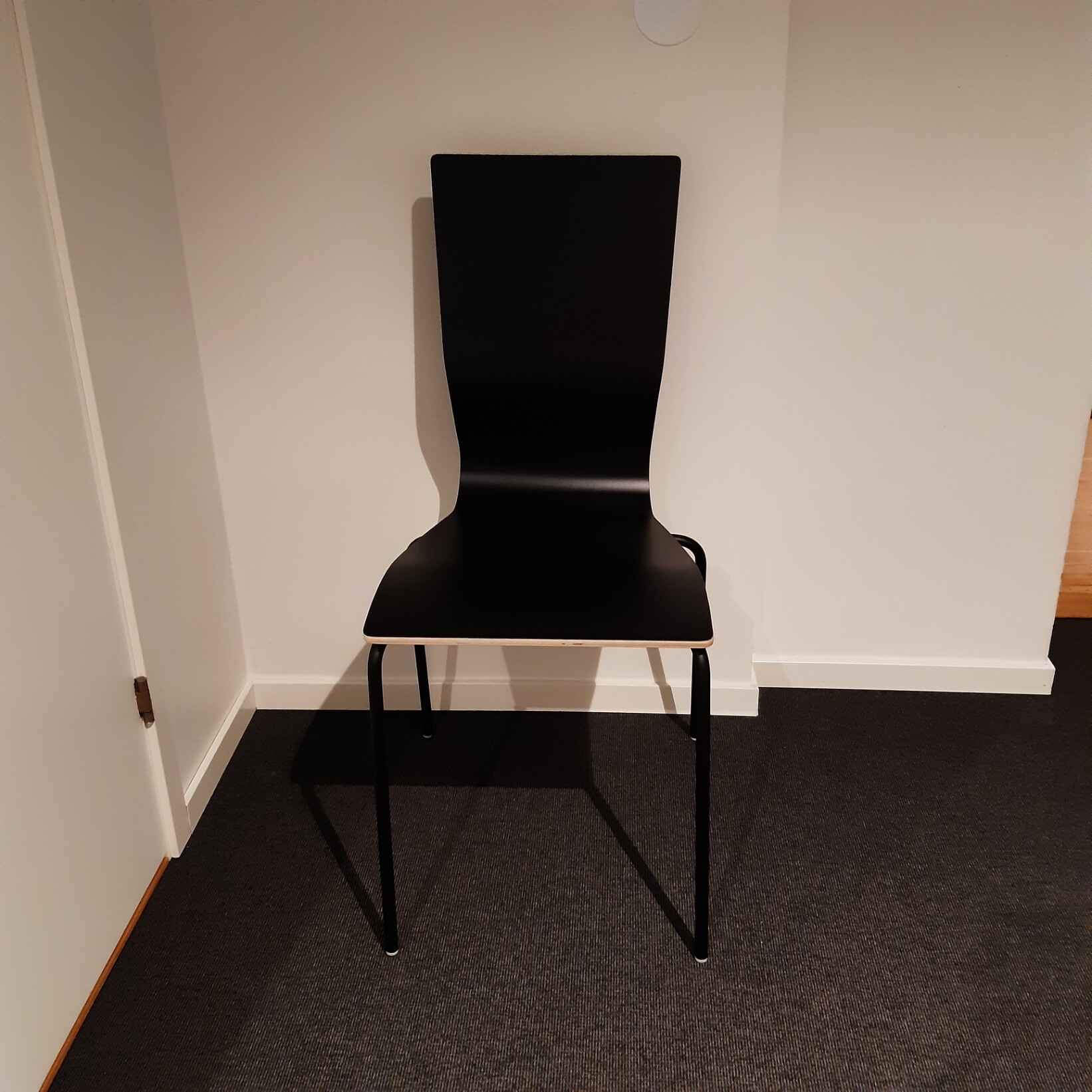 Sete og rygg i laminat (svart). Ben i metall (svart).