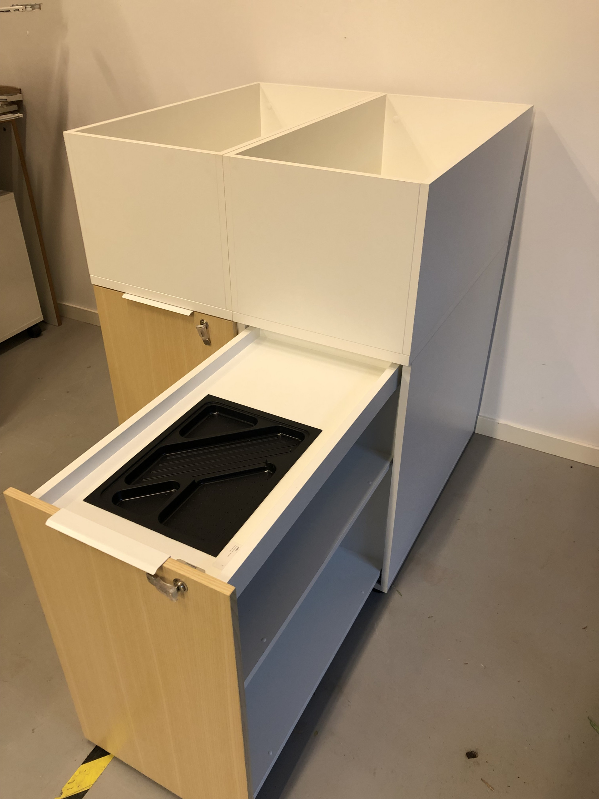 Stamme i laminat (hvit). Front i laminat (ask).