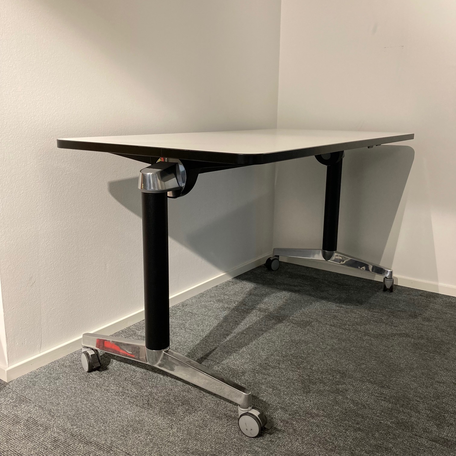 Bordplate i laminat (hvit). Understell i metall (aluminium).