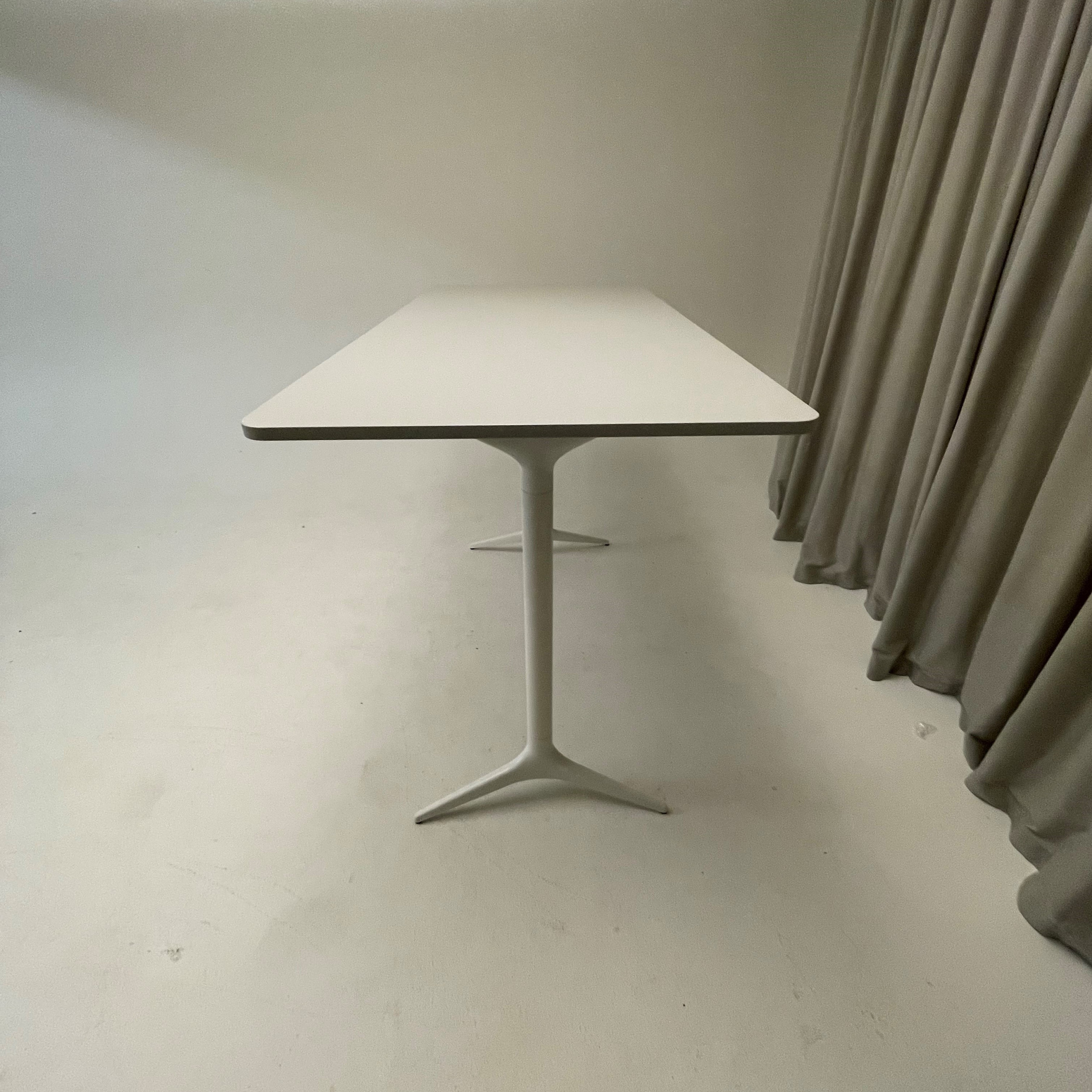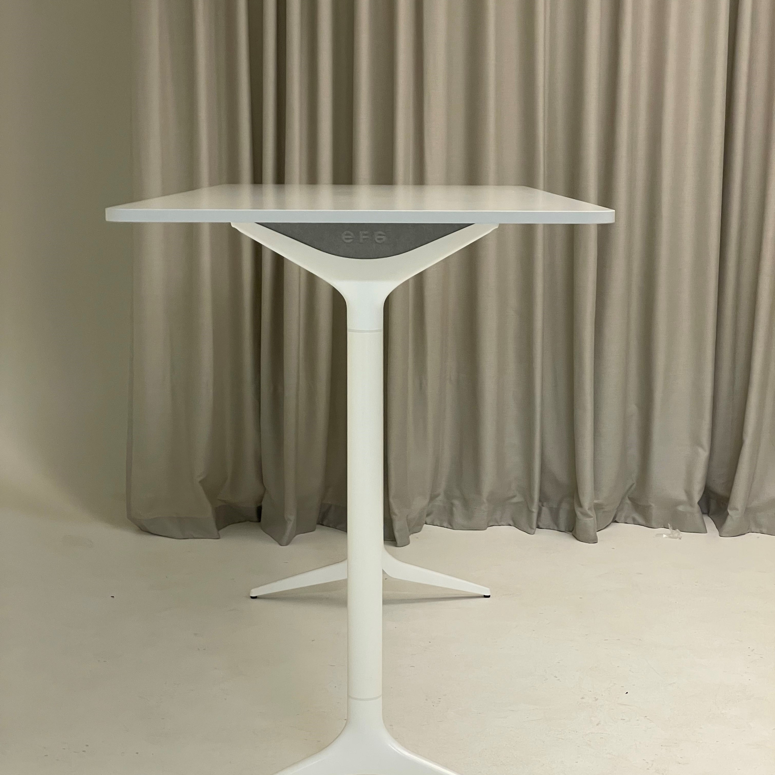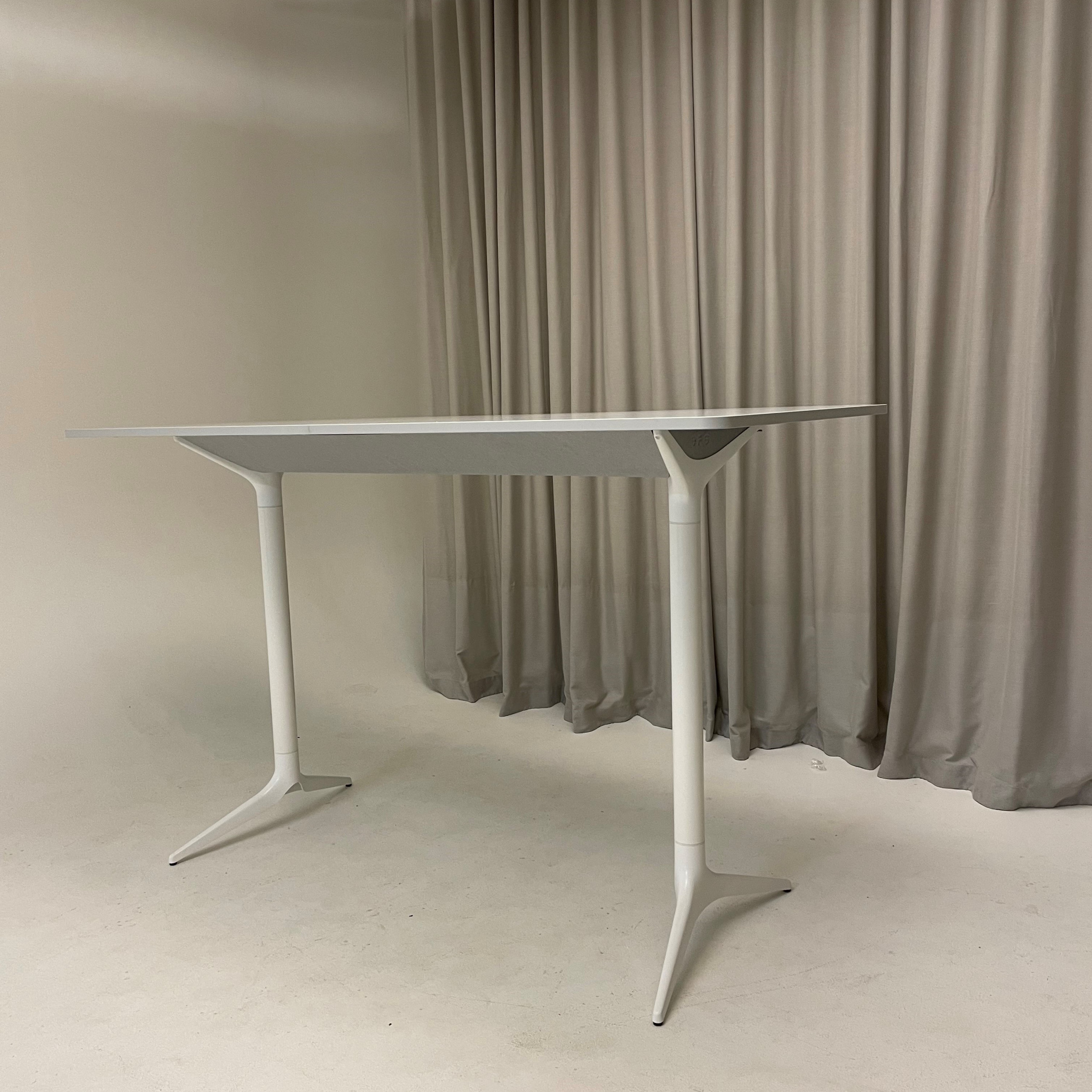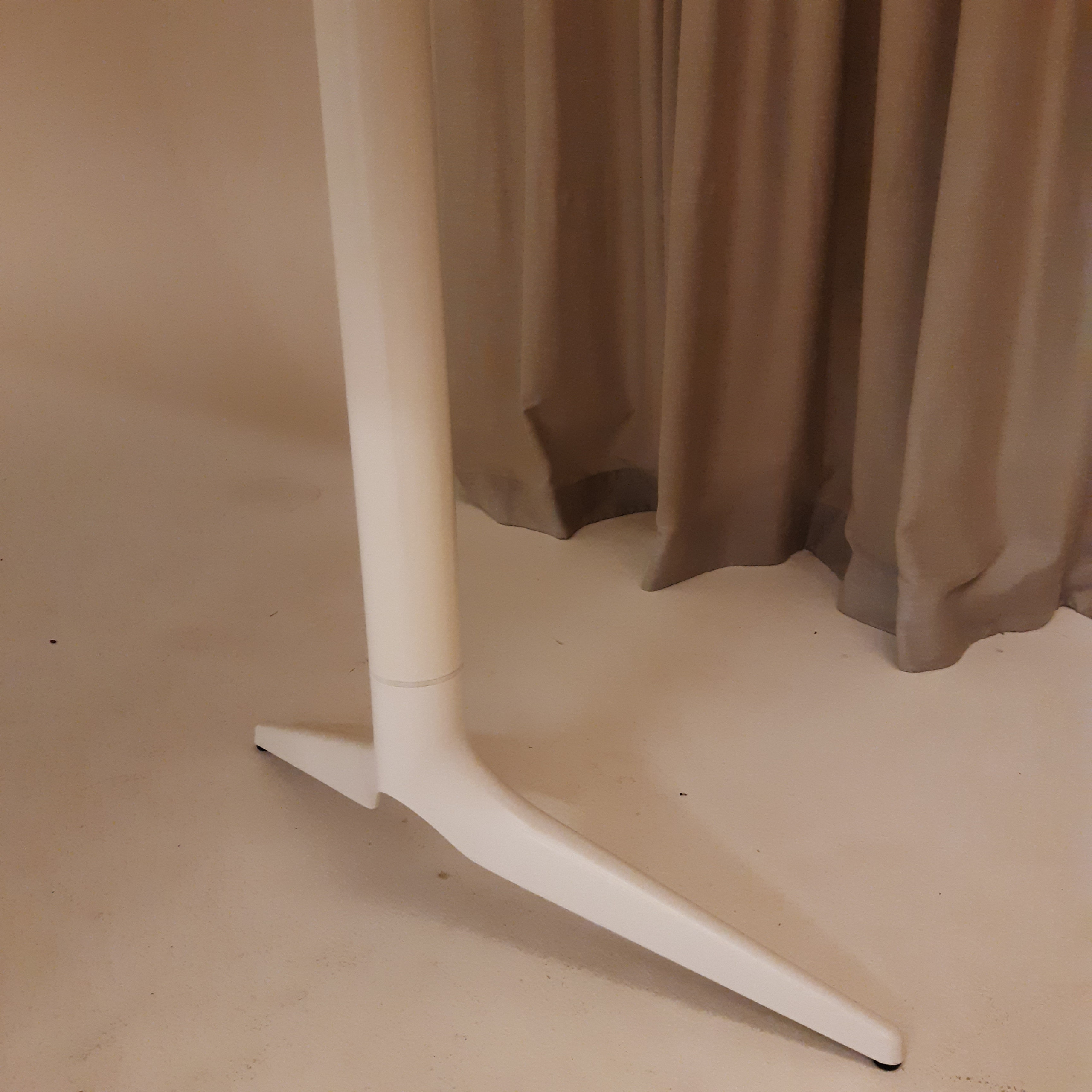 Bordplate i laminat (grå). Understell i metall (hvit).