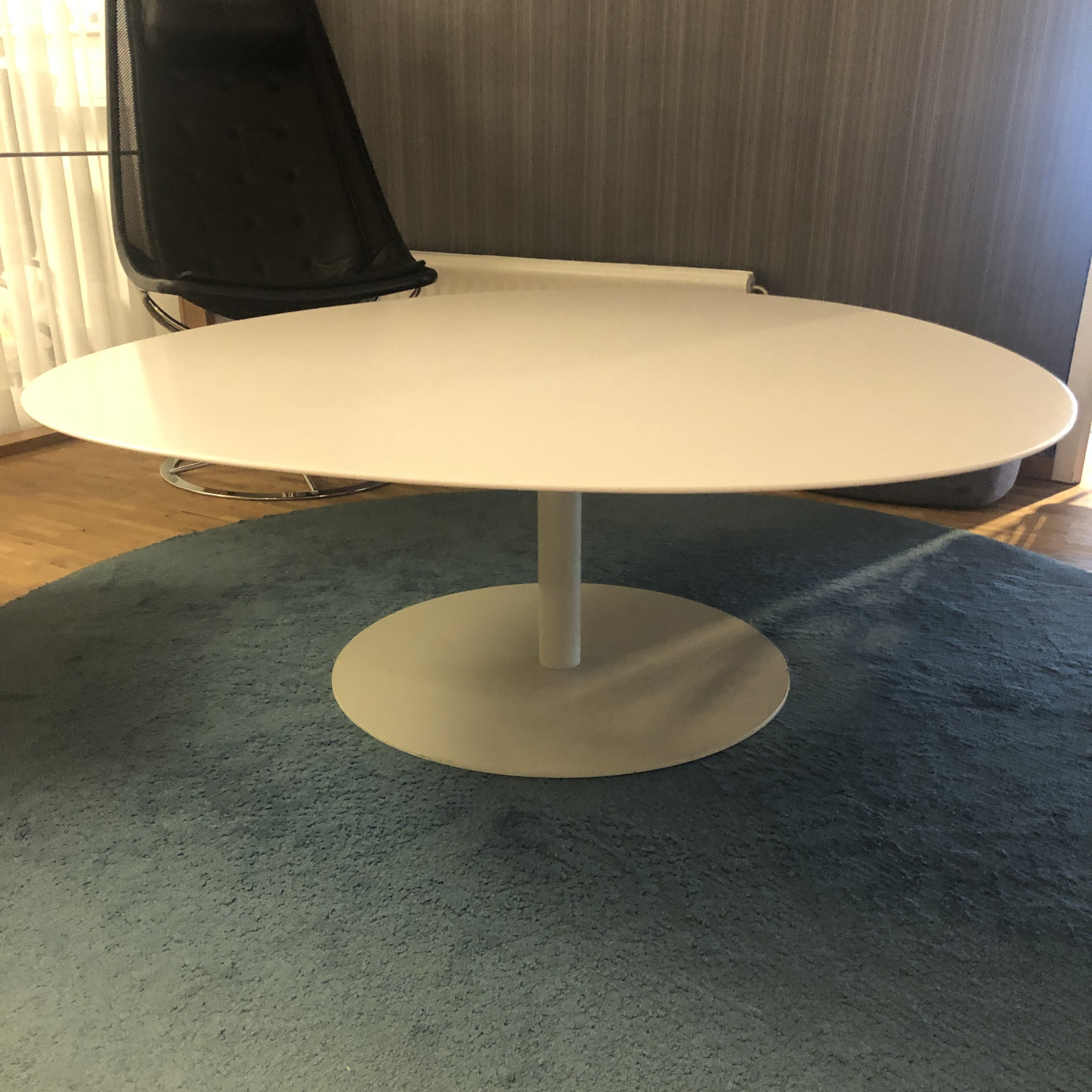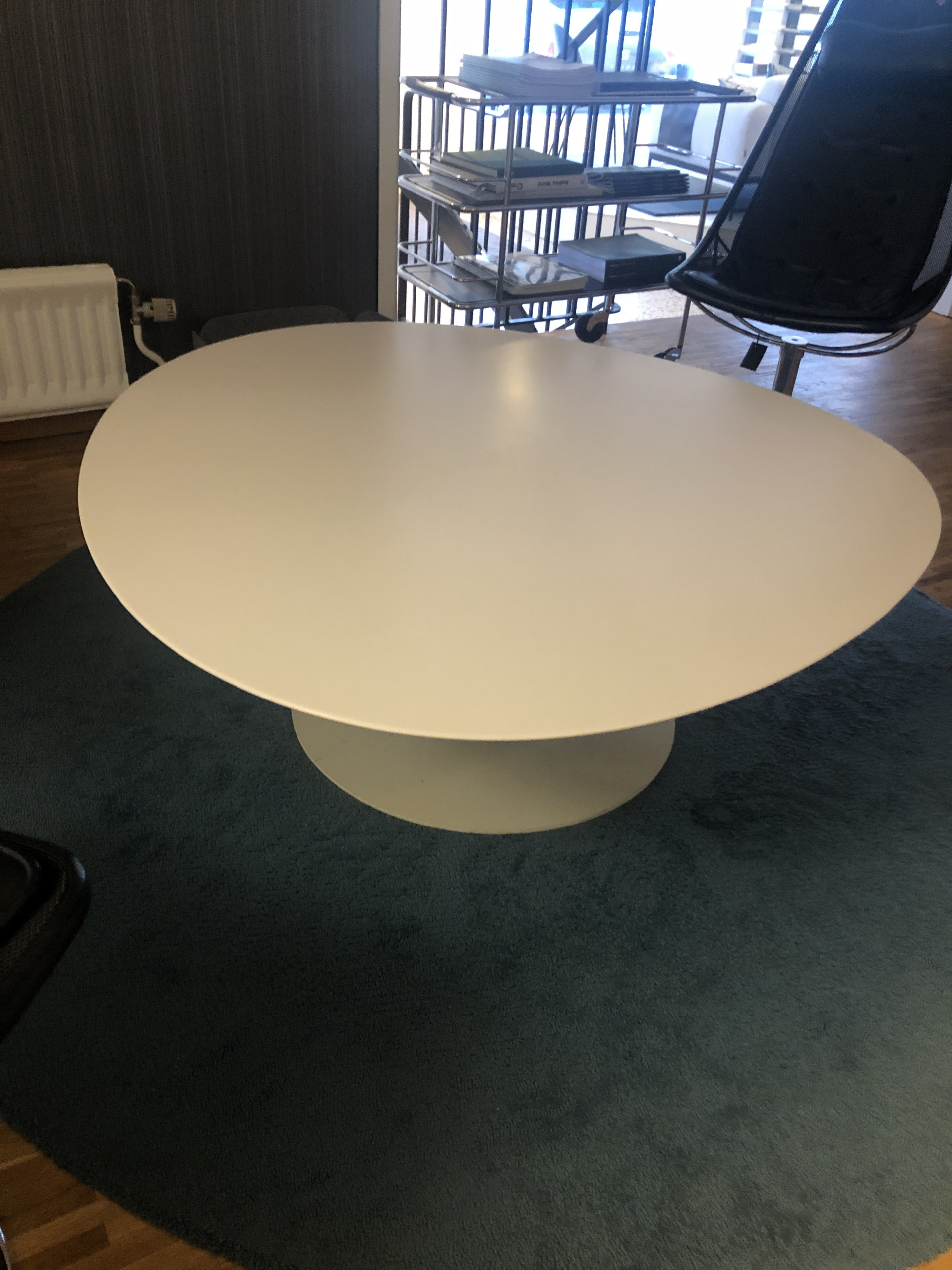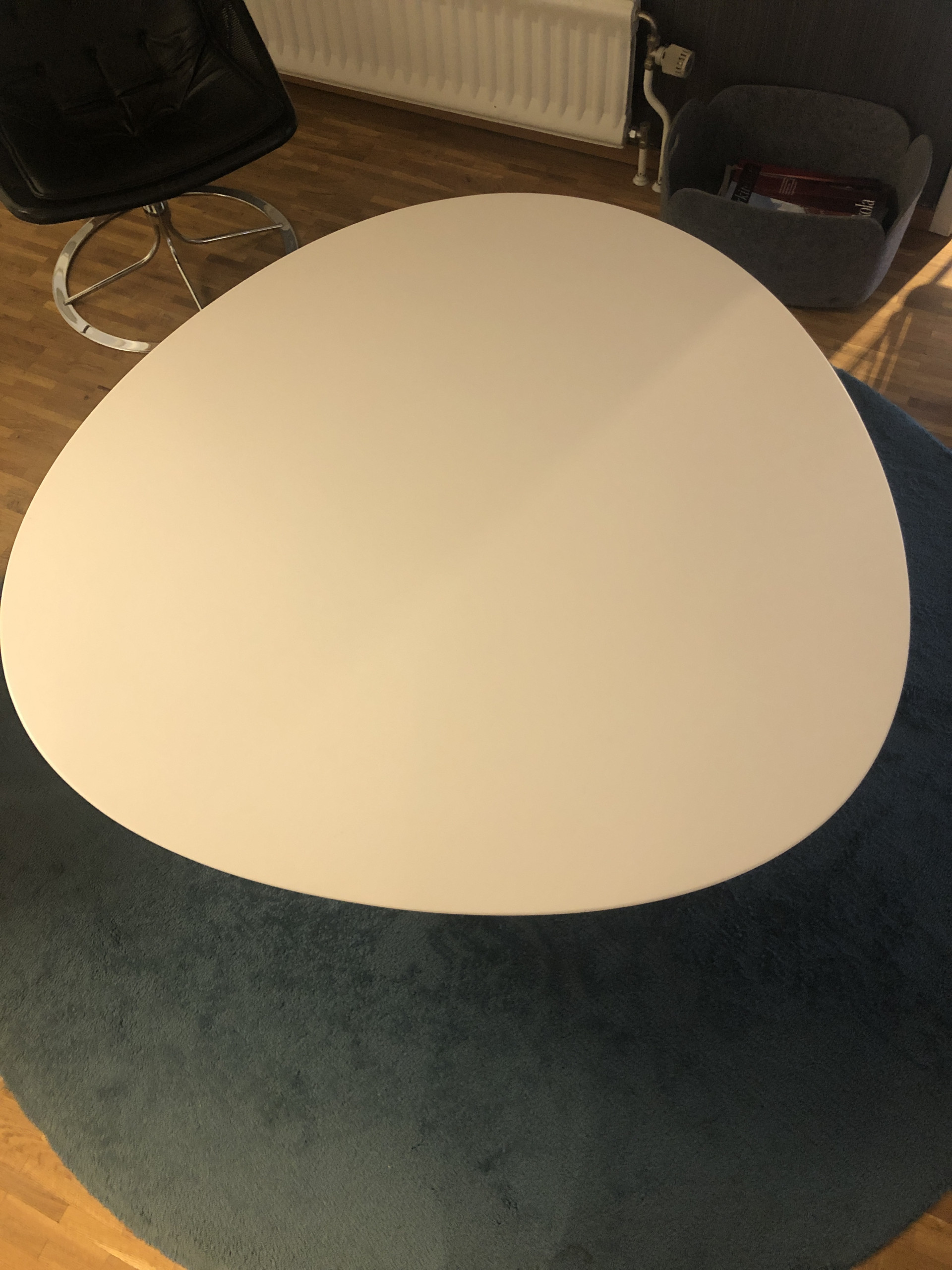 Bordplate i komposittmateriale (hvit). Understell i metall (hvit).