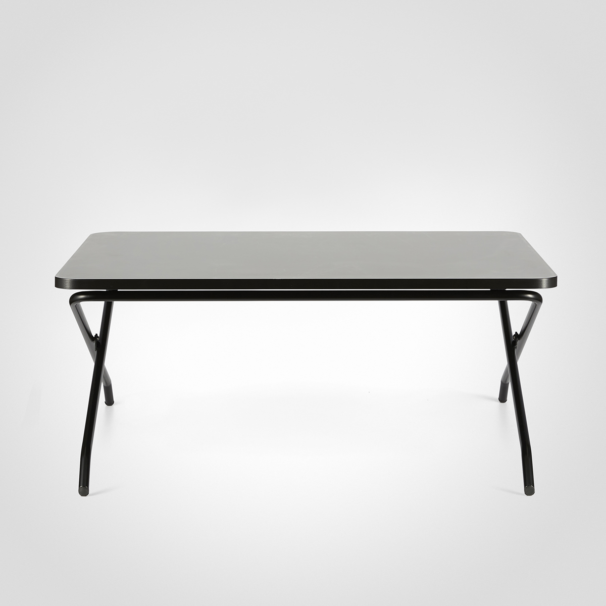 Bordplate i laminat (svart). Understell i metall (svart). Høydejusterbart.
