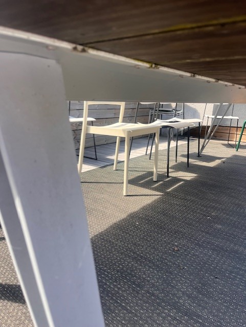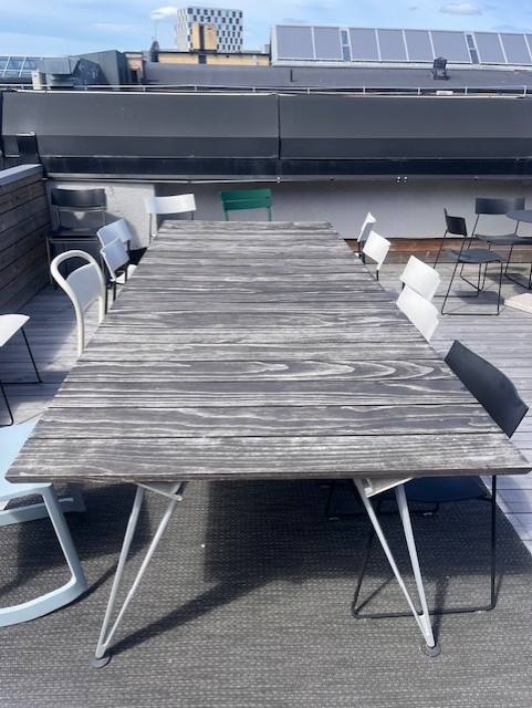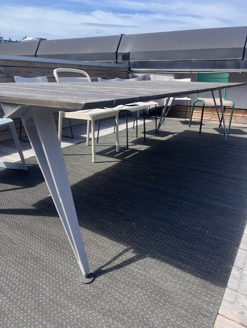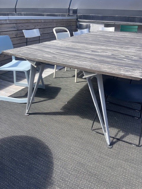 Bordplate i metall (annet). Understell i metall (aluminium).