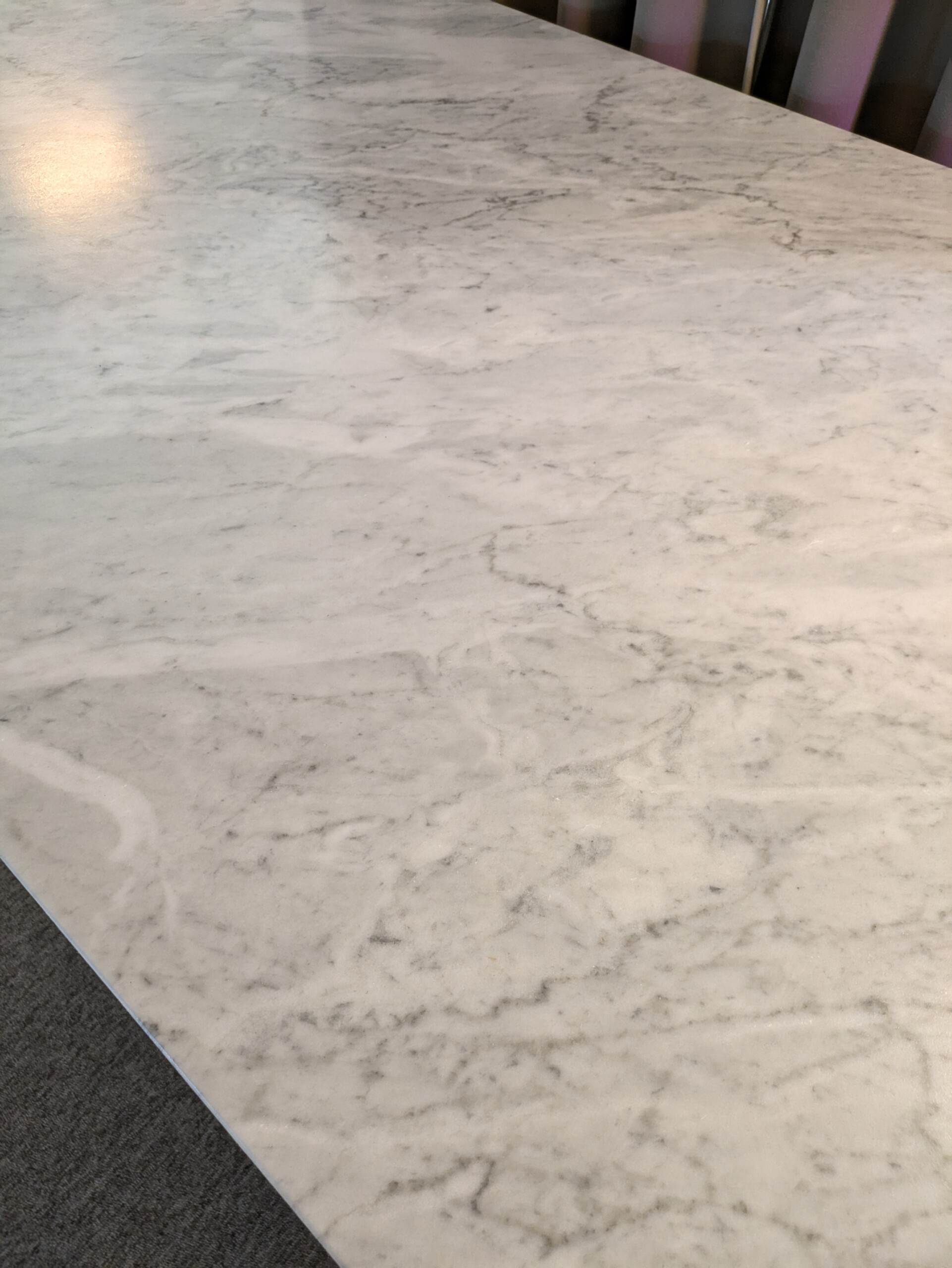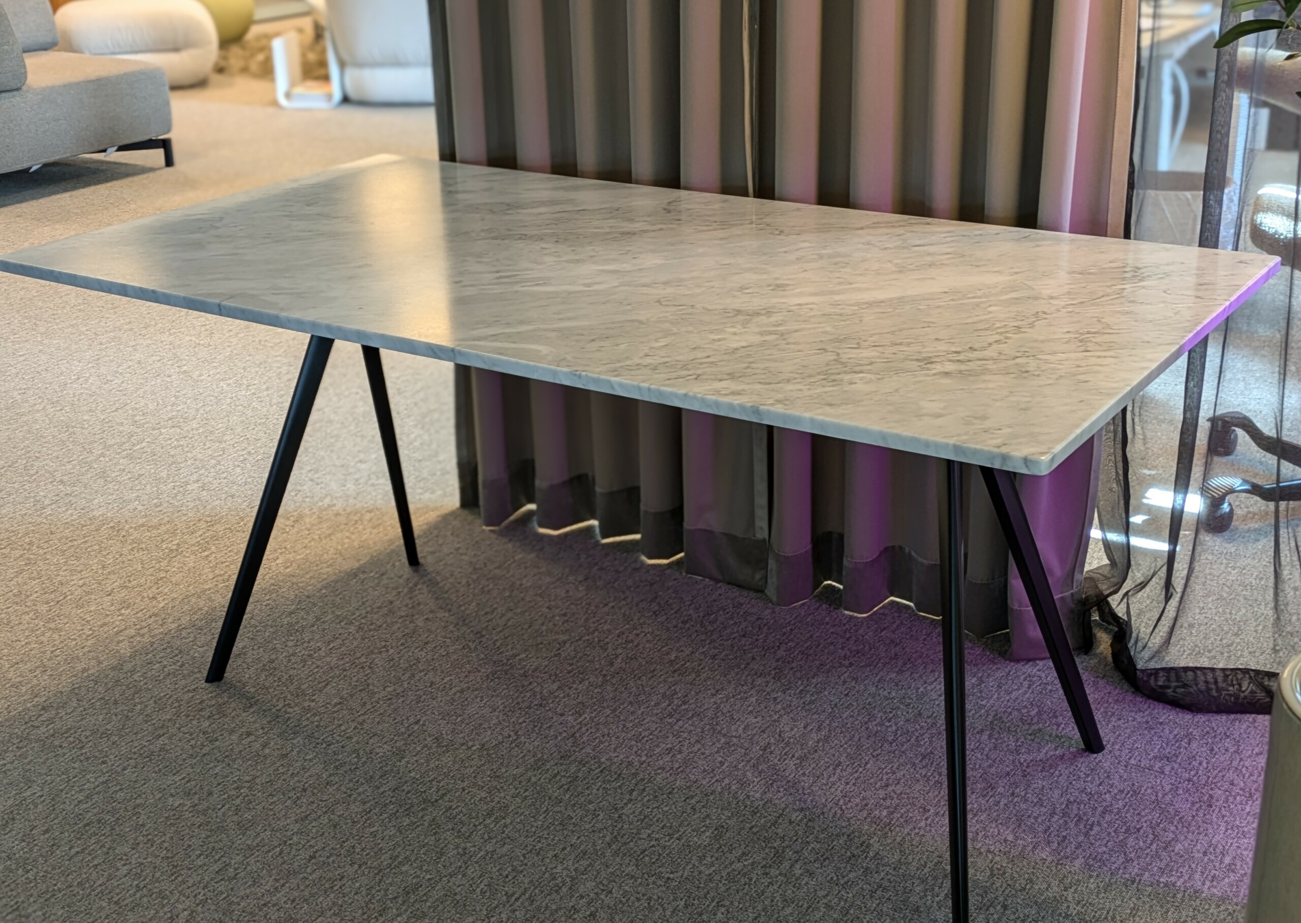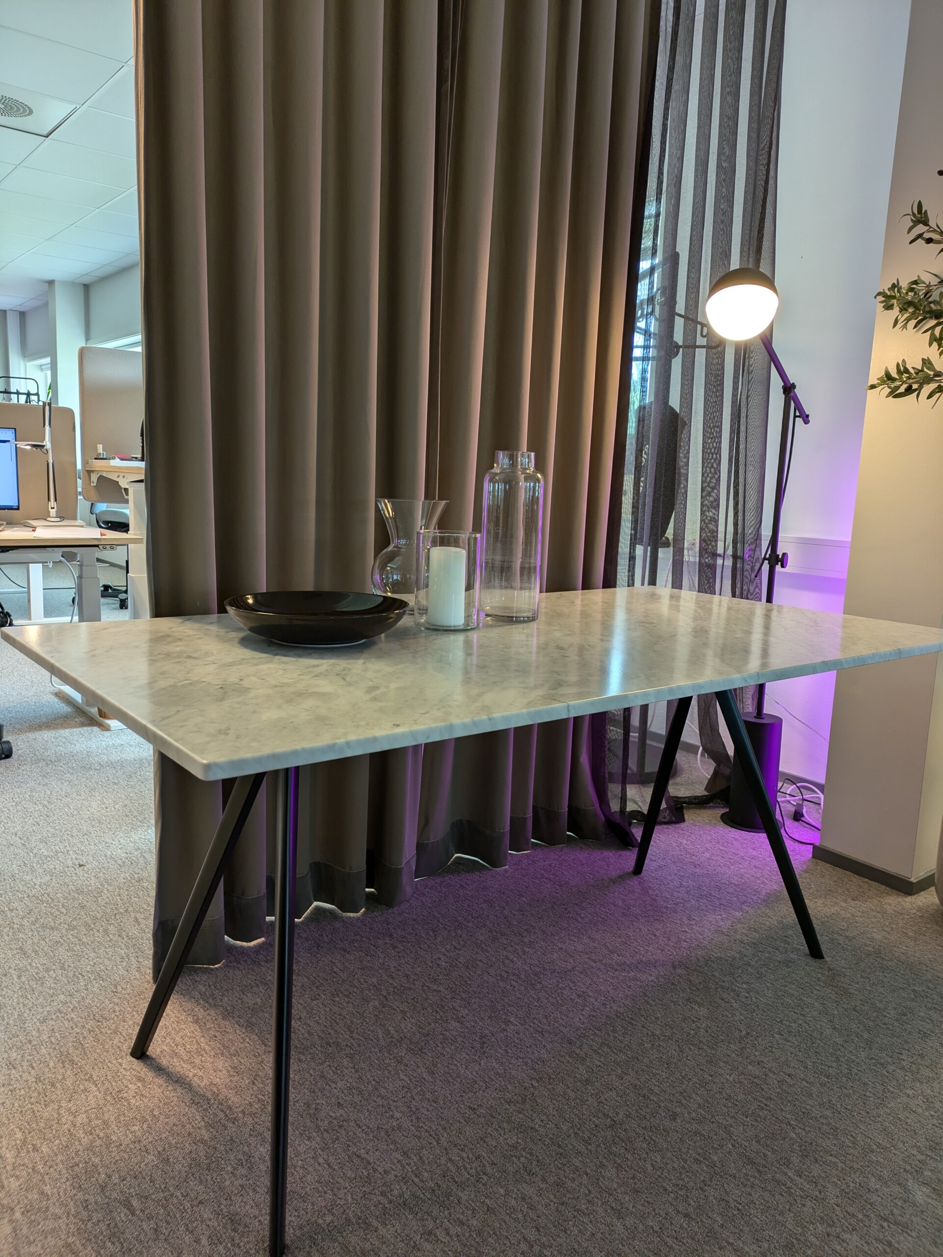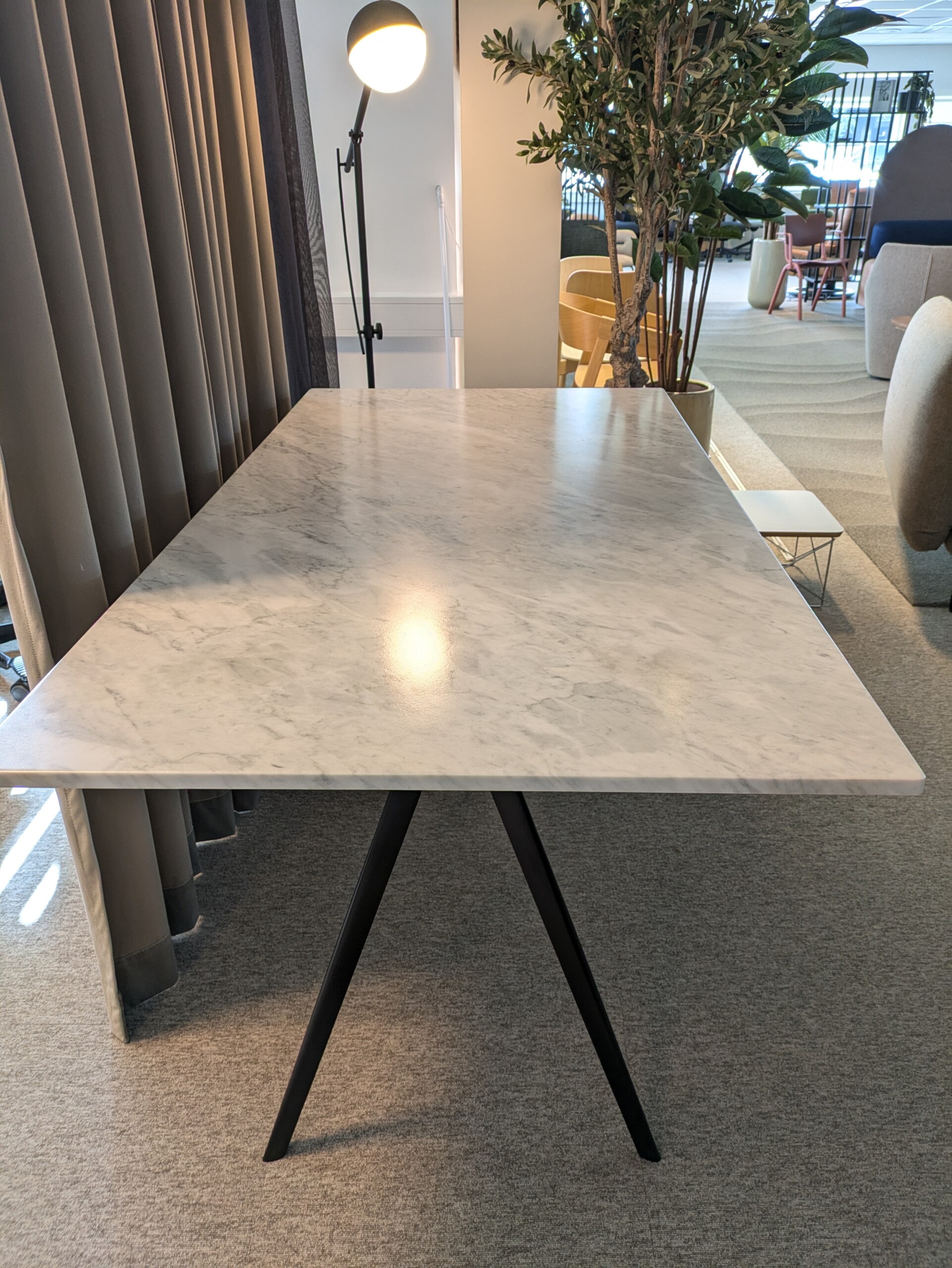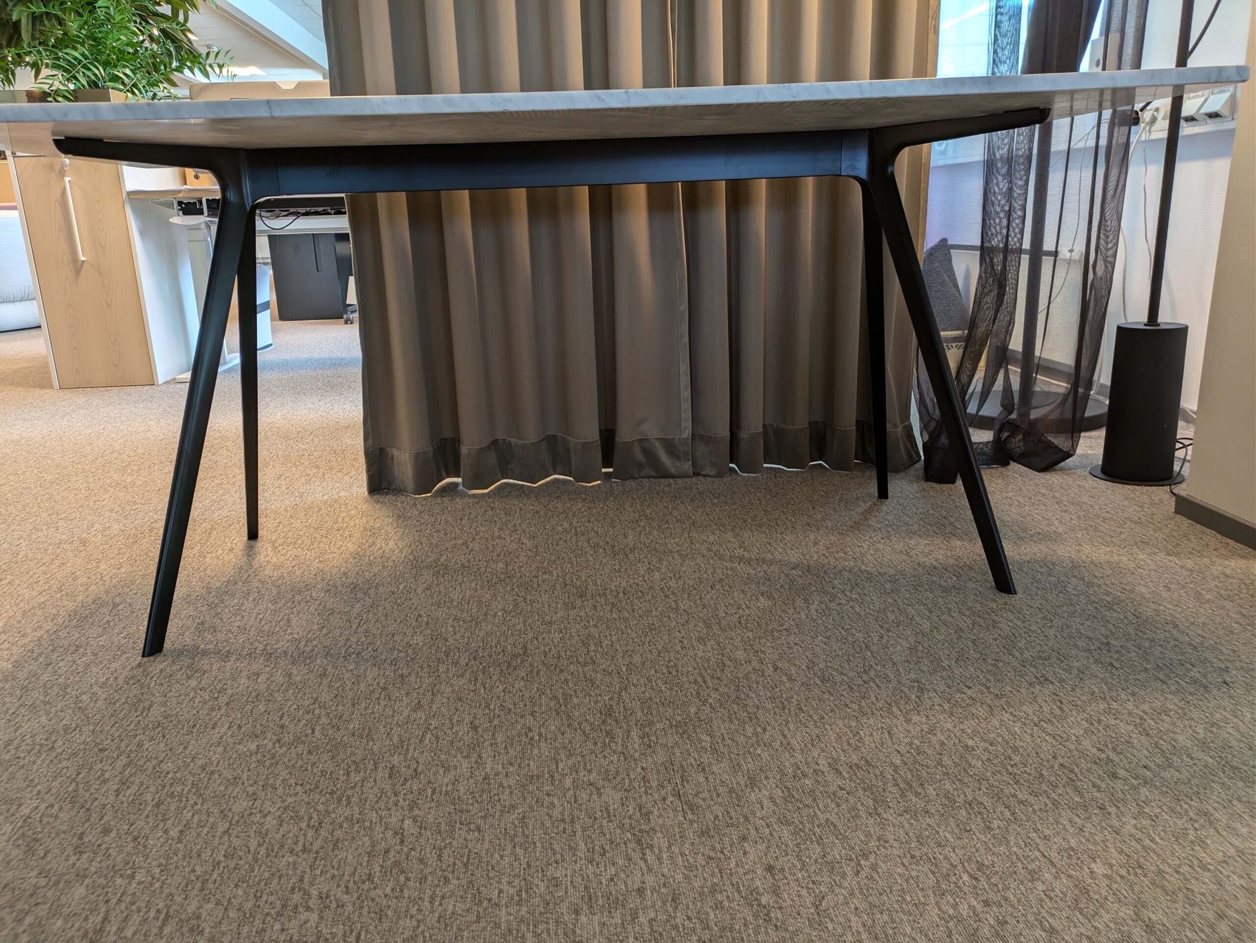 Bordplate i sten. Understell i metall (svart).