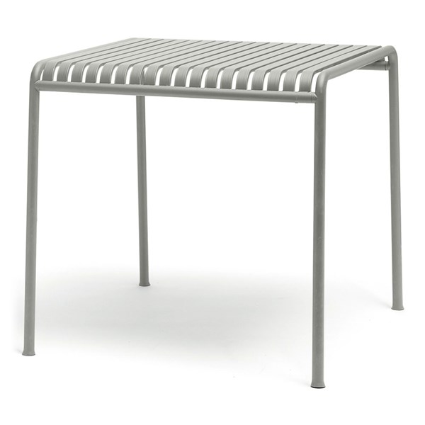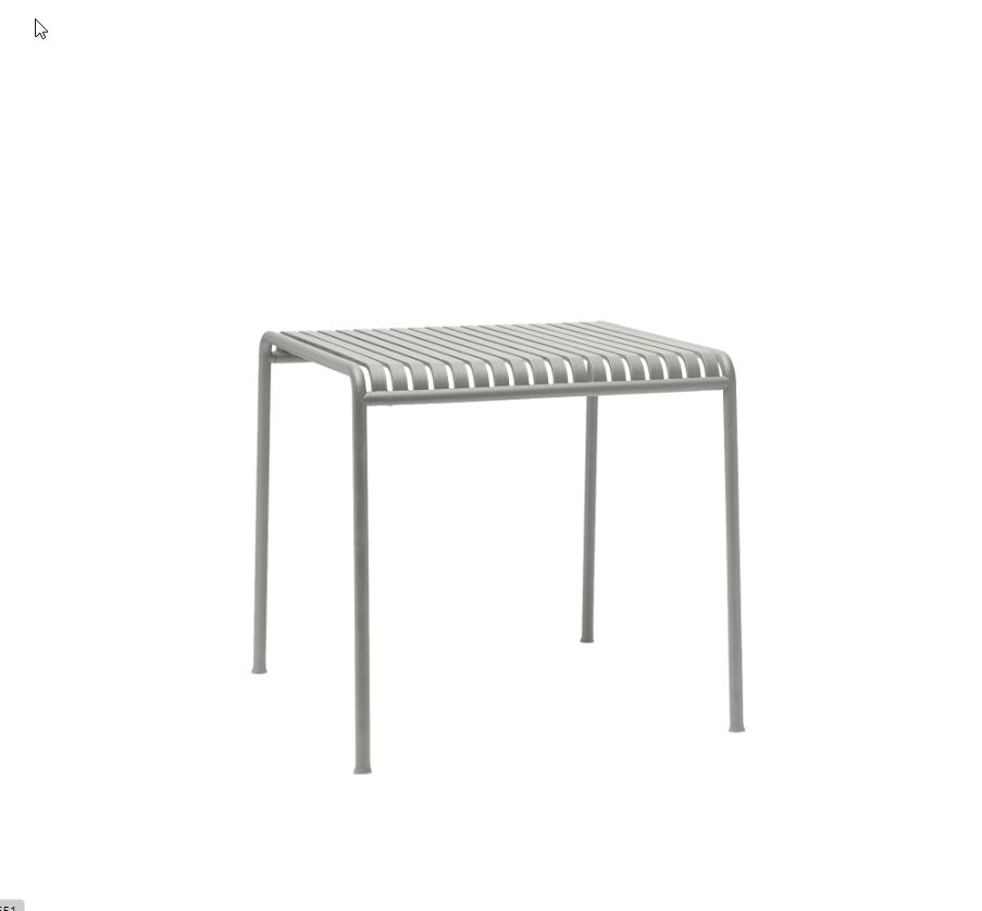 Bordplate og understell i metall (grå).
