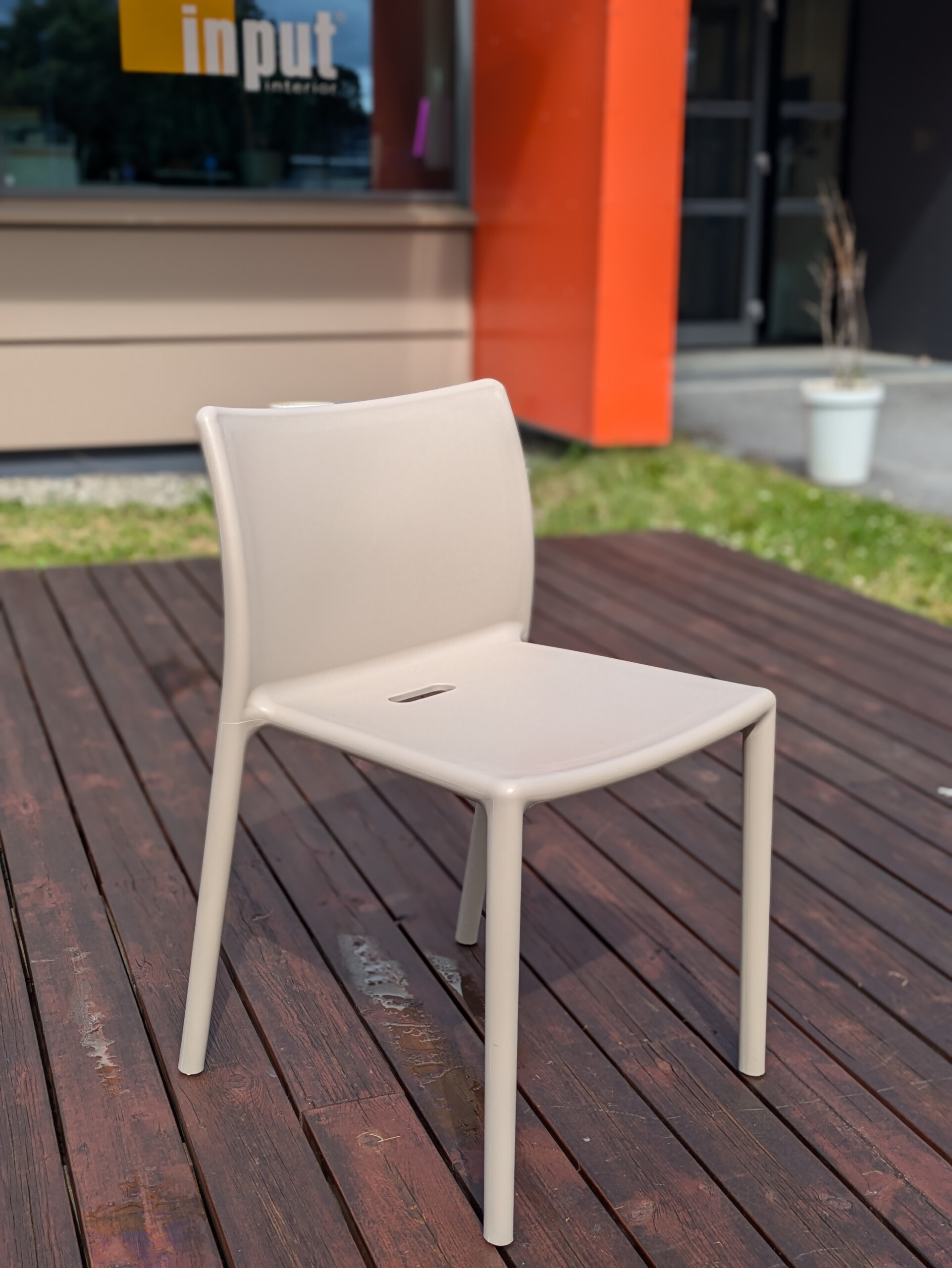 Sete, rygg og ben i plast (beige).